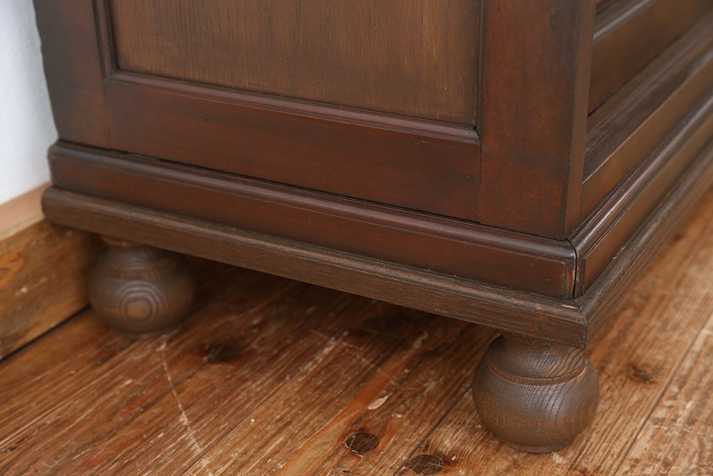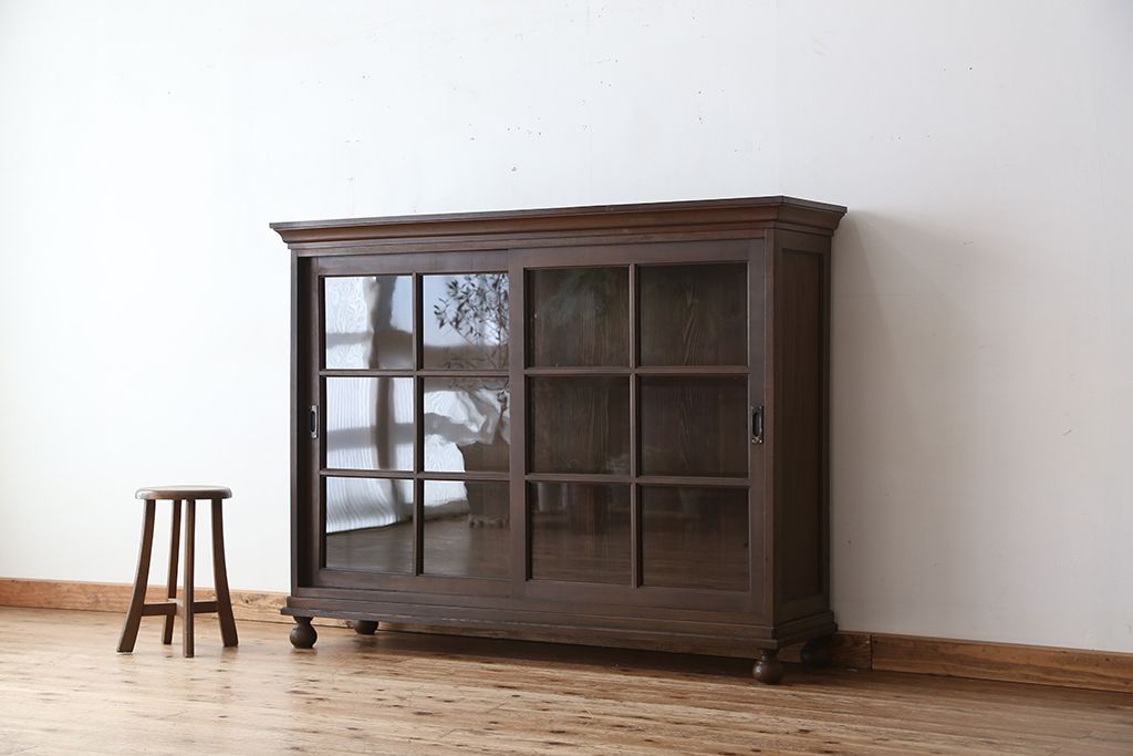 アンティーク 味のあるレトロな脚付きガラス収納棚(陳列ケース・食器棚)です。