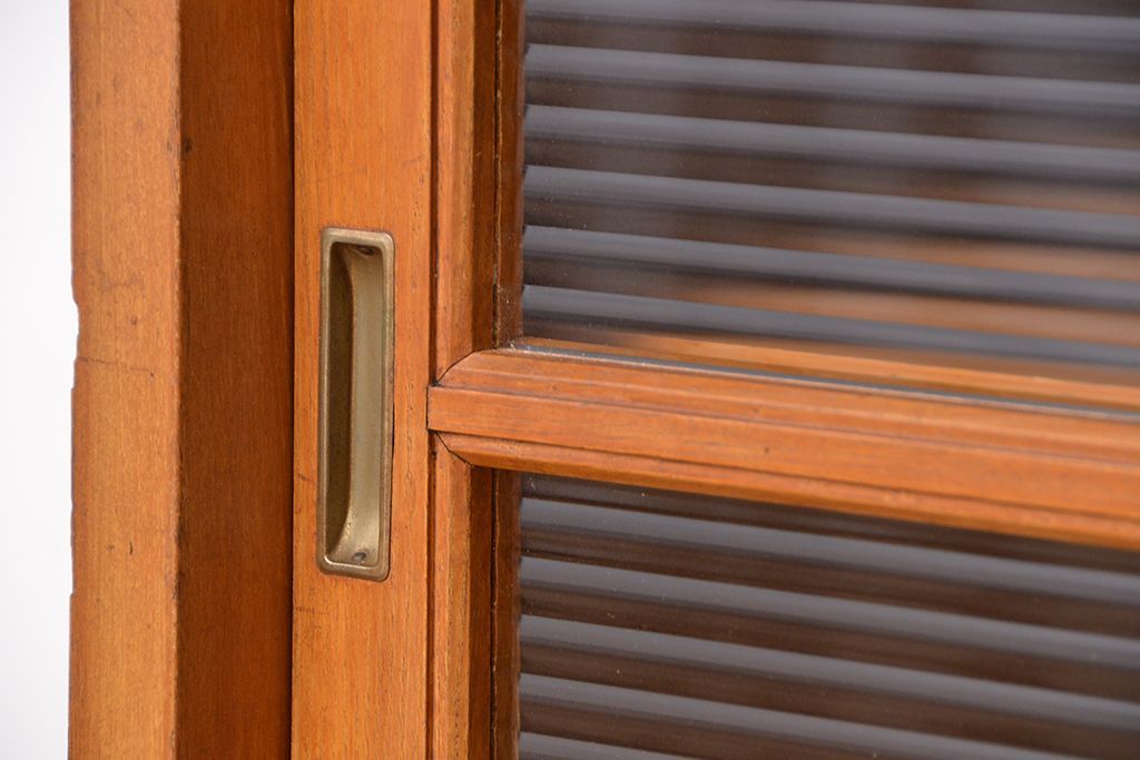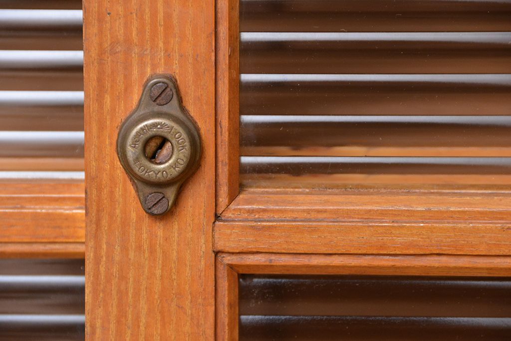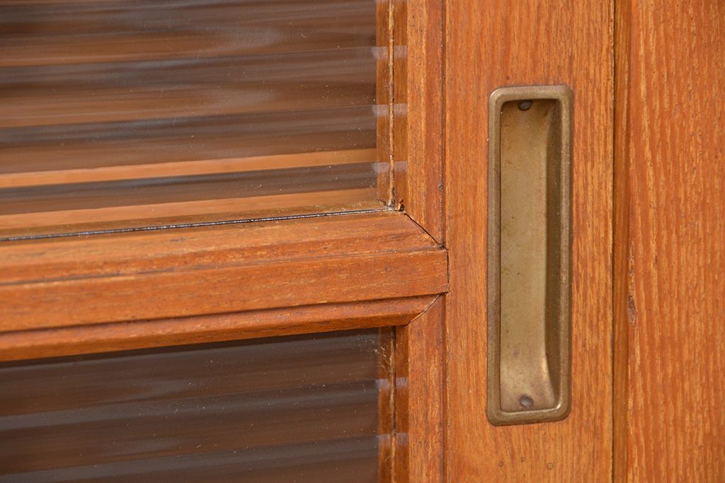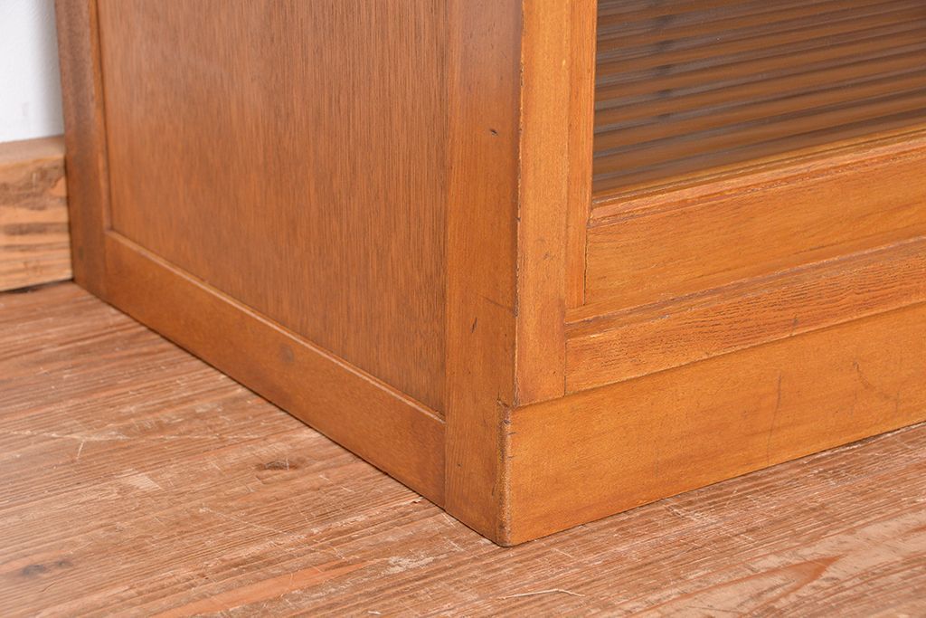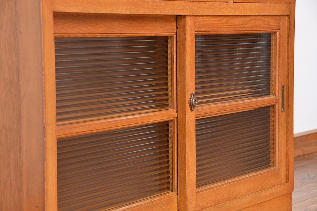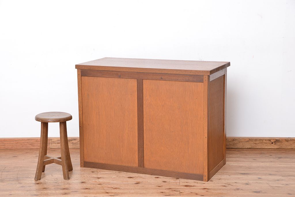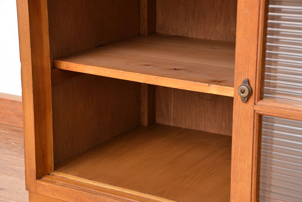 レトロ家具 アンティーク レトロな閉まえる作業台付きモールガラス収納棚(カウンターテーブル)