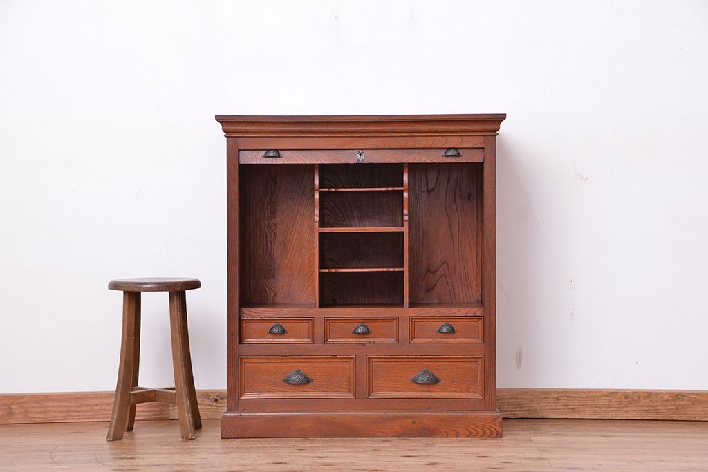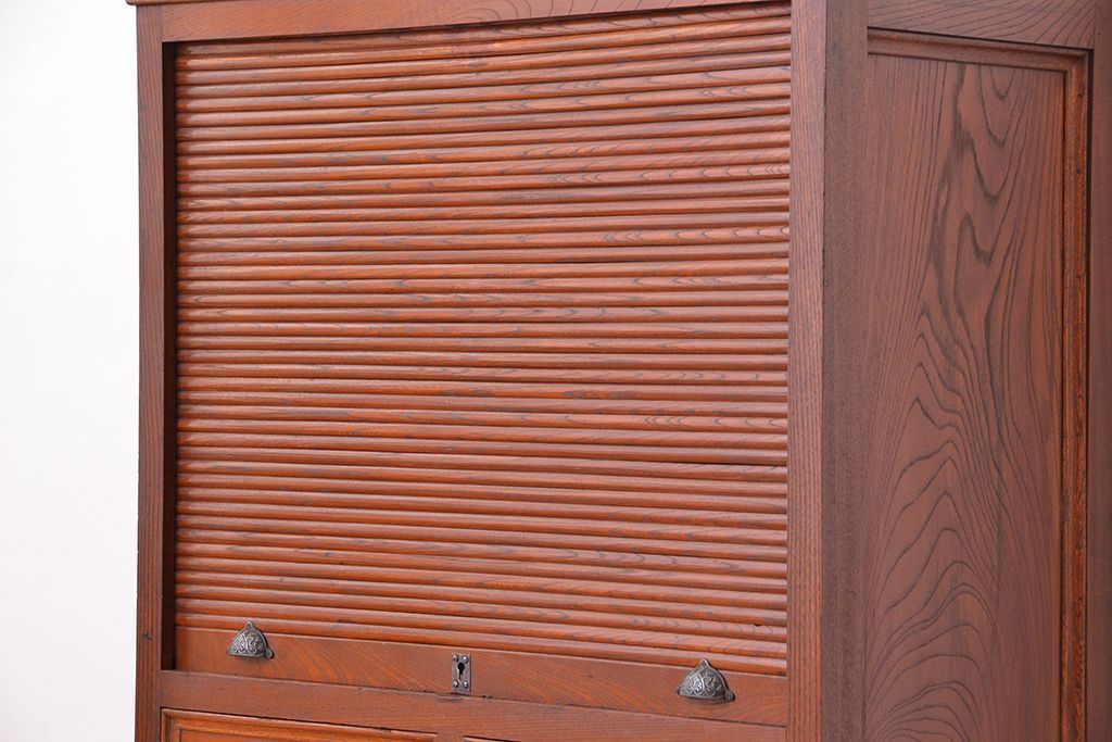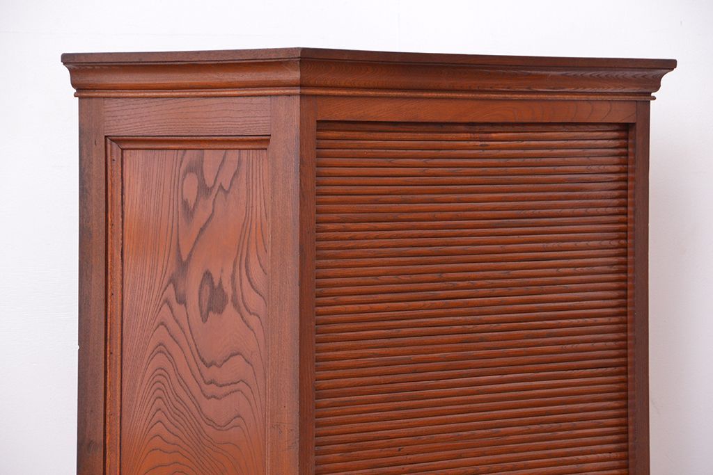 アンティーク 総欅材!希少!特注品! シャッター扉付き戸棚(収納棚、蛇腹)です。