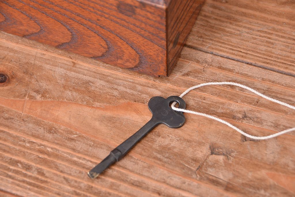 鍵は付属します。画像にありますように、袋に入れお付けします。スムーズに動くように調整していますが、あくまでも古いものや中古品ですので、長期の使用保証は出来かねます。ご購入後不具合が発生した場合は、当店でサポートさせていただきますので、お気軽にご相談くださいませ。