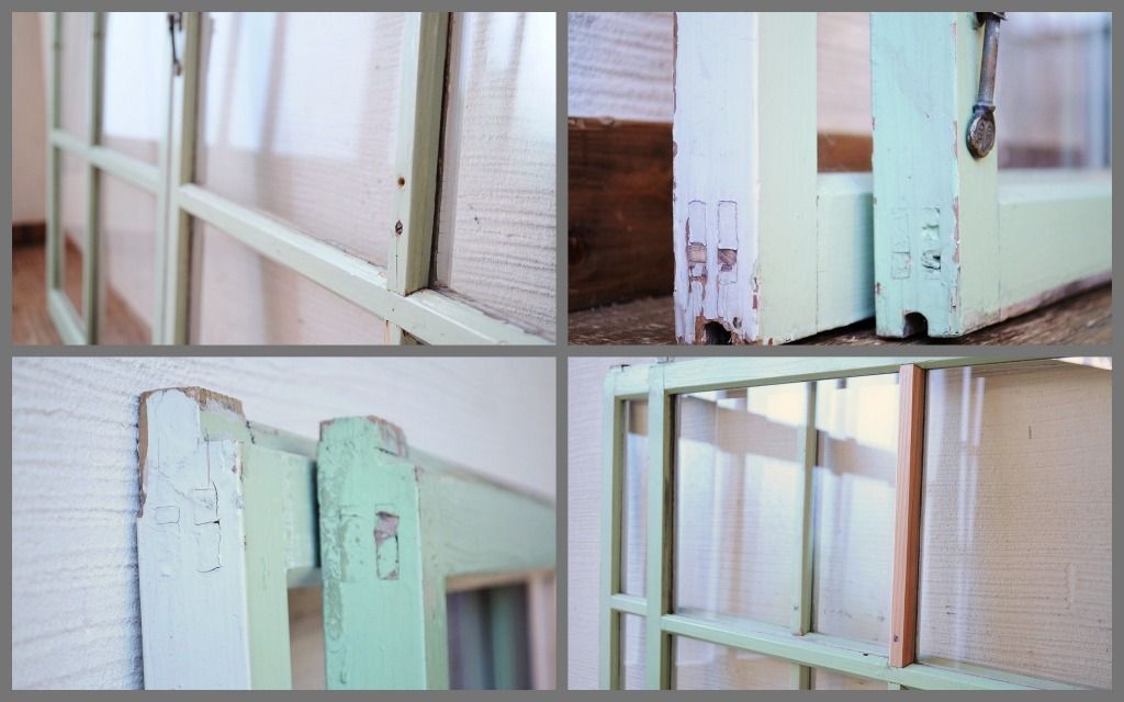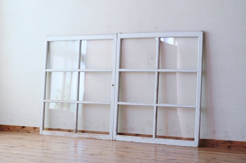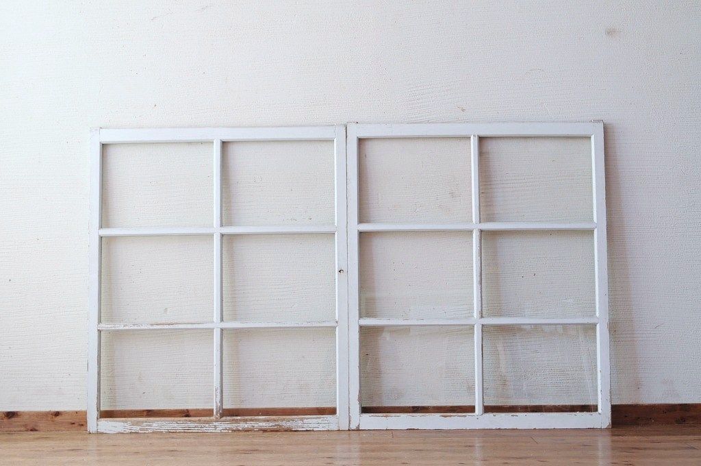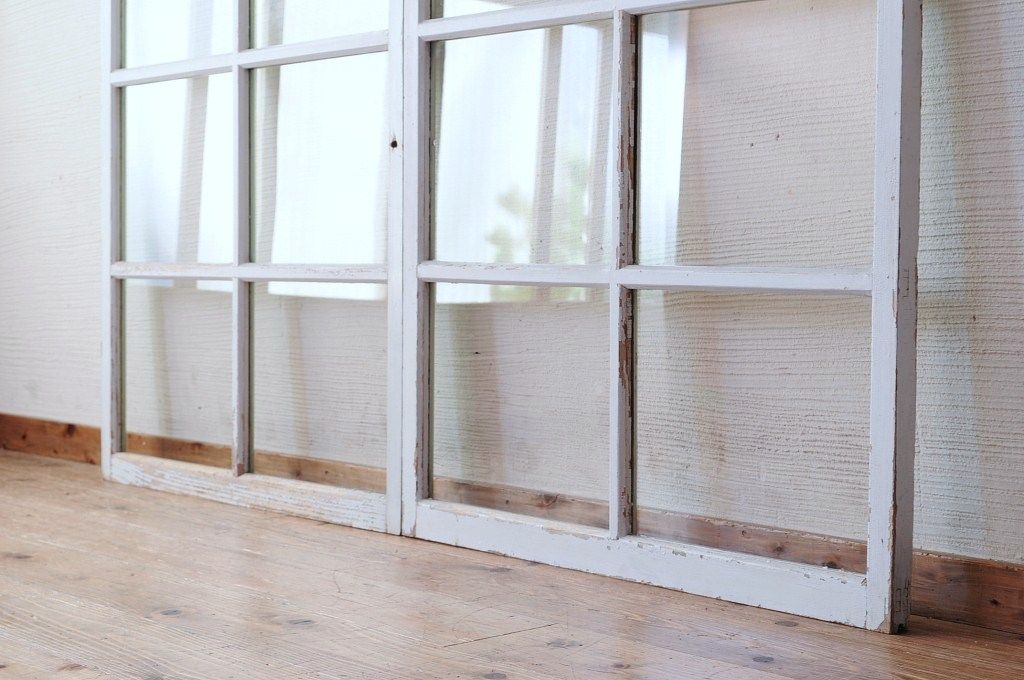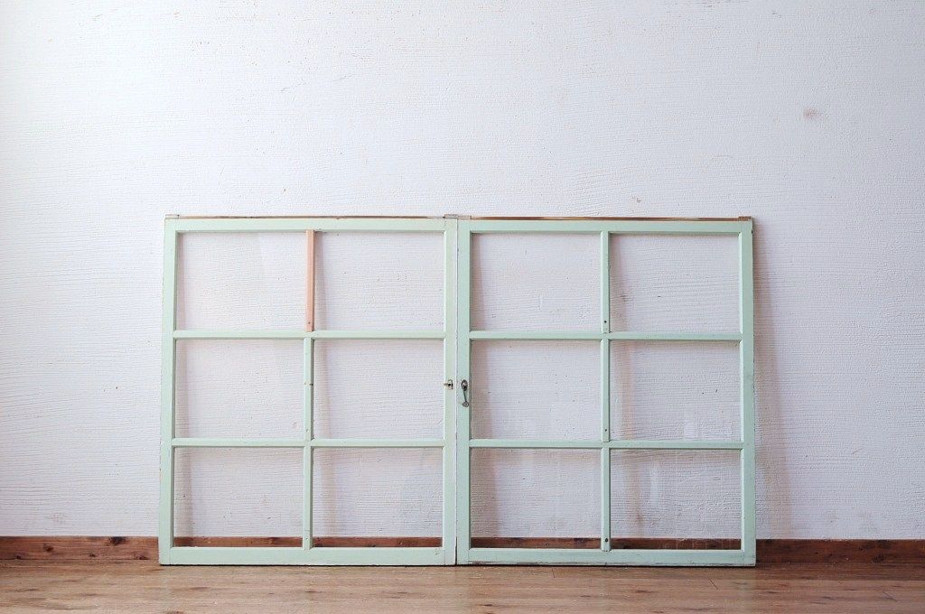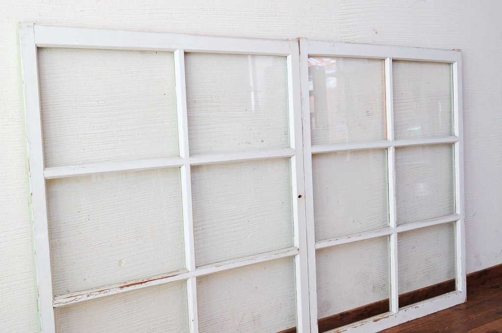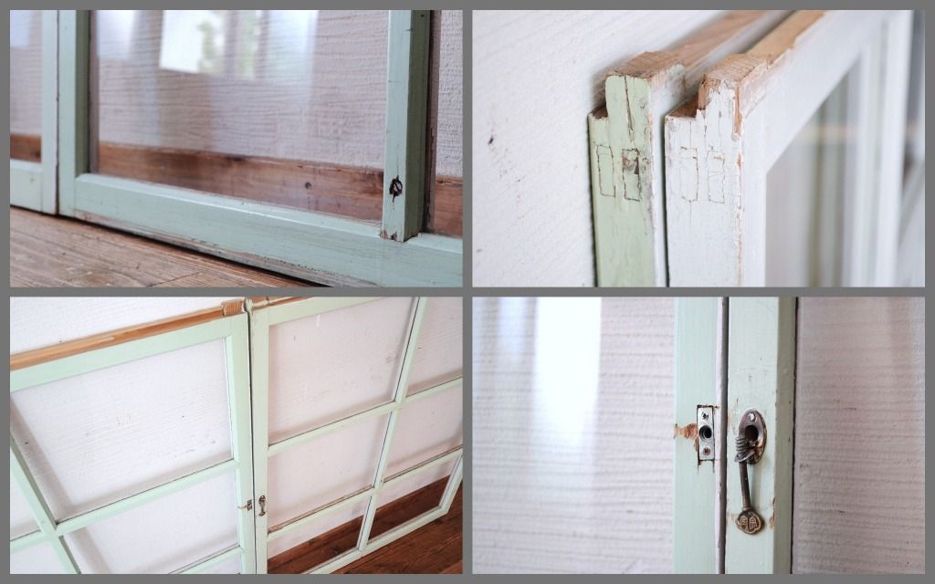 レトロ 古い学校のペンキの剥げた引き戸2枚セット3(窓)