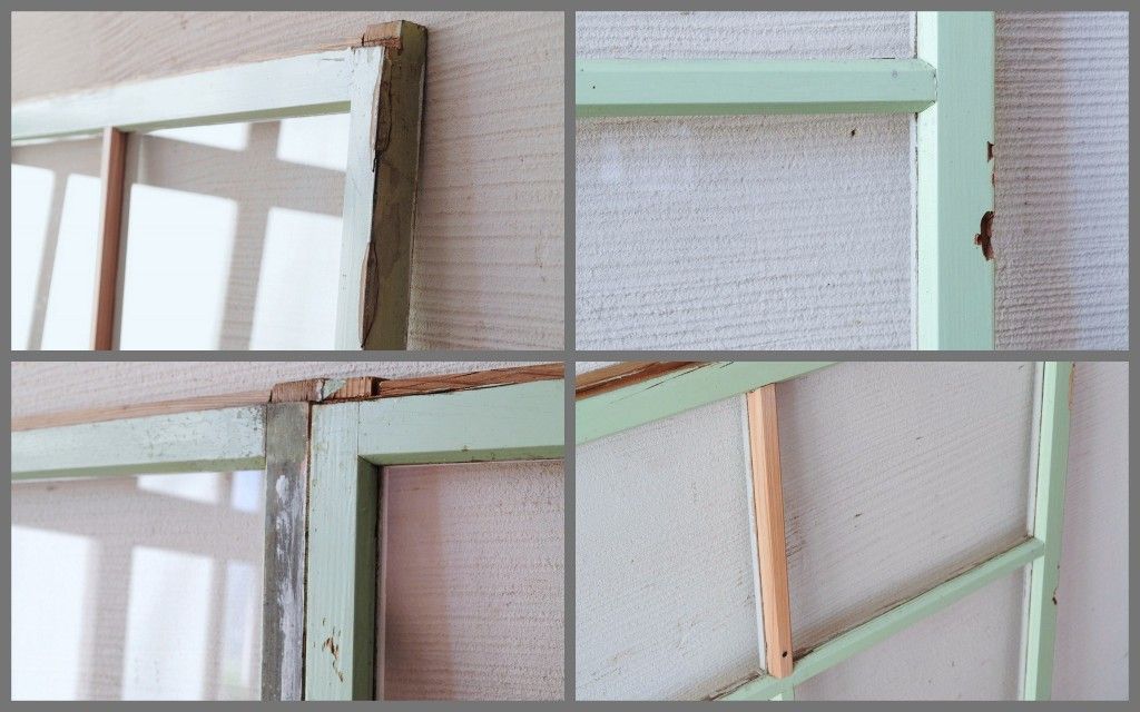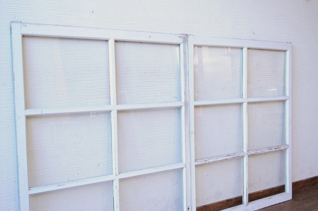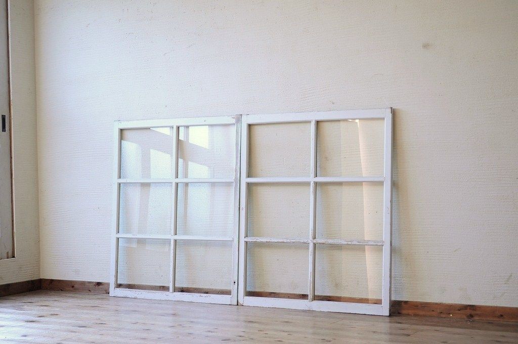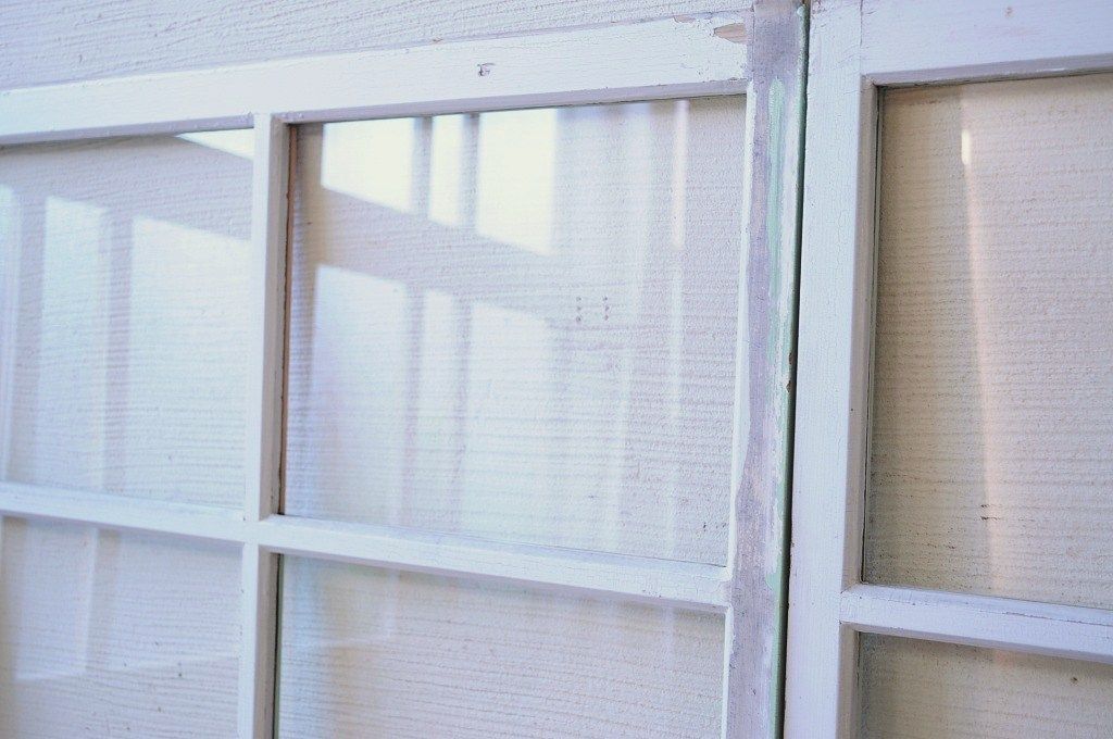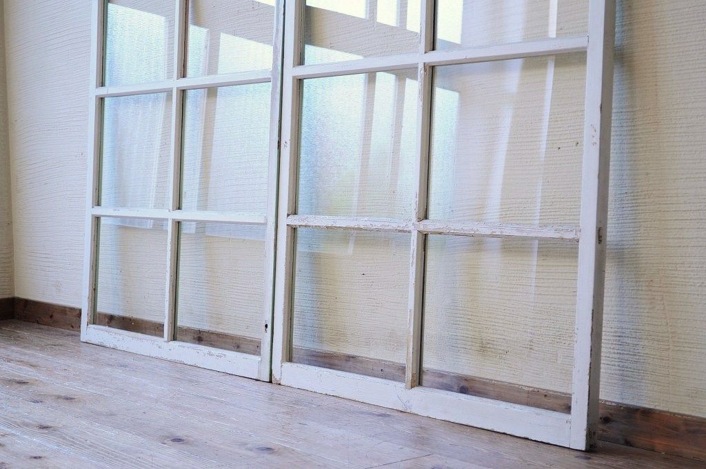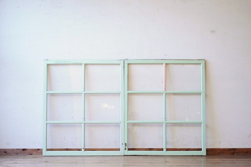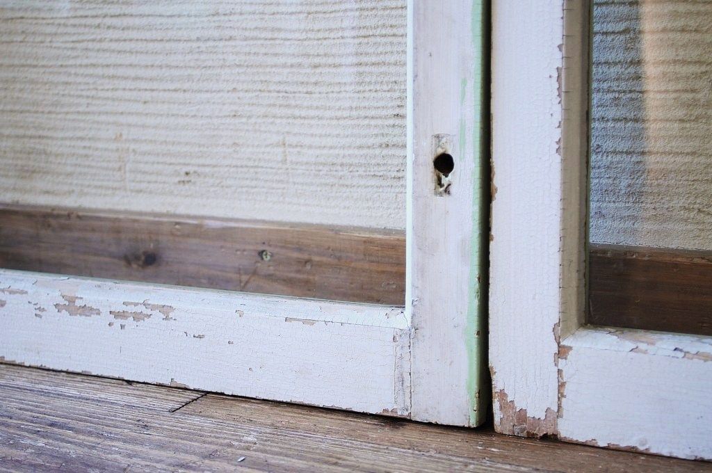 レトロ 古い学校のペンキの剥げた引き戸2枚セット5(窓)