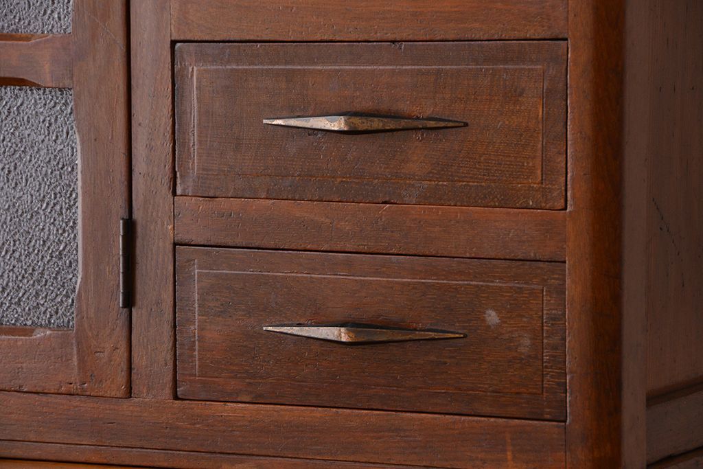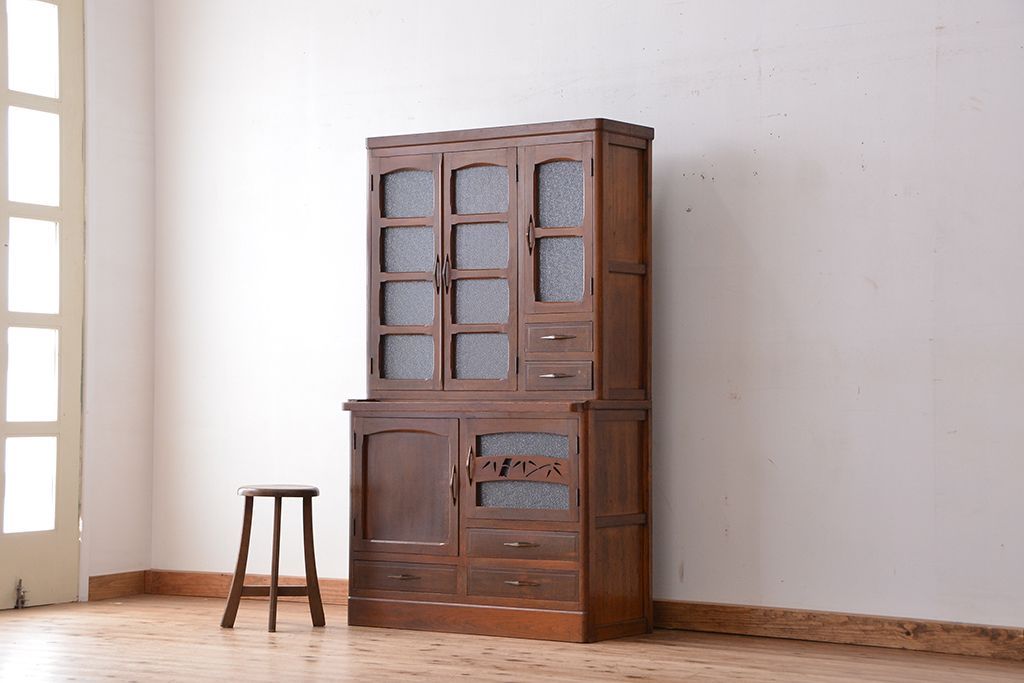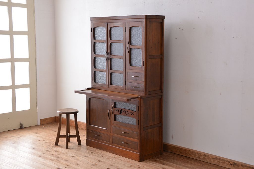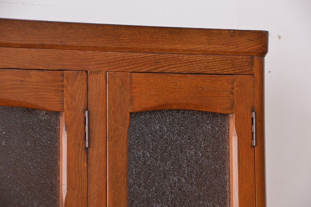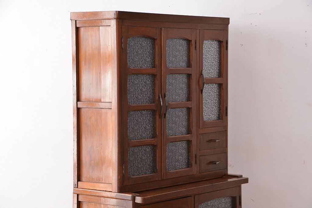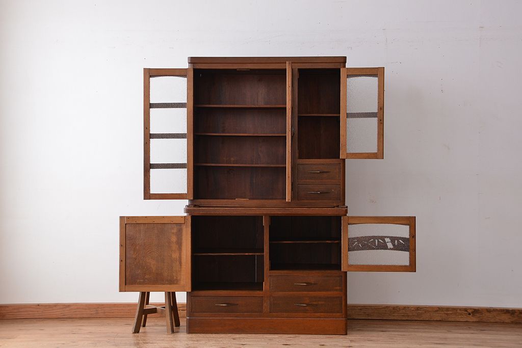 アンティーク家具 アンティーク 素敵なデザインの二段重ね ナラ材の食器棚(収納棚)