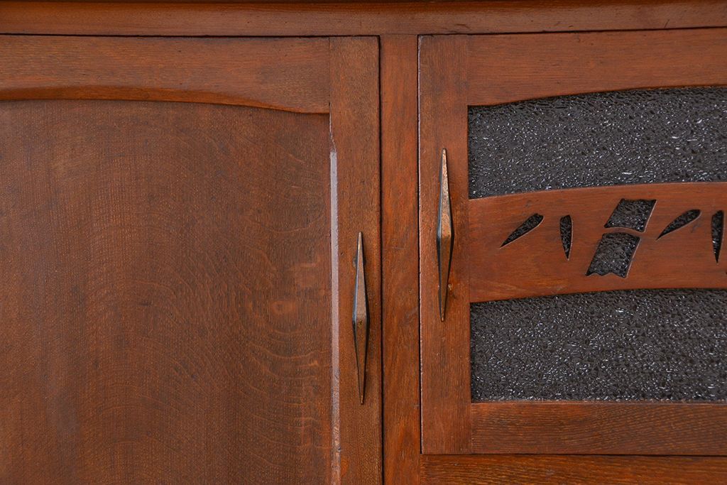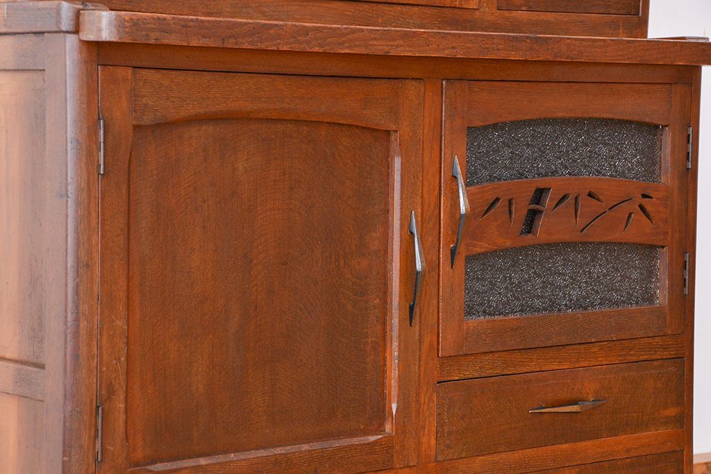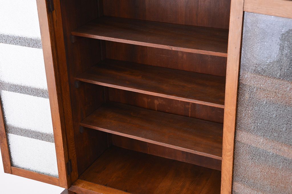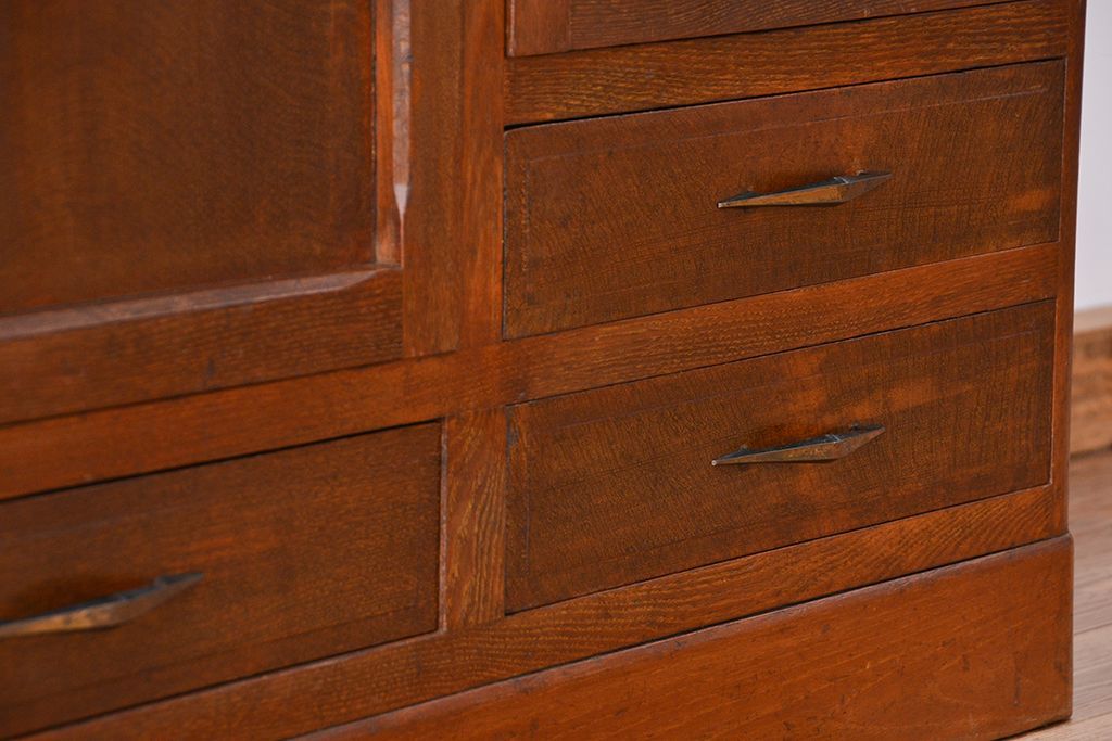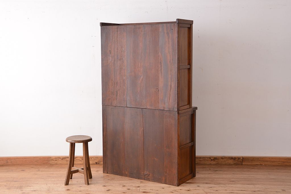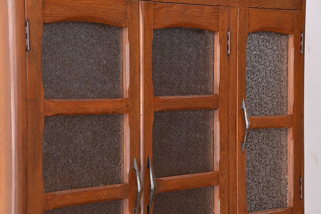 アンティーク家具 アンティーク 素敵なデザインの二段重ね ナラ材の食器棚(収納棚)