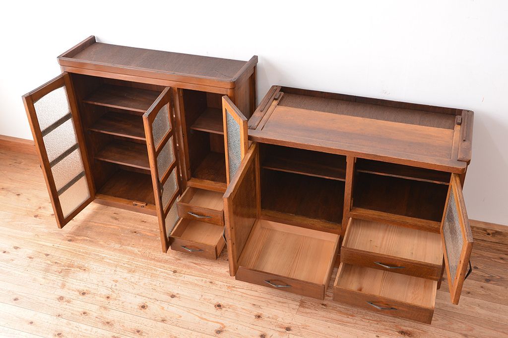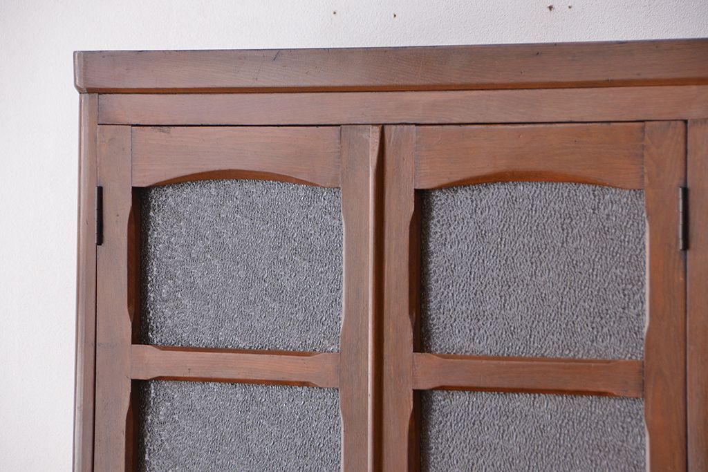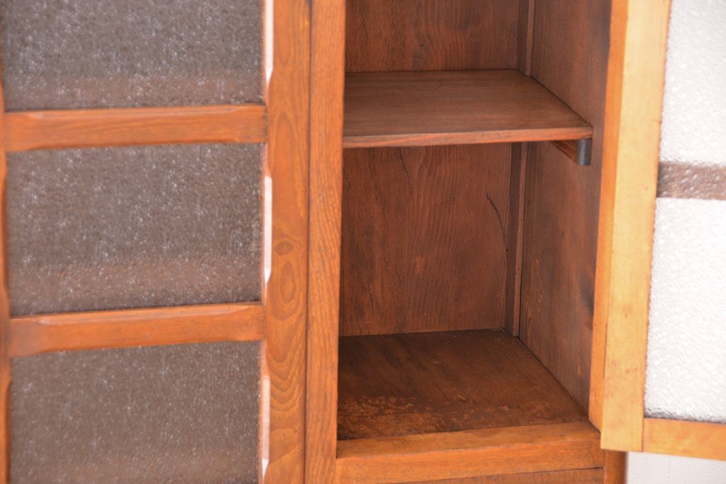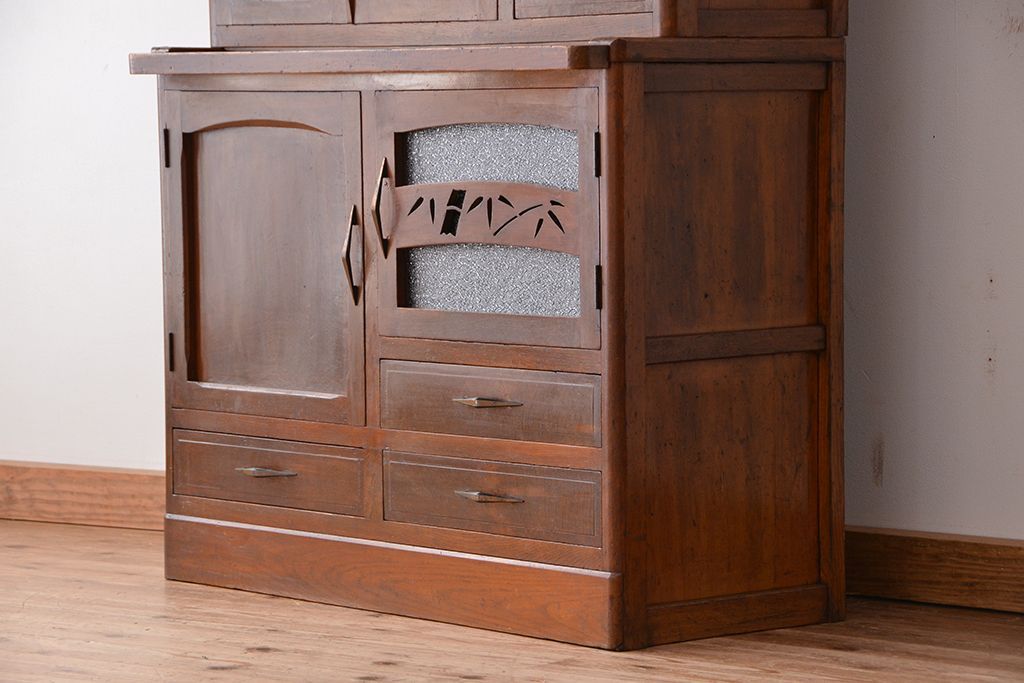 アンティーク 素敵なデザインの二段重ね ナラ材の食器棚(収納棚)です。