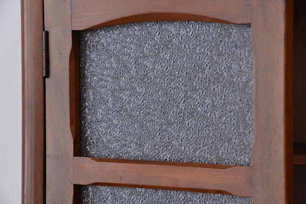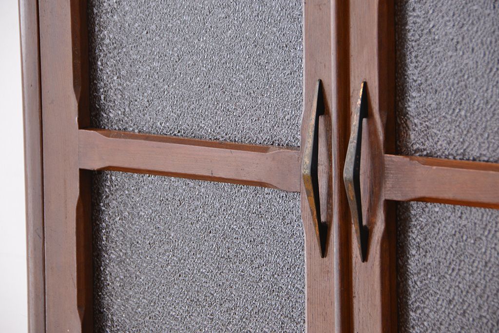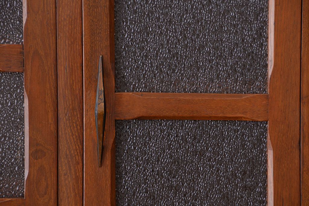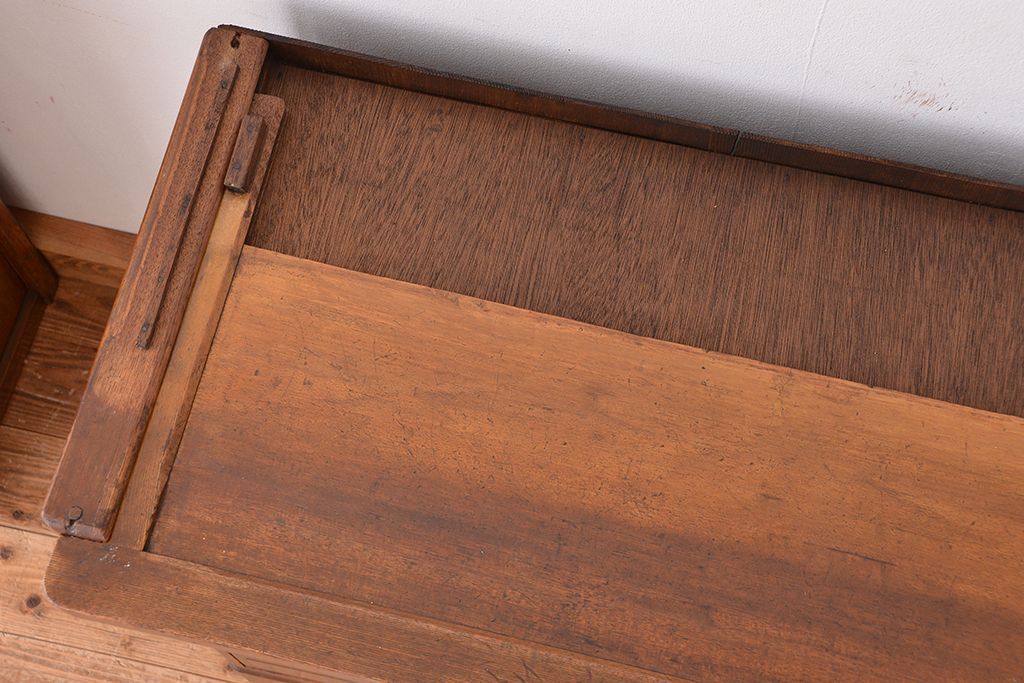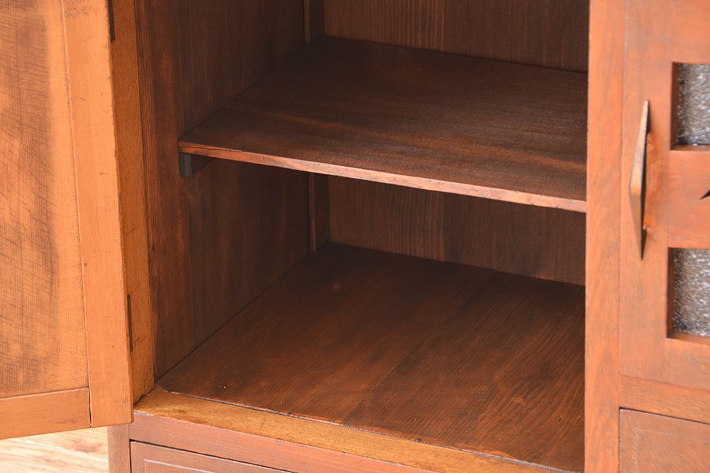 アンティーク 素敵なデザインの二段重ね ナラ材の食器棚(収納棚)です。