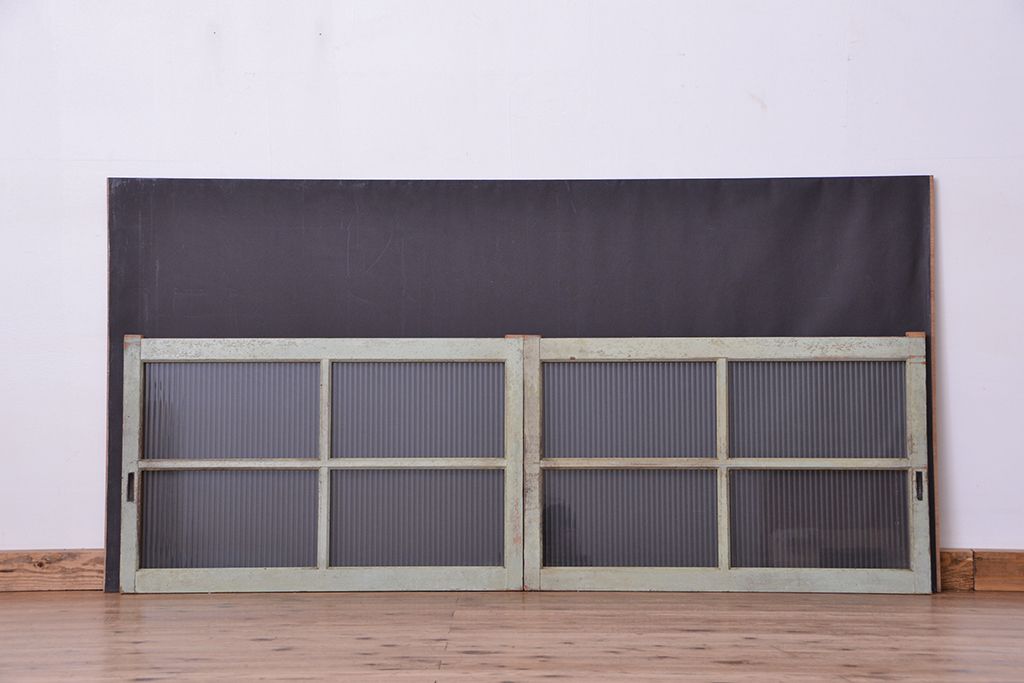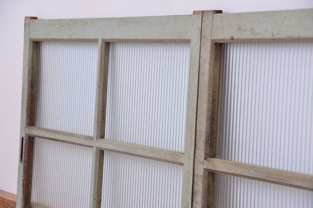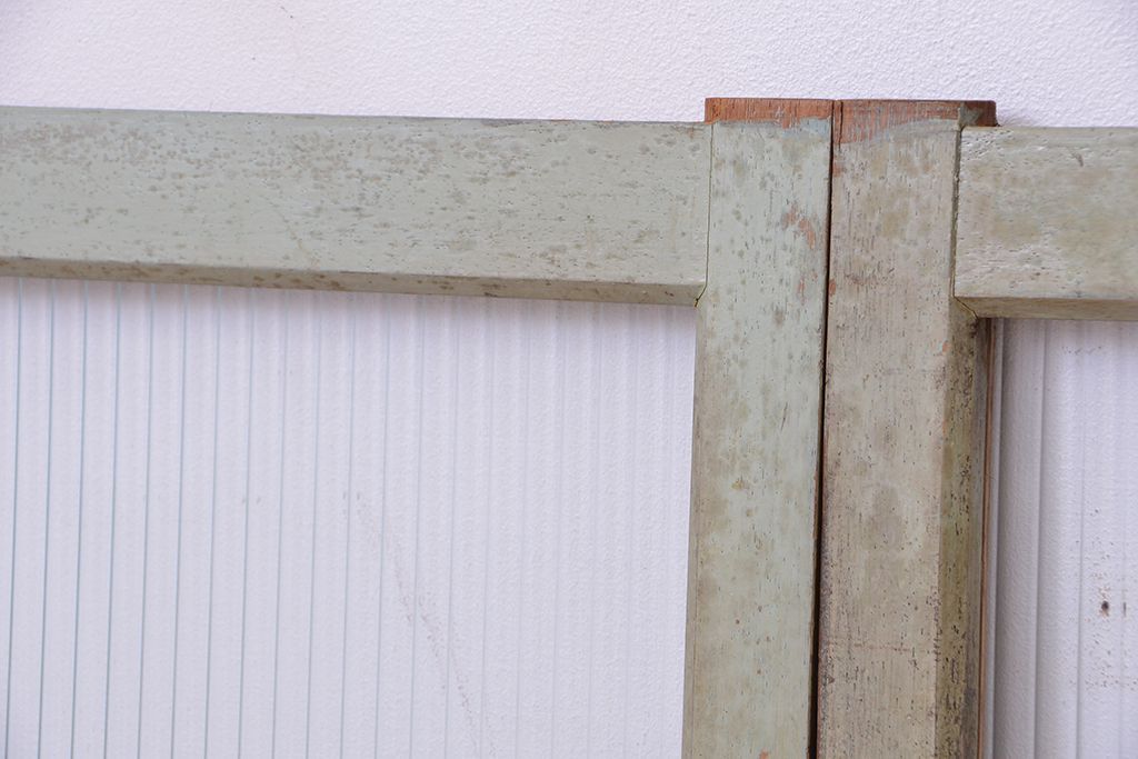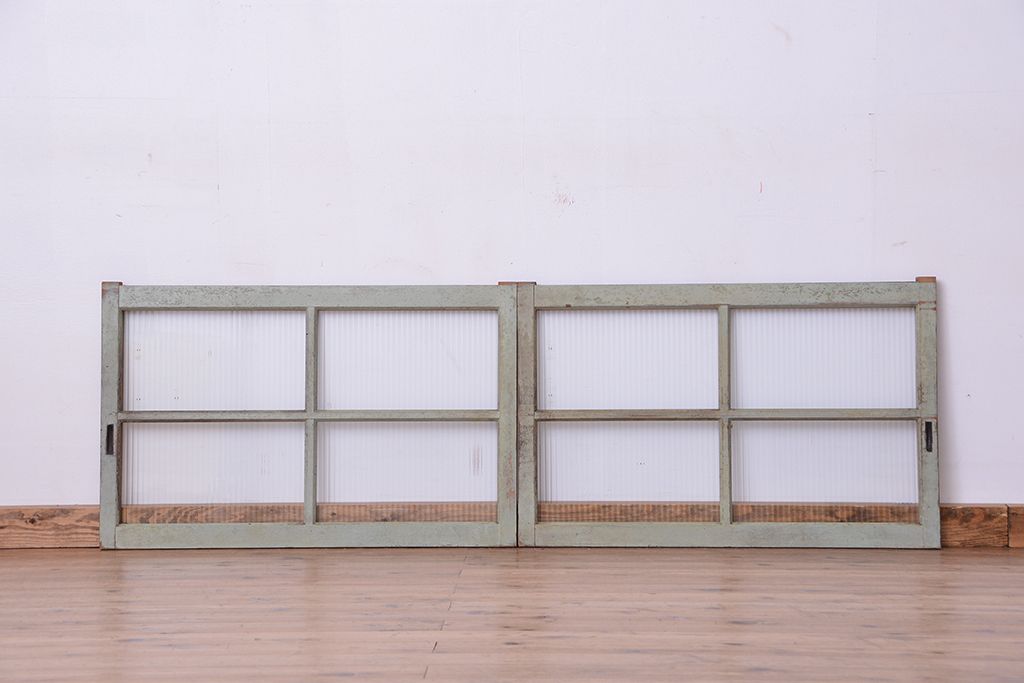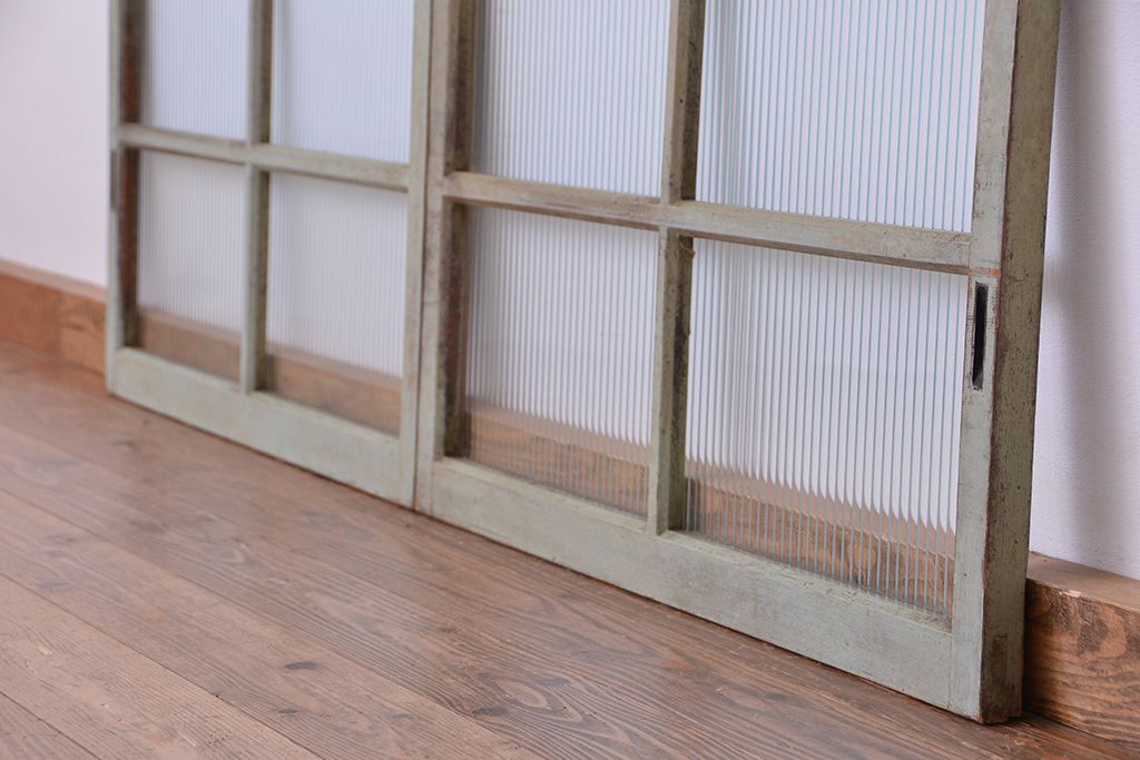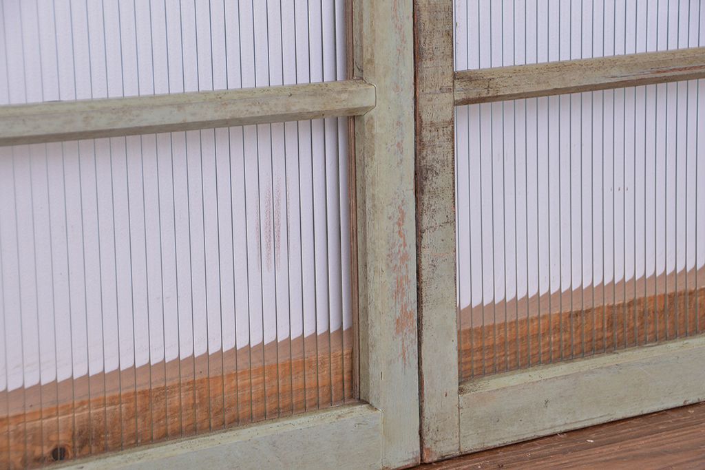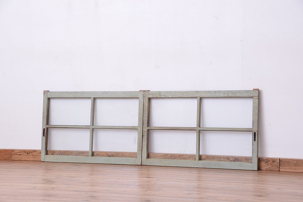 アンティーク ペイントの剥げた小さなモールガラス引き戸 2枚セット(ガラス窓)