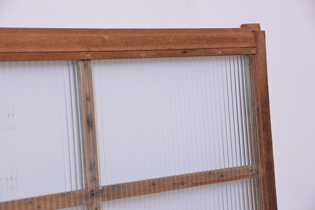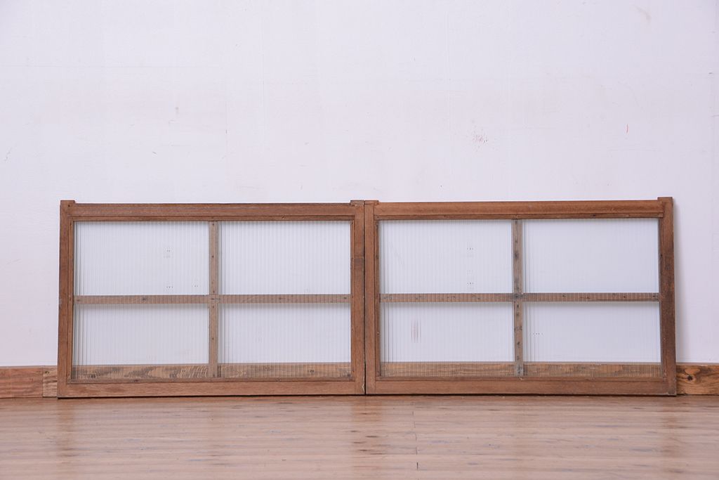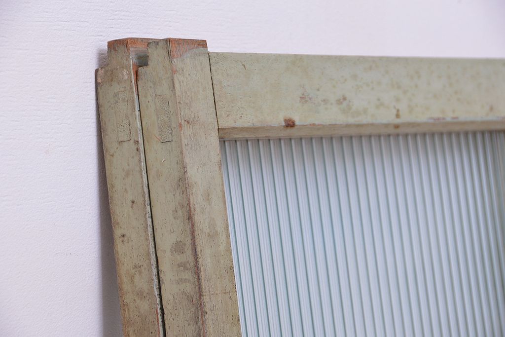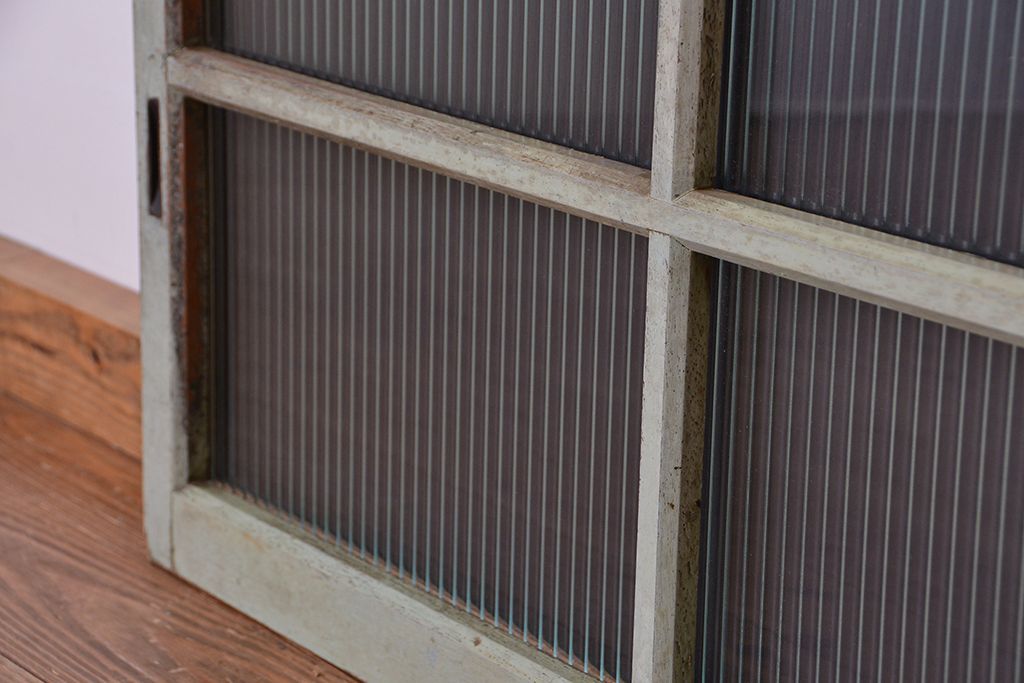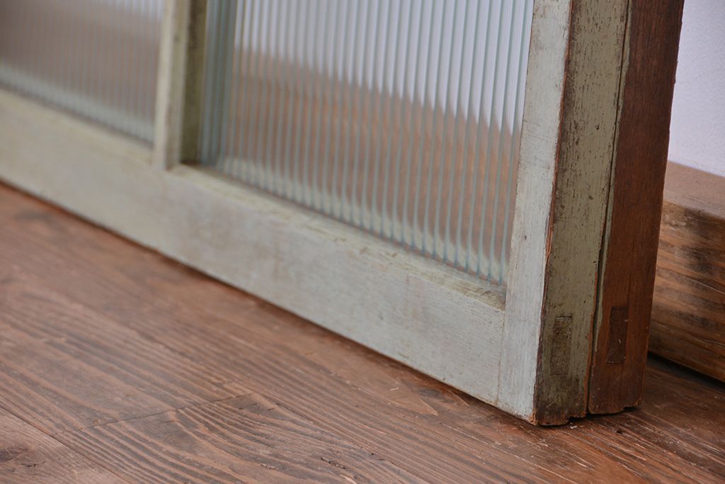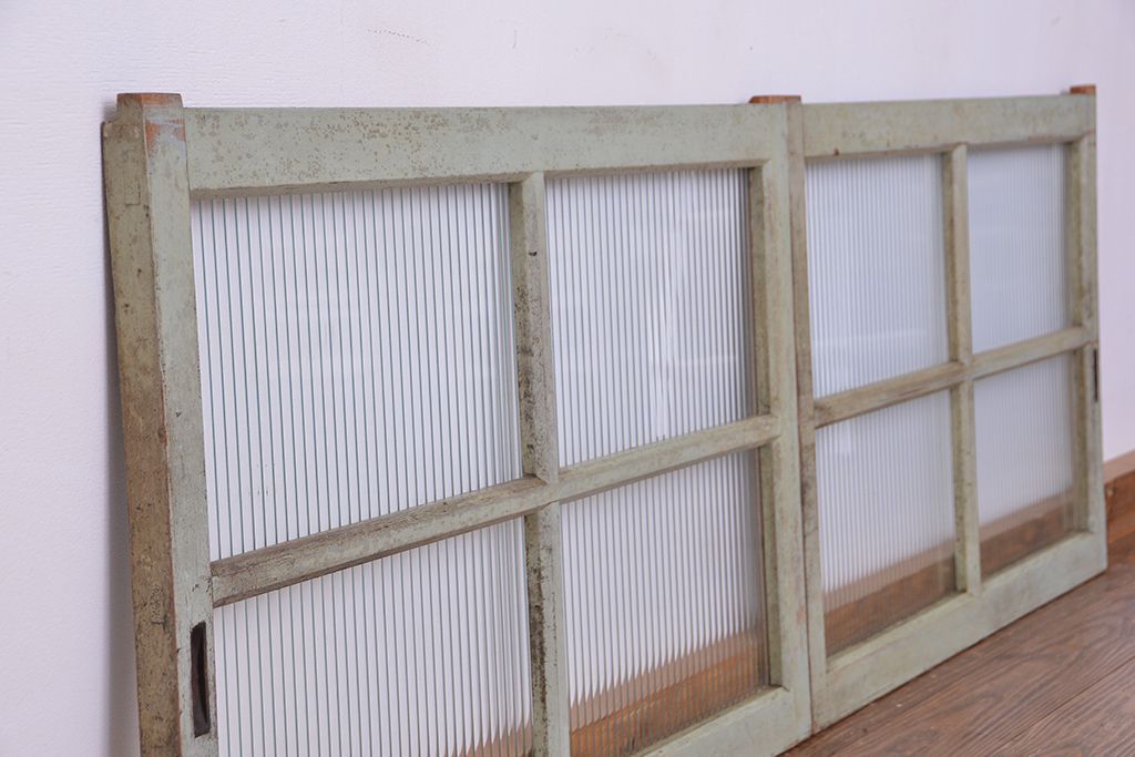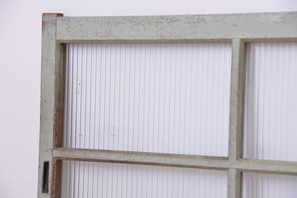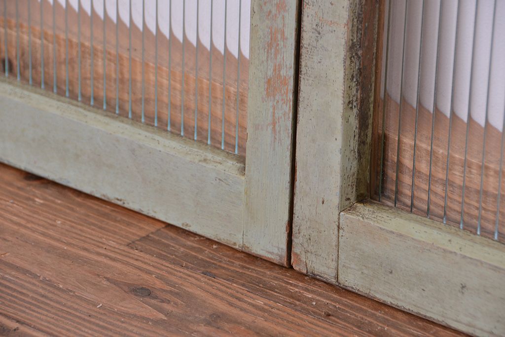 アンティーク ペイントの剥げた小さなモールガラス引き戸 2枚セット(ガラス窓)