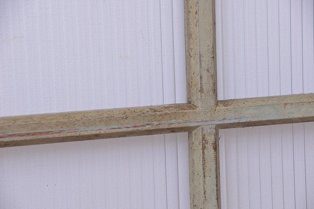 アンティーク ペイントの剥げた小さなモールガラス引き戸 2枚セット(ガラス窓)です。