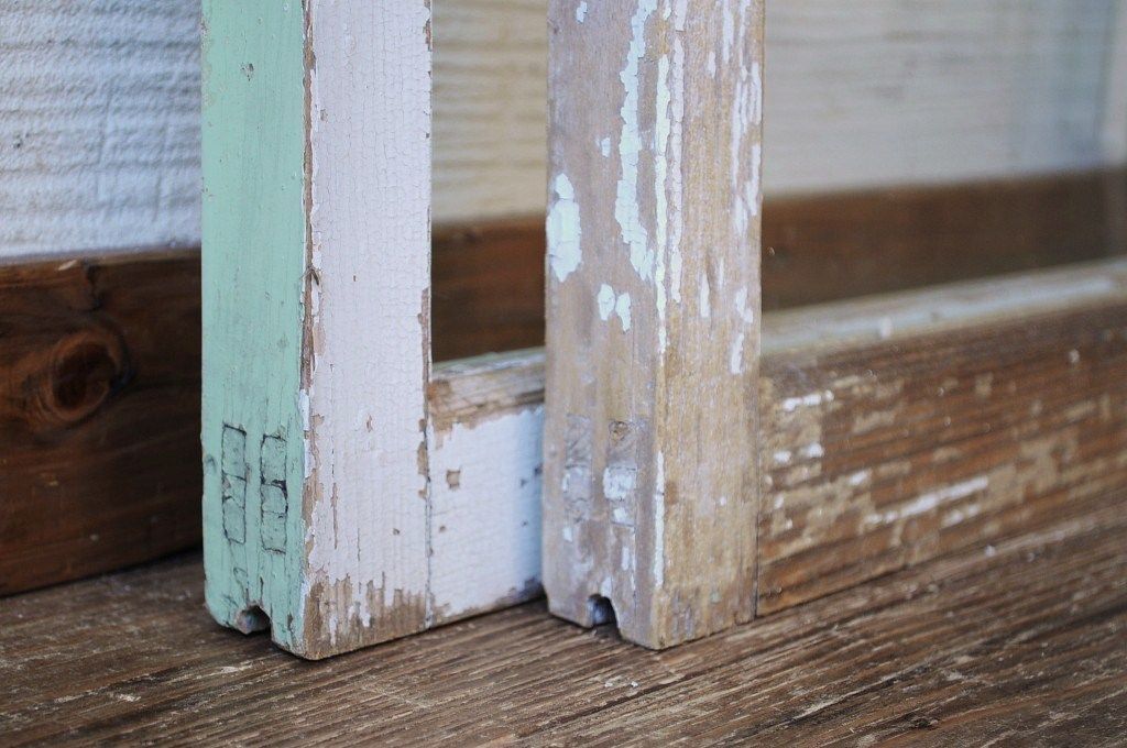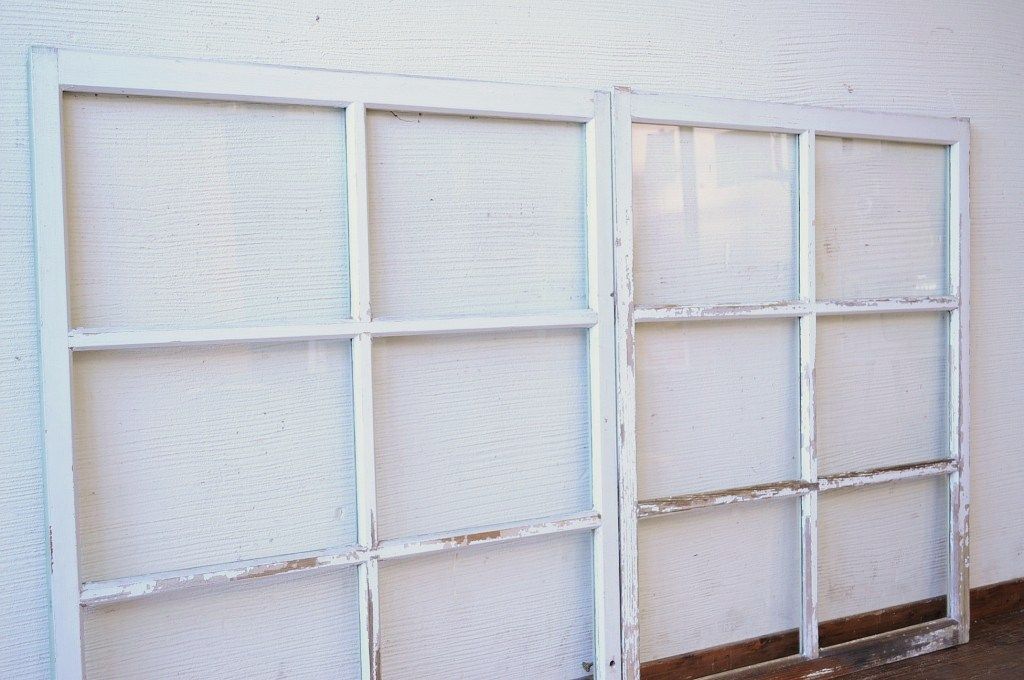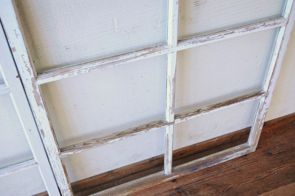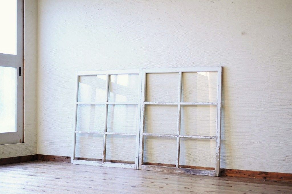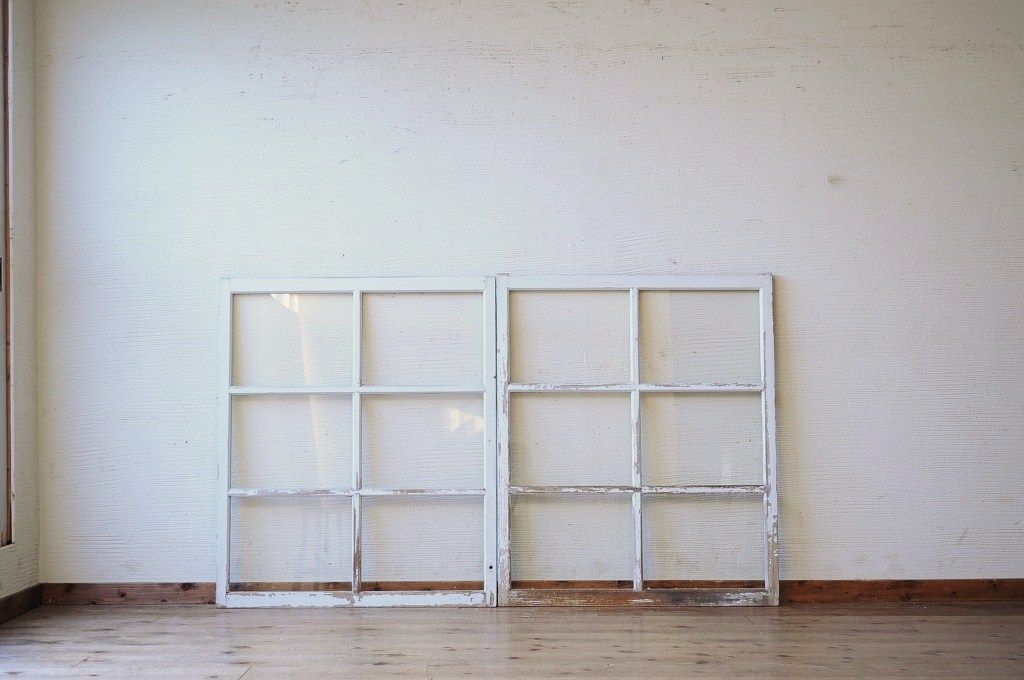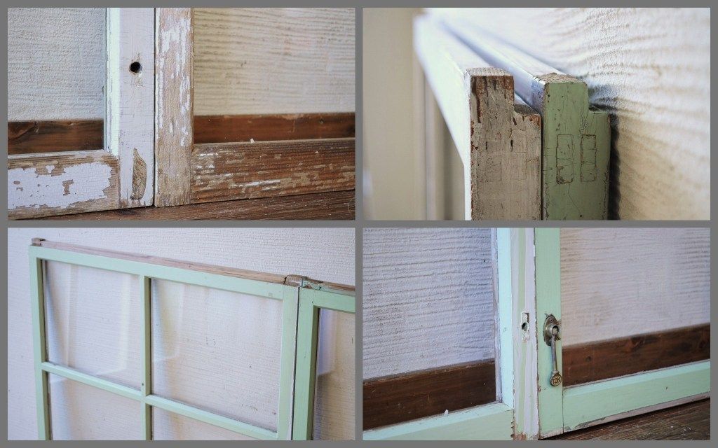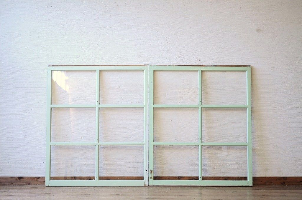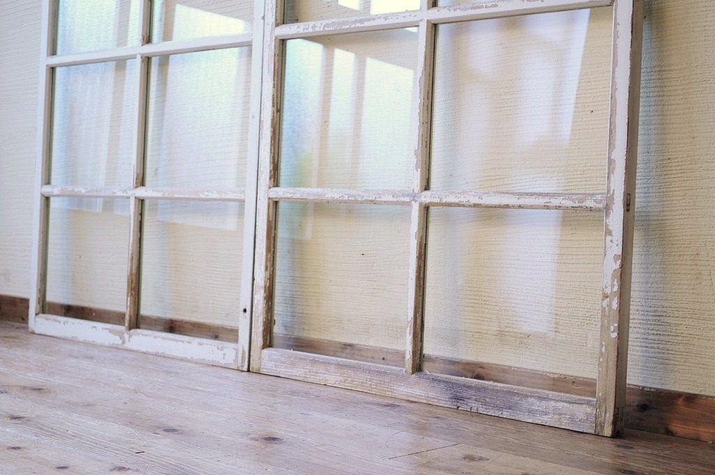 レトロ 古い学校のペンキの剥げた引き戸2枚セット6(窓)