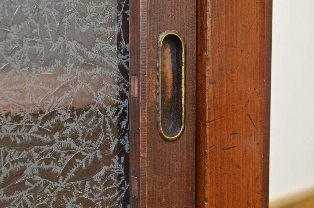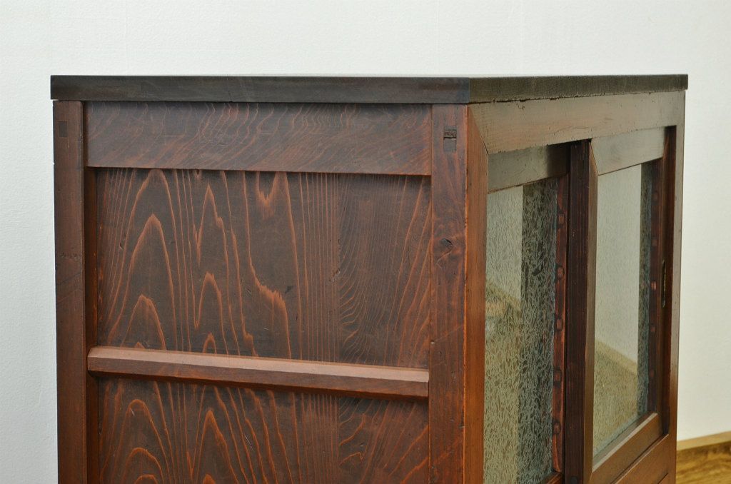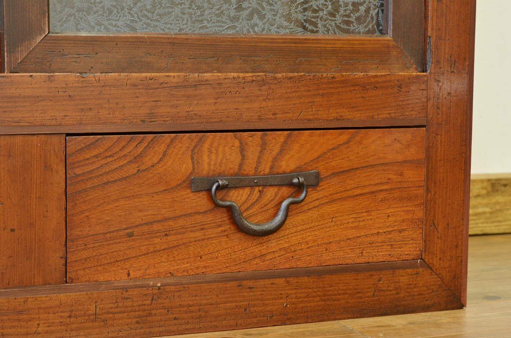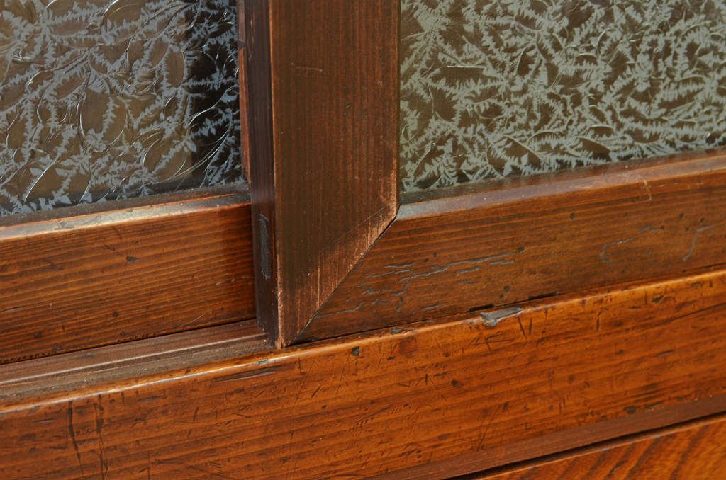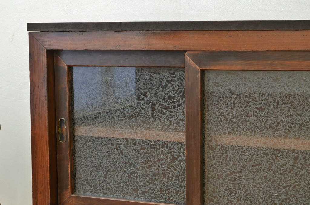 アンティーク家具 アンティーク 古い木の結霜ガラス収納棚