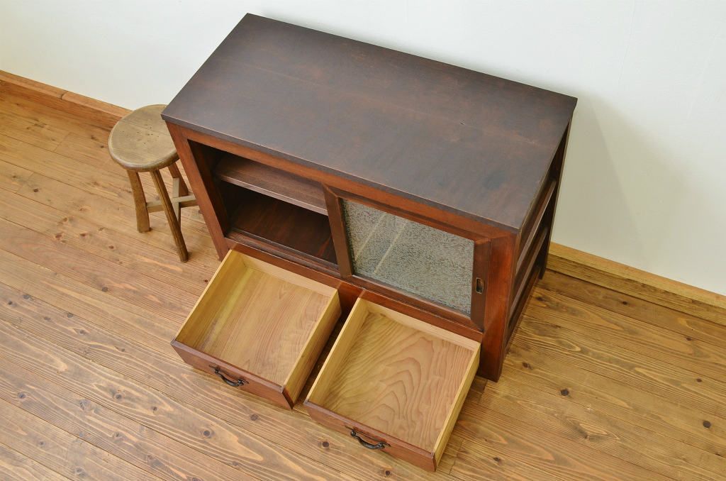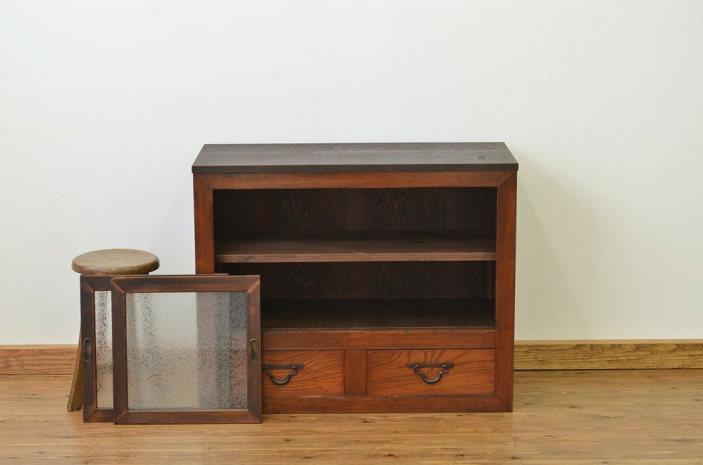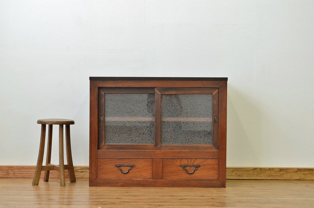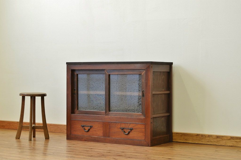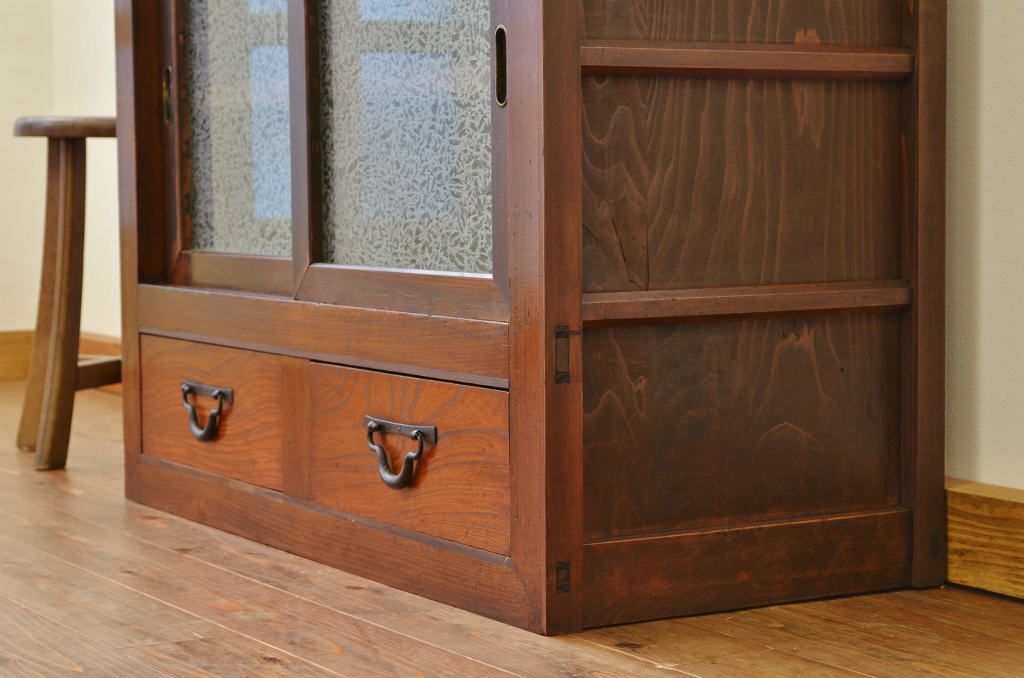 アンティーク家具 アンティーク 古い木の結霜ガラス収納棚