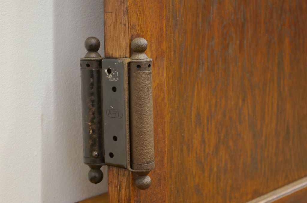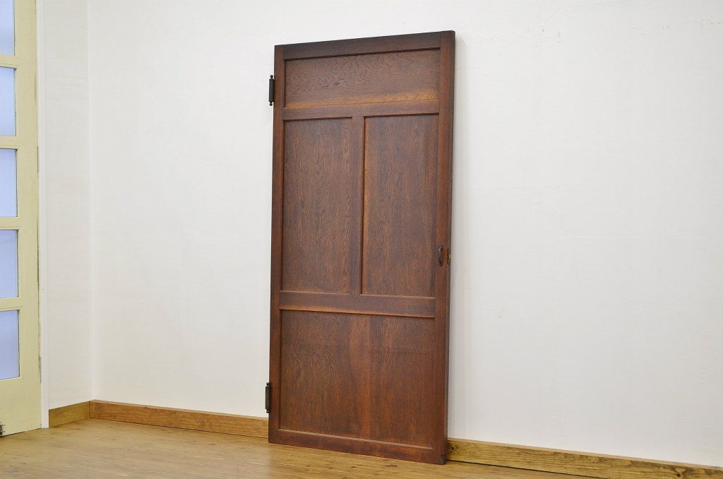 味わい深い古い木が印象的な自由蝶番付きドアです。