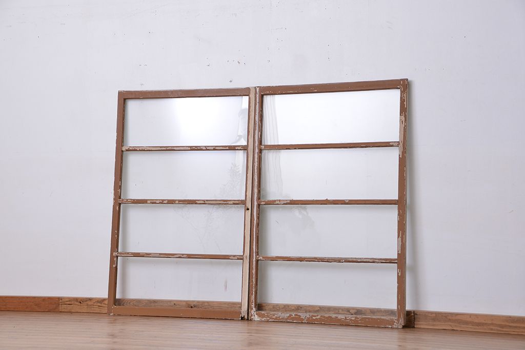 アンティーク ペンキの剥げたシンプルなガラス戸 2枚セット(2)(窓・引き戸)です。