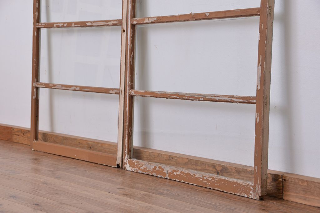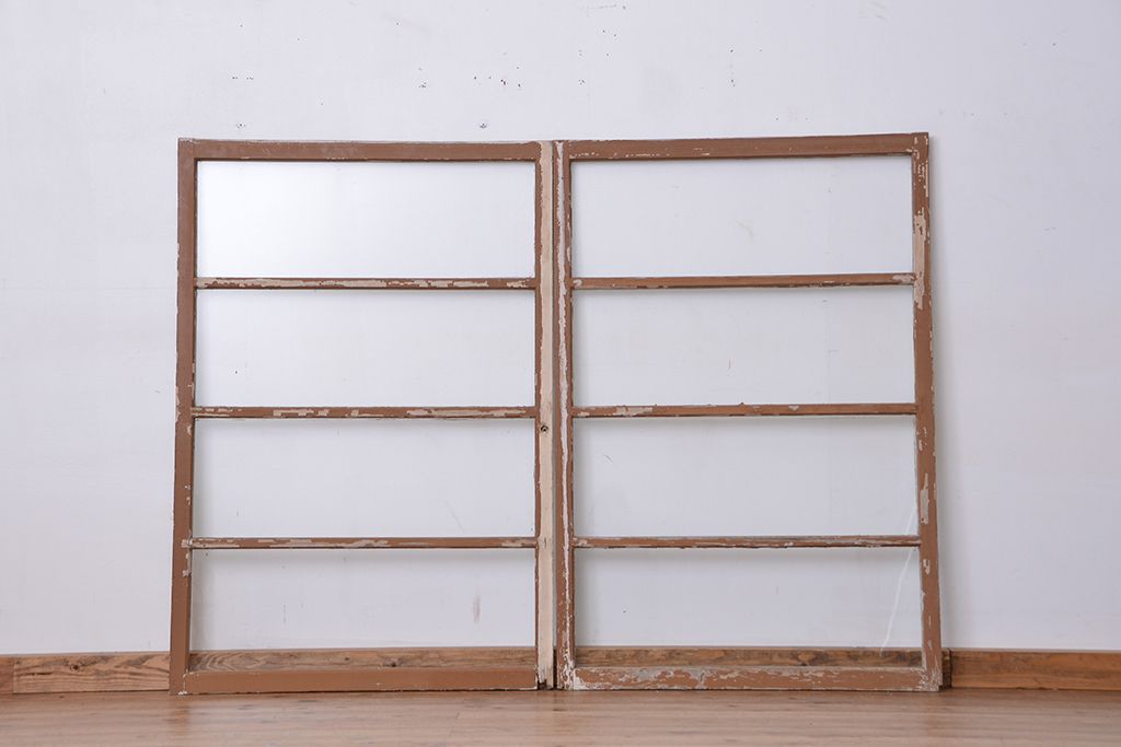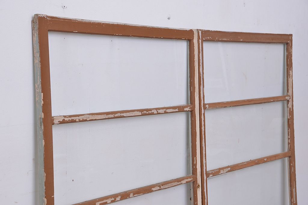 アンティーク ペンキの剥げたシンプルなガラス戸 2枚セット(2)(窓・引き戸)