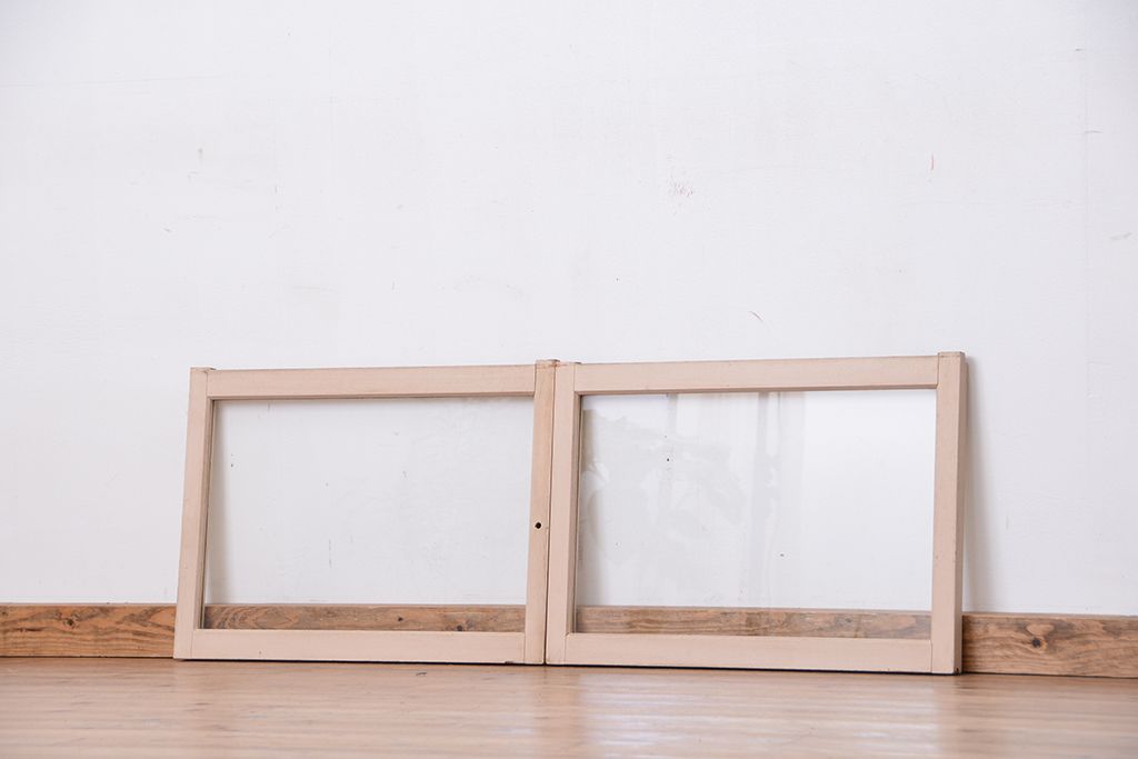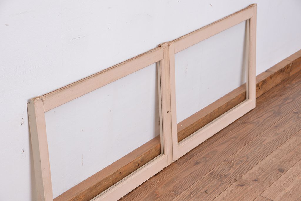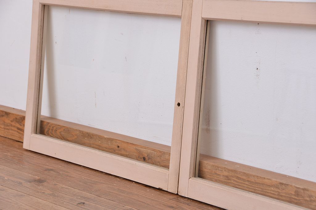 アンティーク 古い木のシンプルなペイントガラス引き戸 2枚セット(1)(窓/ガラス戸)