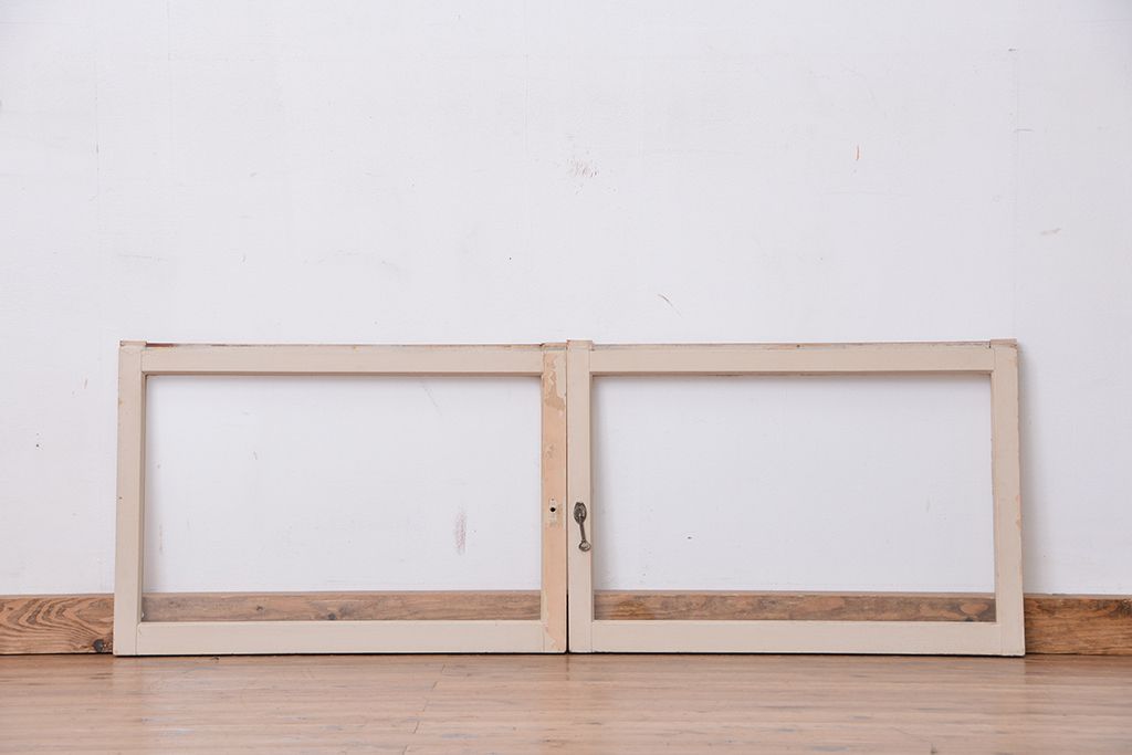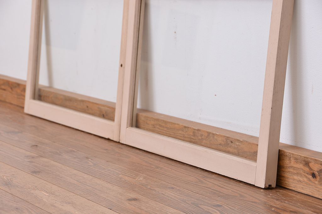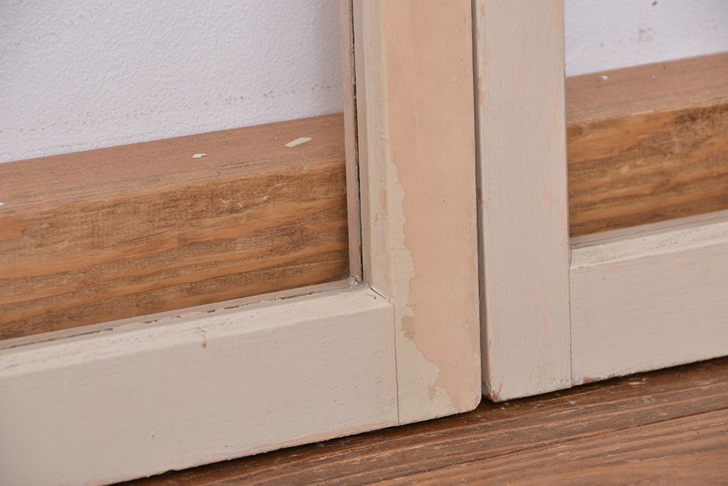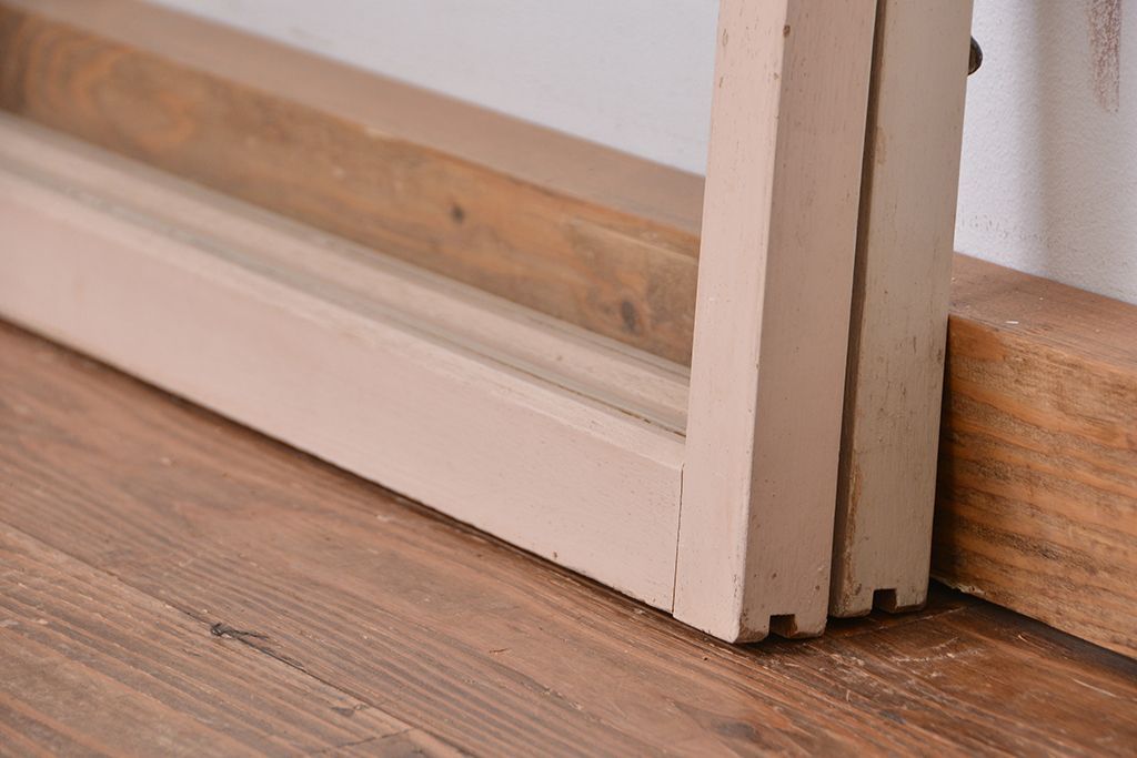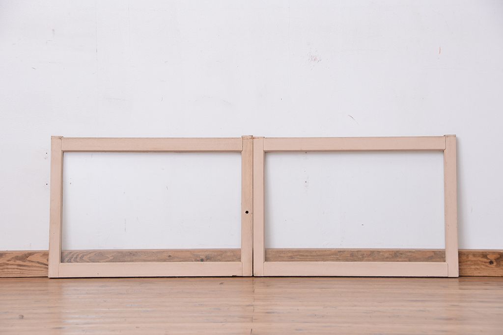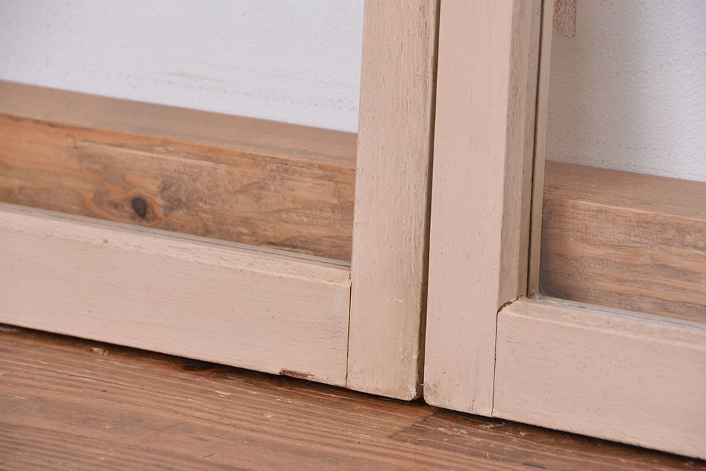 ラフジュ工房> ドア・建具> 窓 > アンティーク 古い木のシンプルなペイントガラス引き戸 2枚セット(1)(窓/ガラス戸)