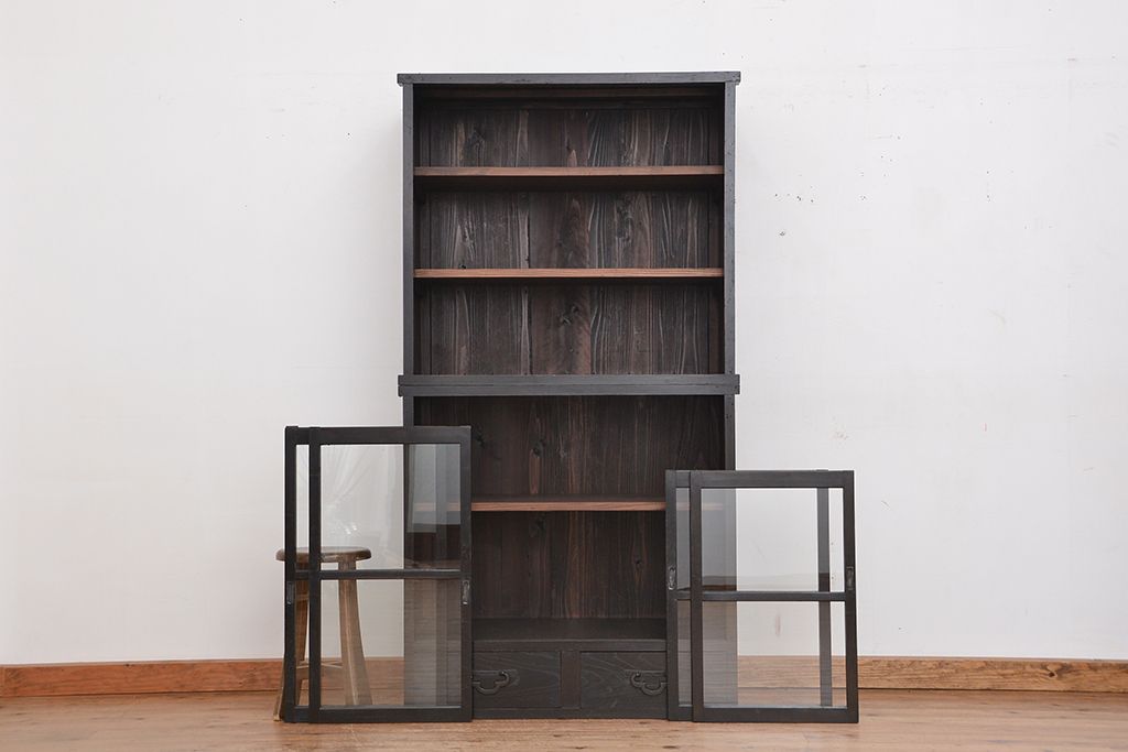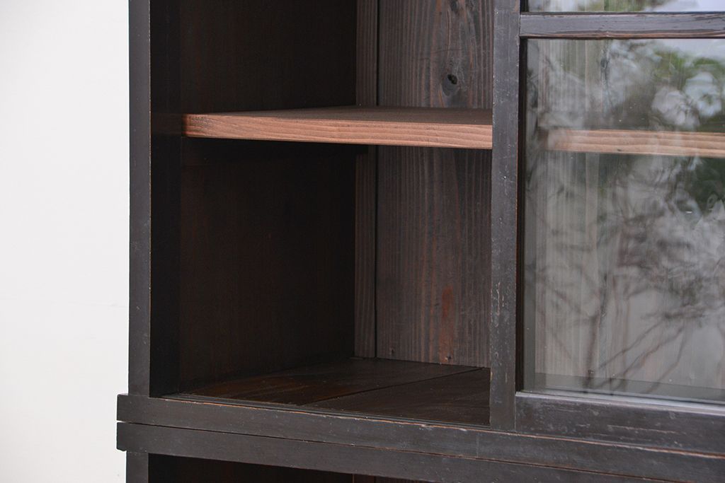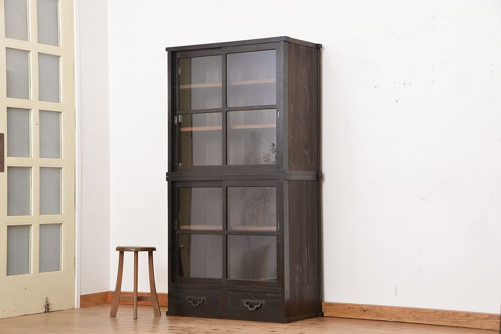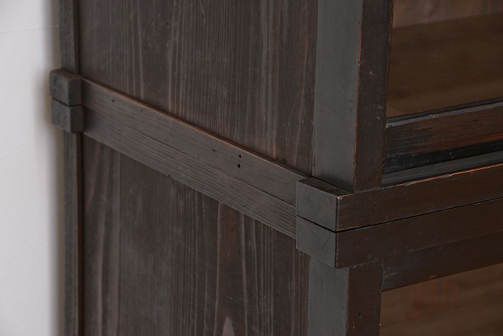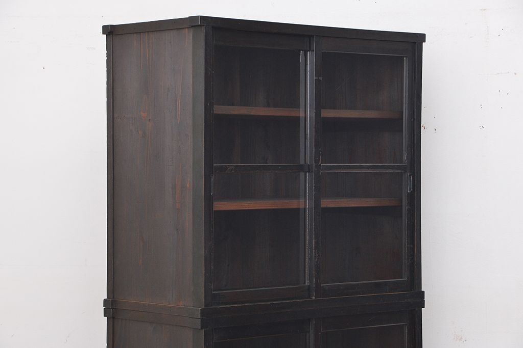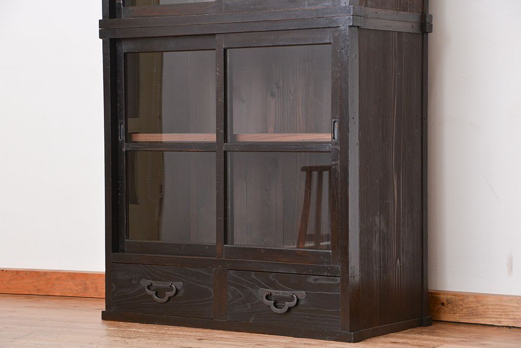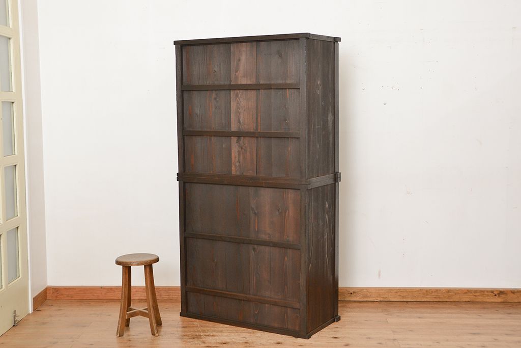 アンティーク家具 アンティーク 古い木のシックな二段重ね収納棚(飾り棚、食器棚)