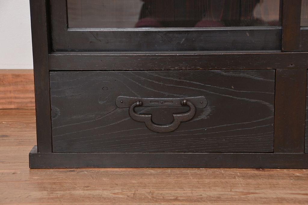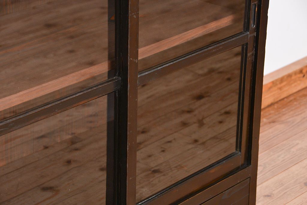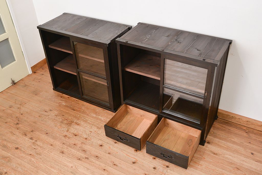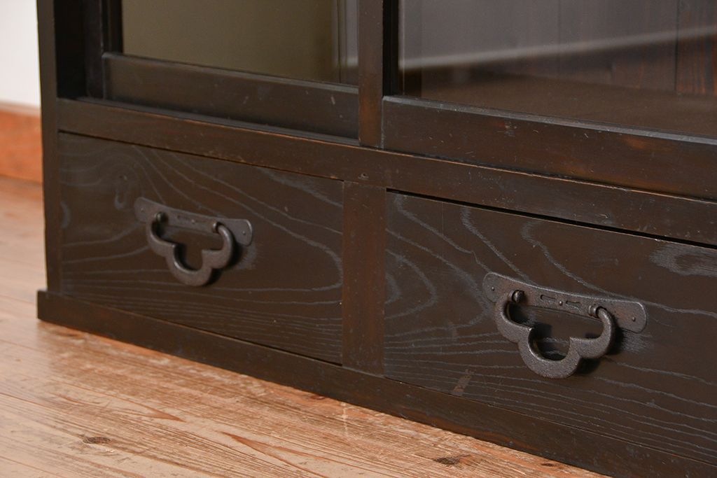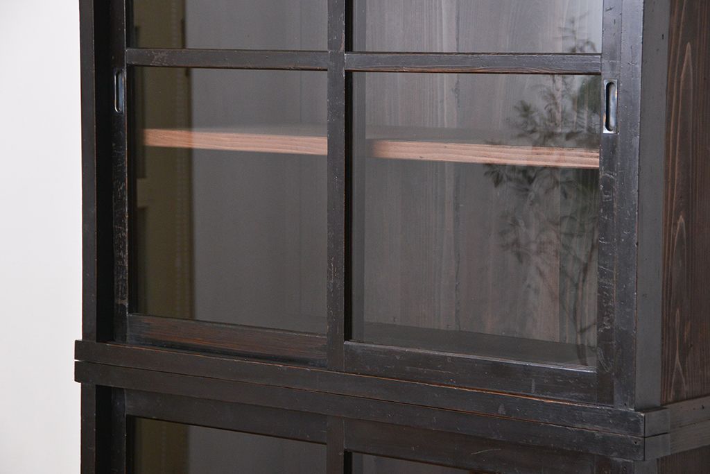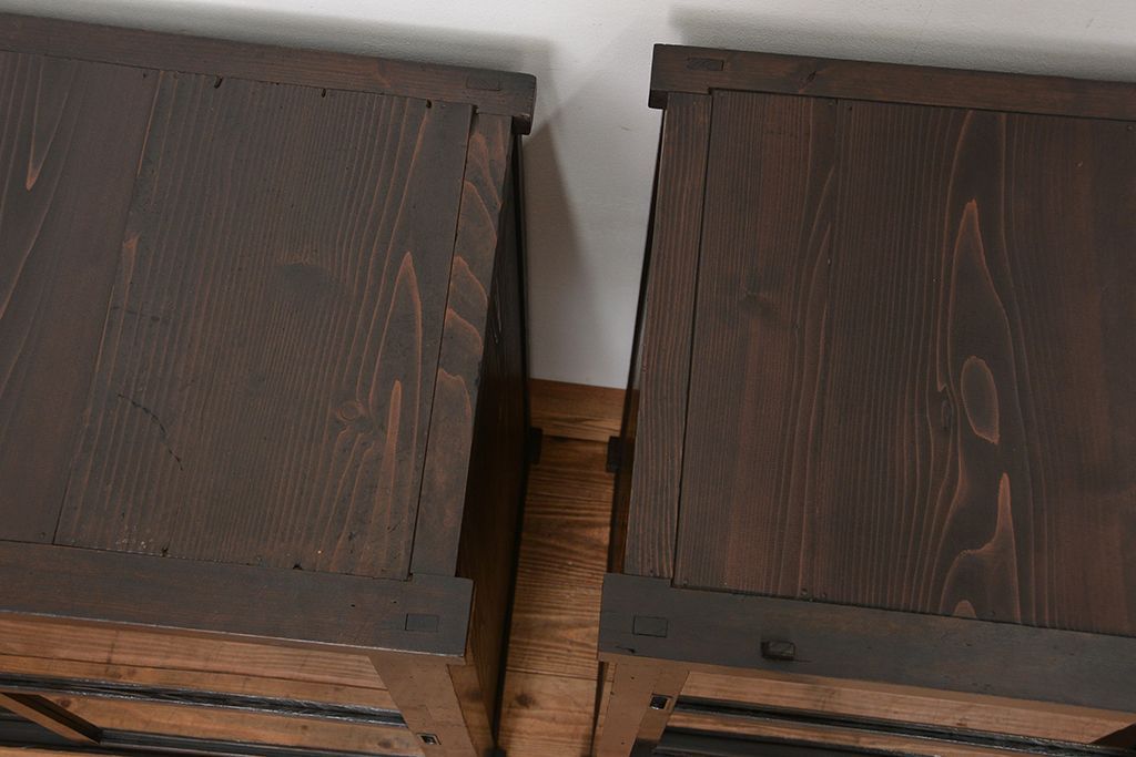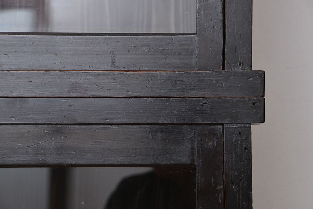アンティーク家具 アンティーク 古い木のシックな二段重ね収納棚(飾り棚、食器棚)