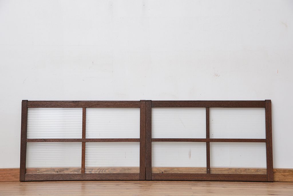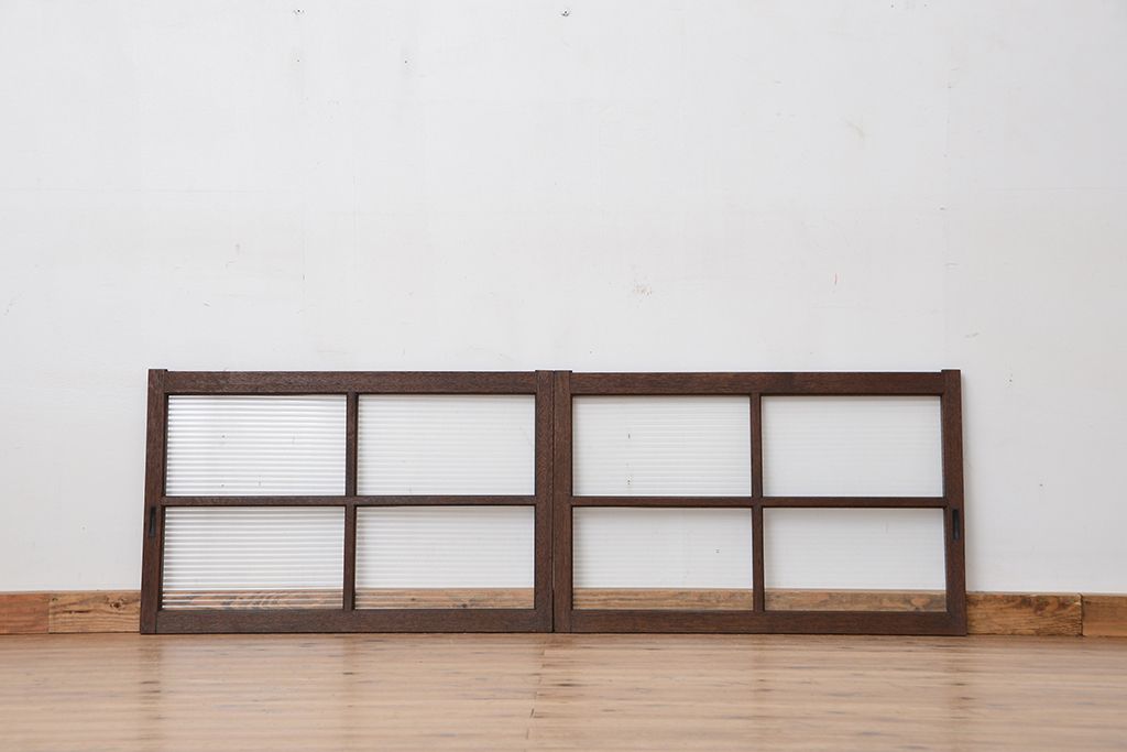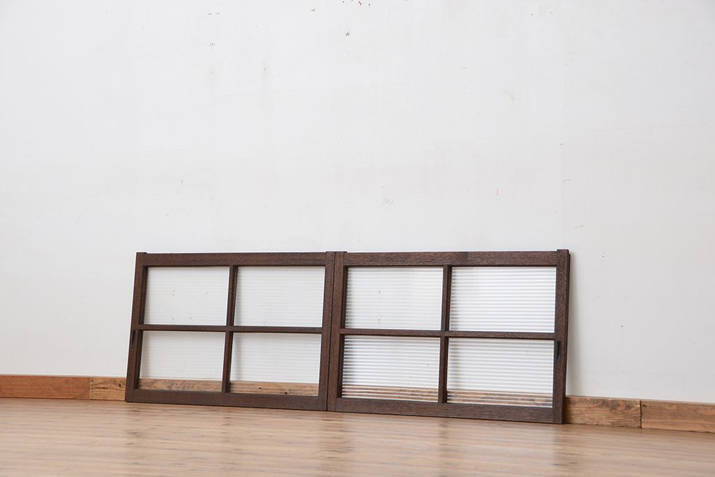 アンティーク 古い木のシックなモールガラス引き戸2枚セット?(ガラス戸、窓)です。