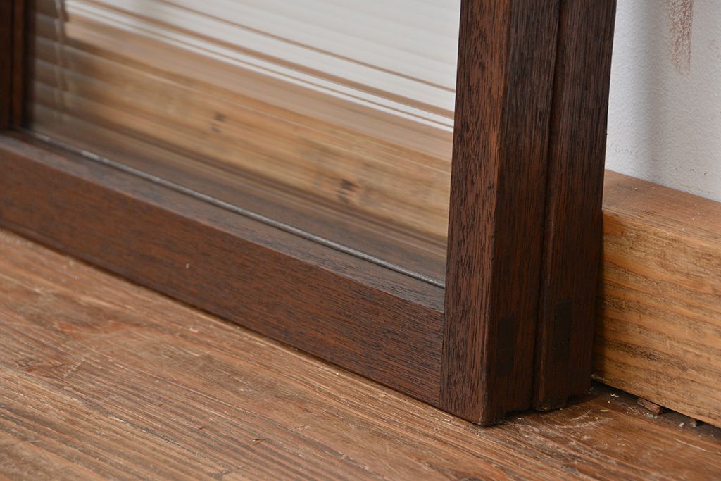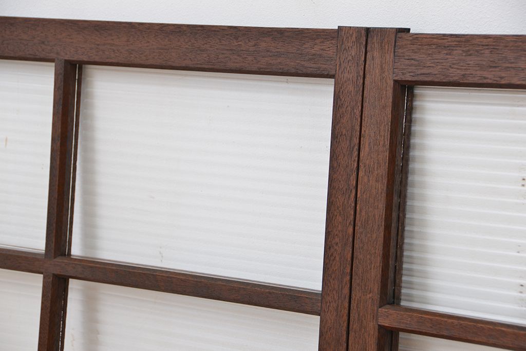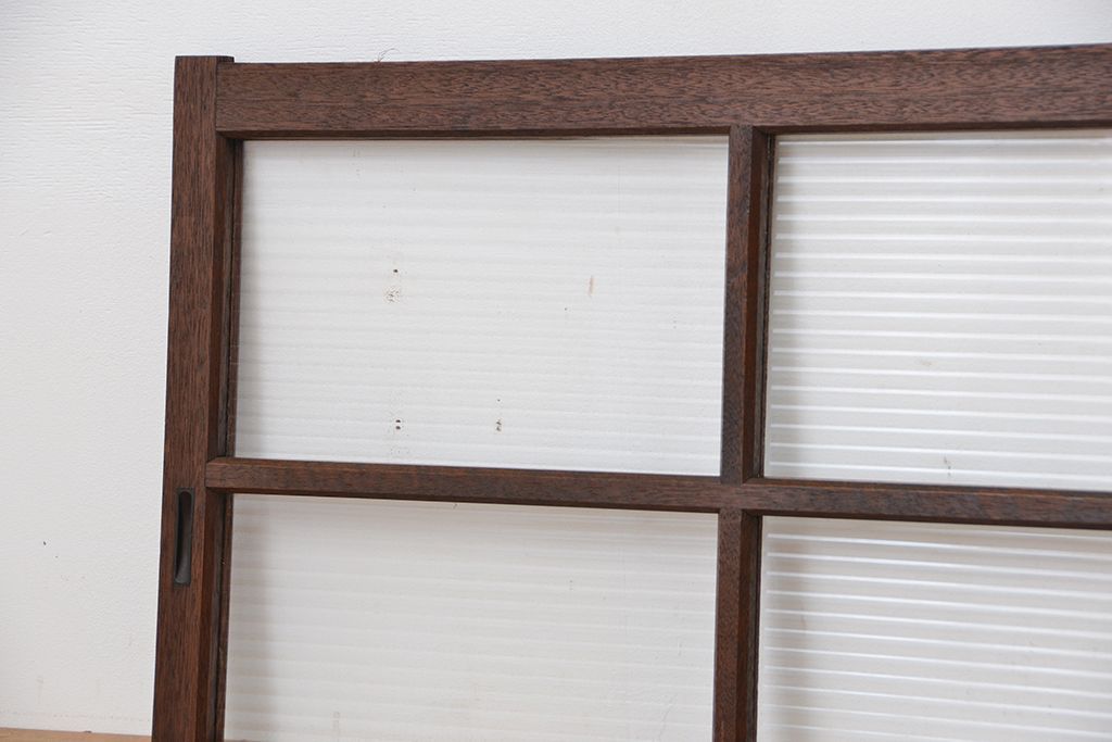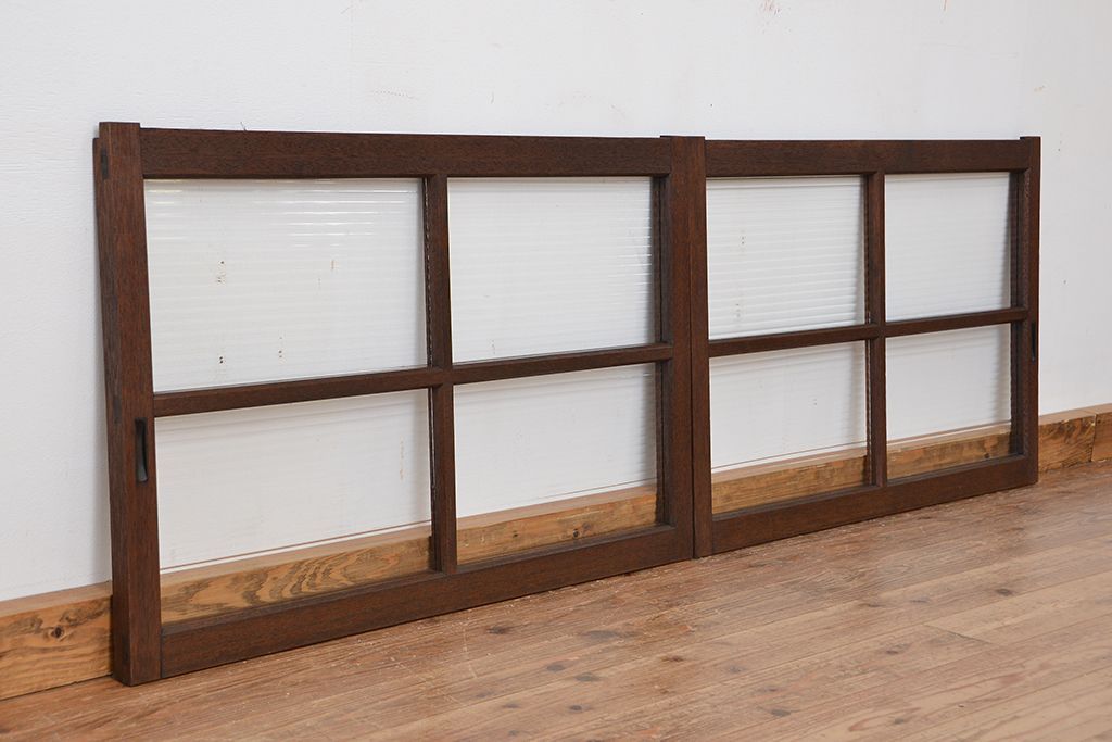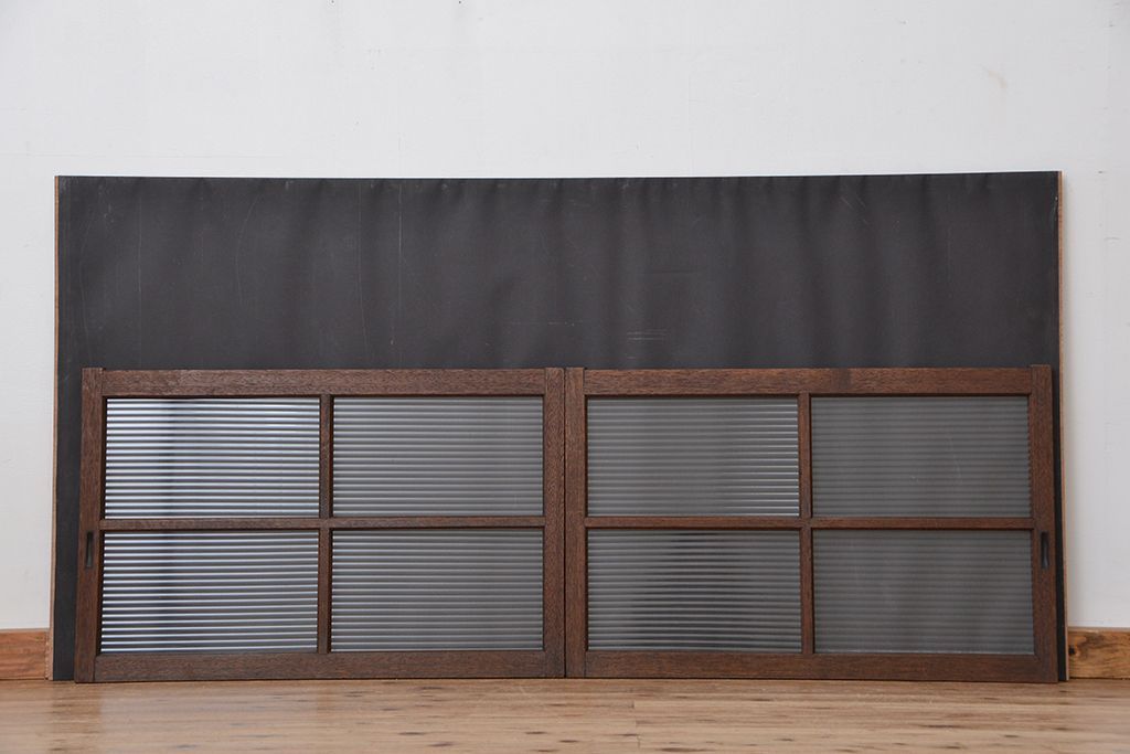 アンティーク 古い木のシックなモールガラス引き戸2枚セット?(ガラス戸、窓)