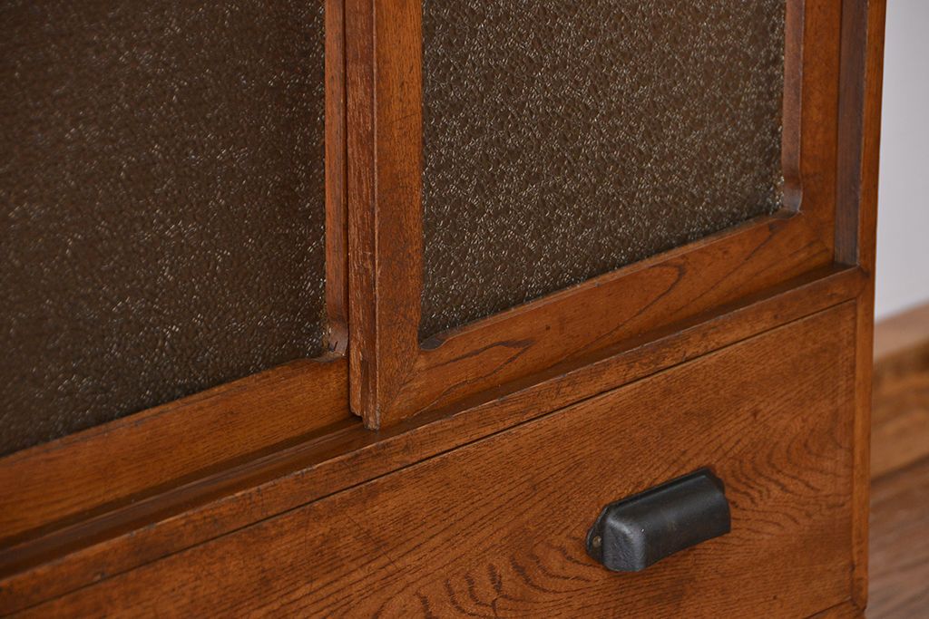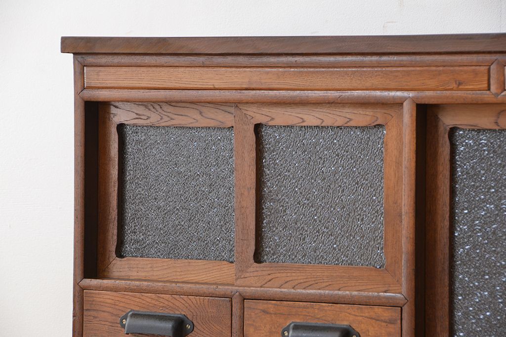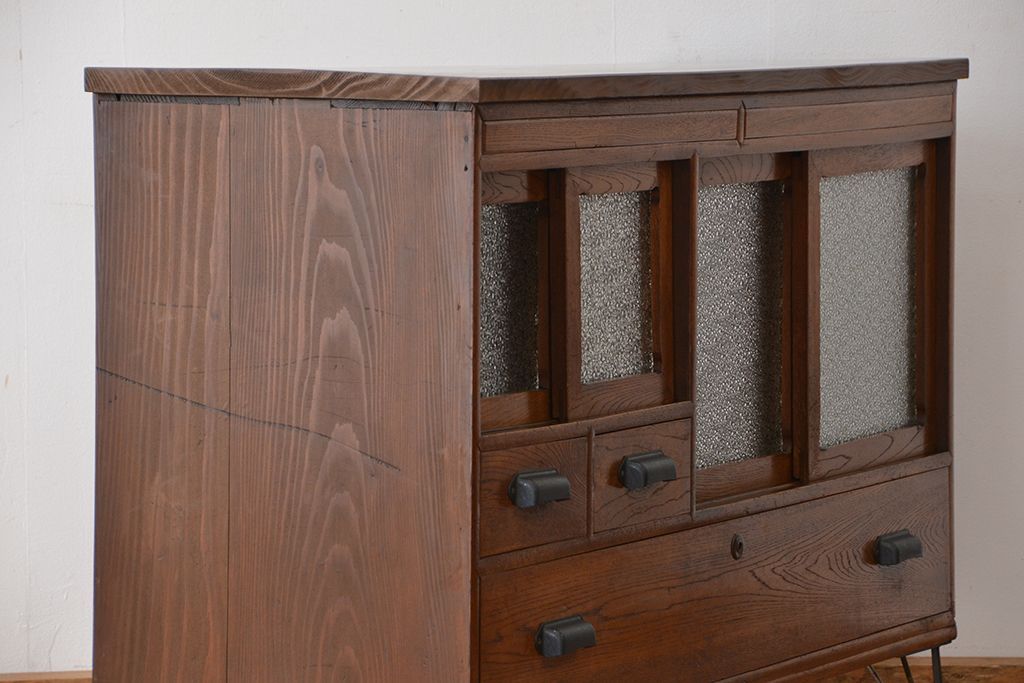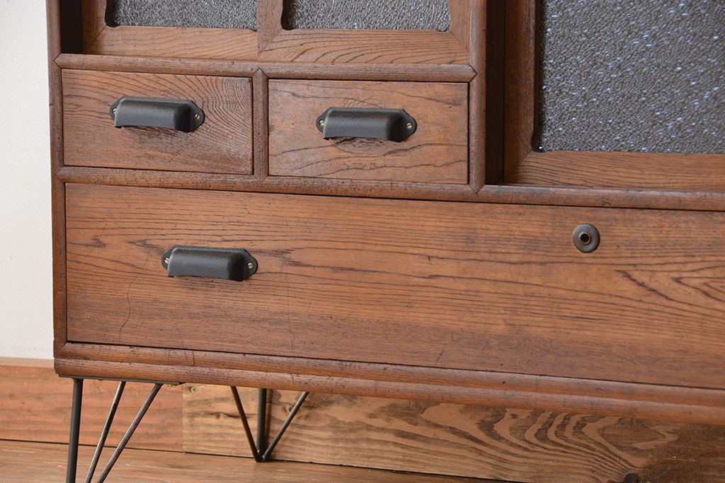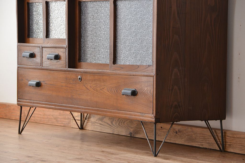 アンティーク家具 アンティーク ダイヤガラスの鉄脚付きローボード(収納棚)