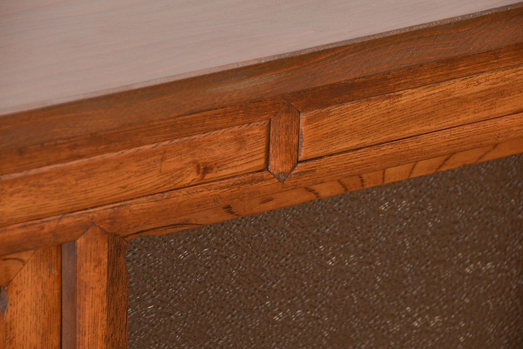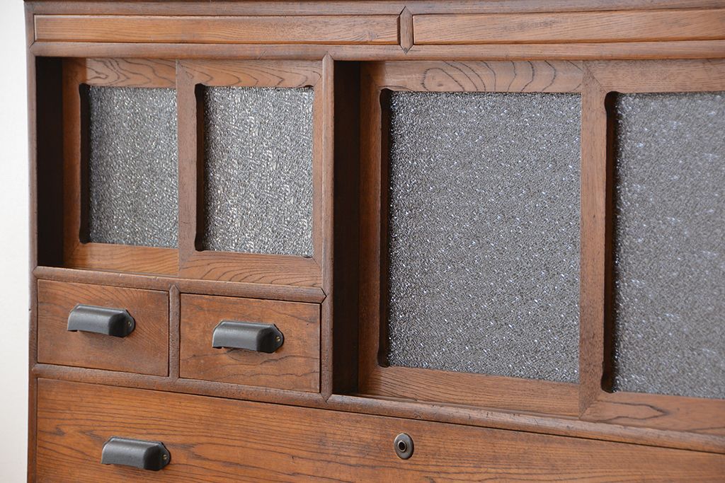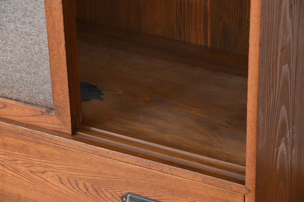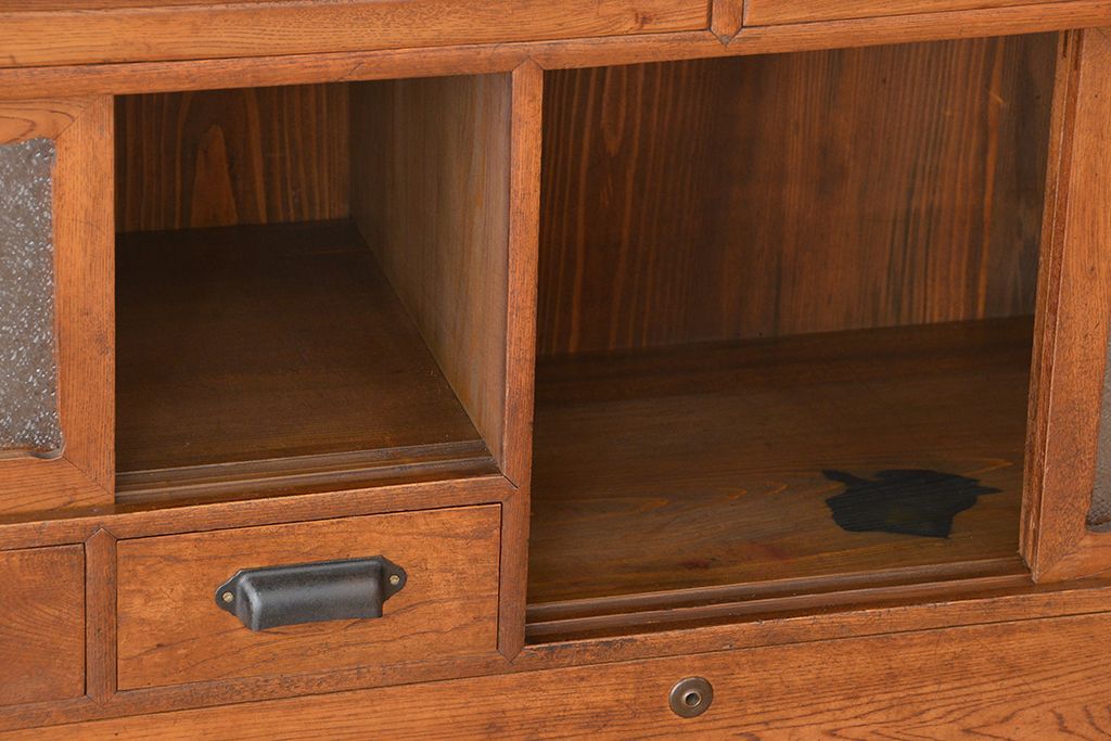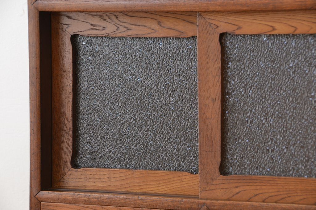アンティーク家具 アンティーク ダイヤガラスの鉄脚付きローボード(収納棚)