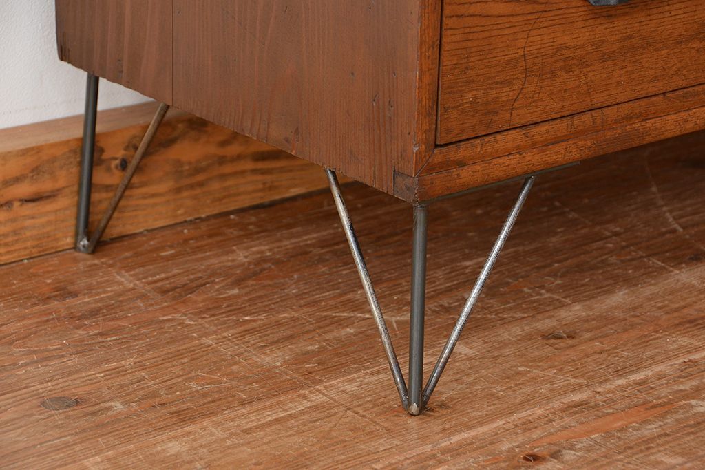 時代感のある家具をフローリングに似合う鉄脚でアレンジしました。