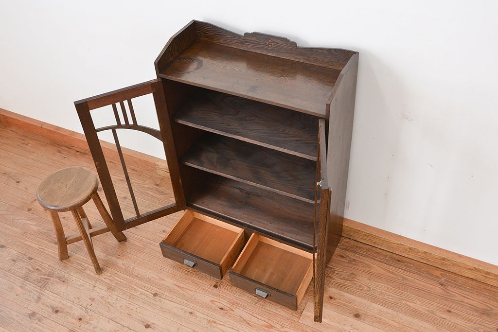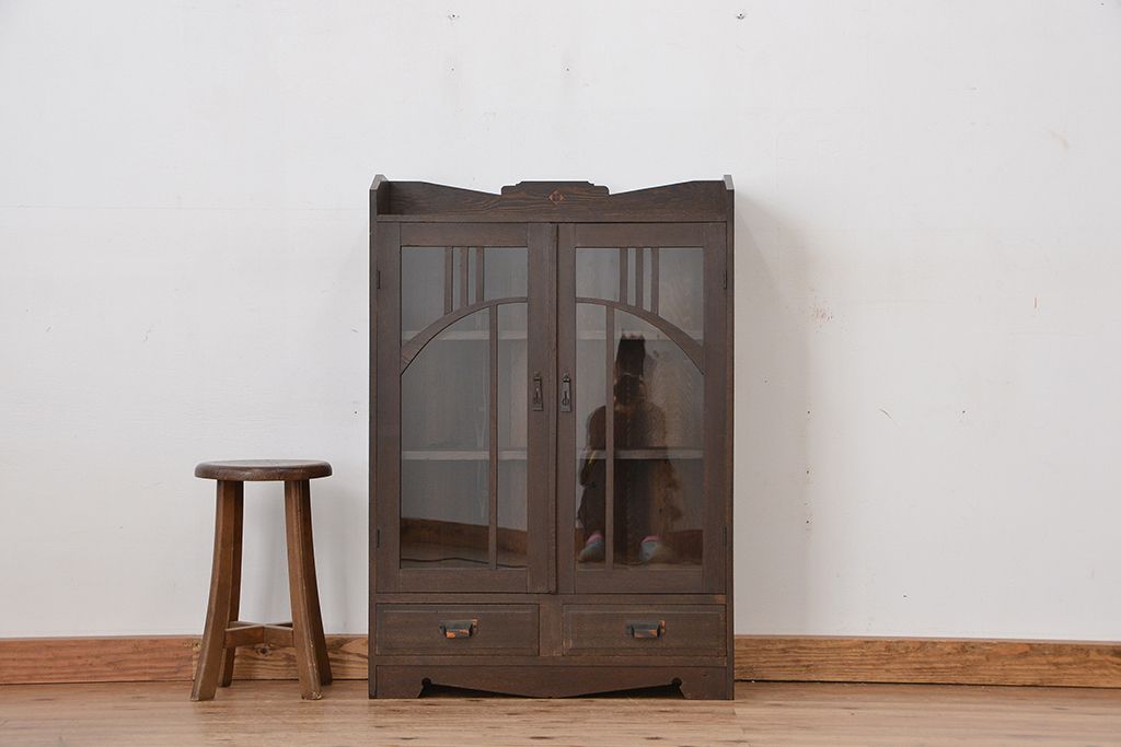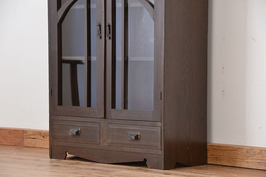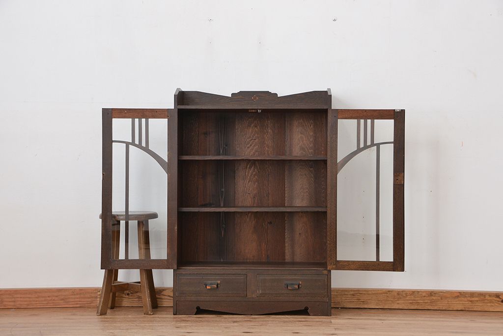 アンティーク家具 大正ロマン 古い栓材のシックで上質な本箱(ブックケース)