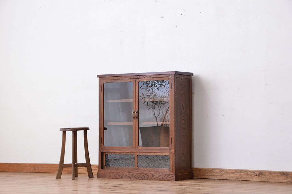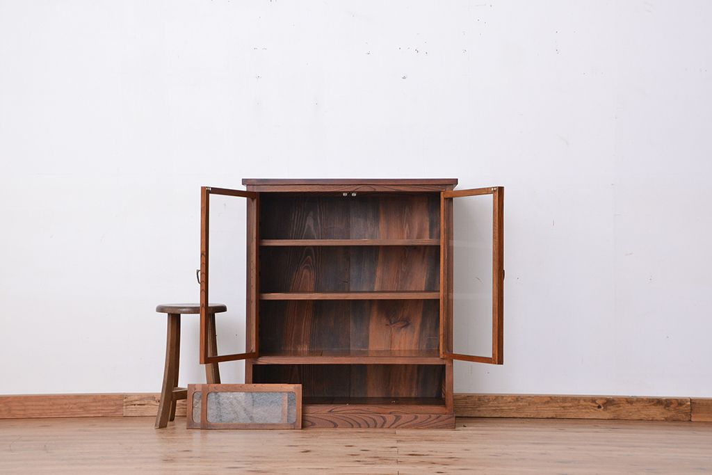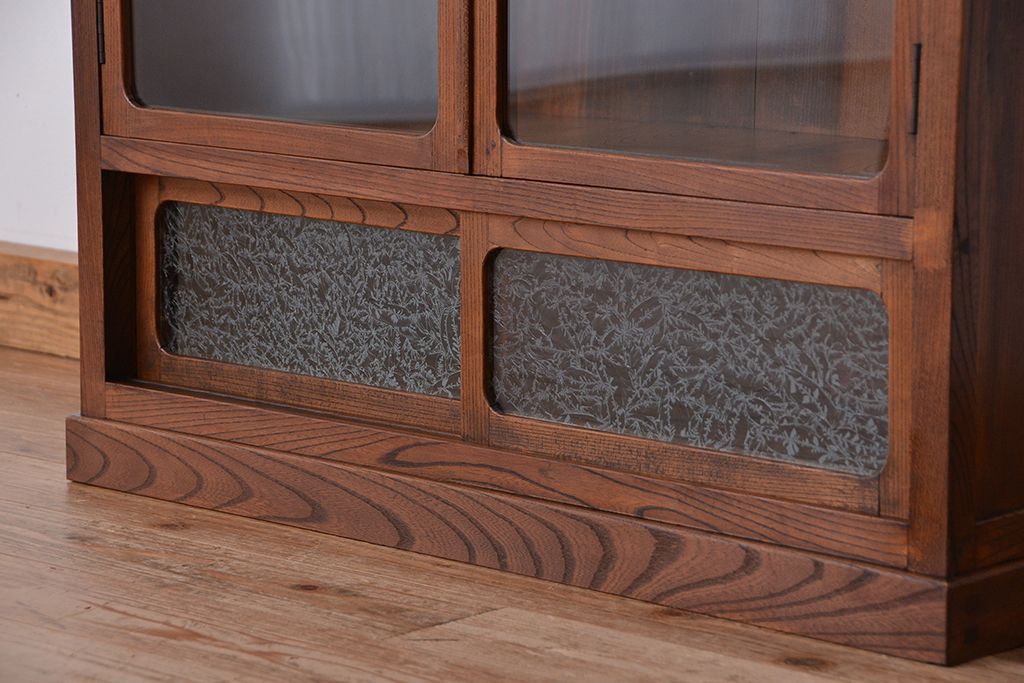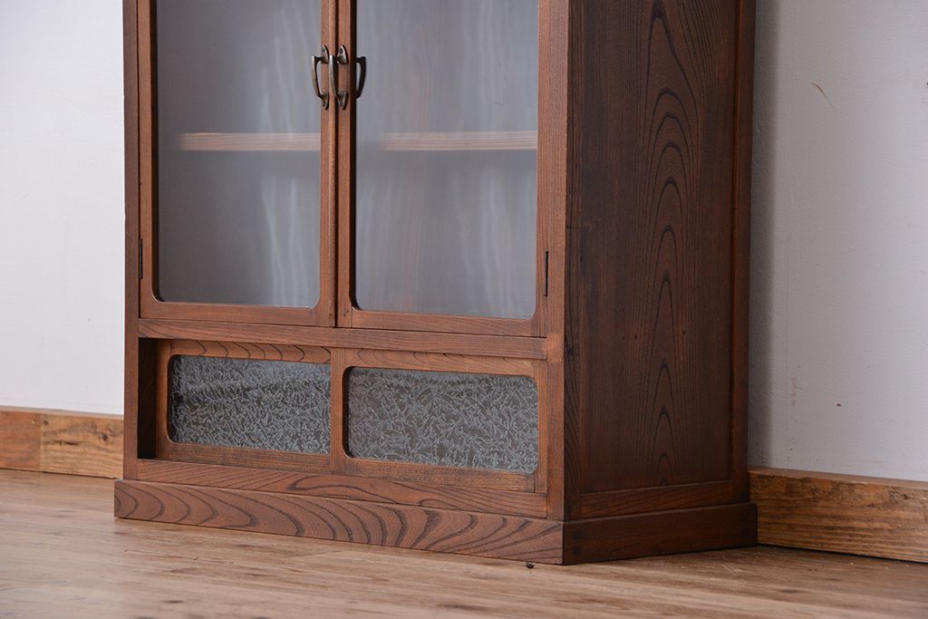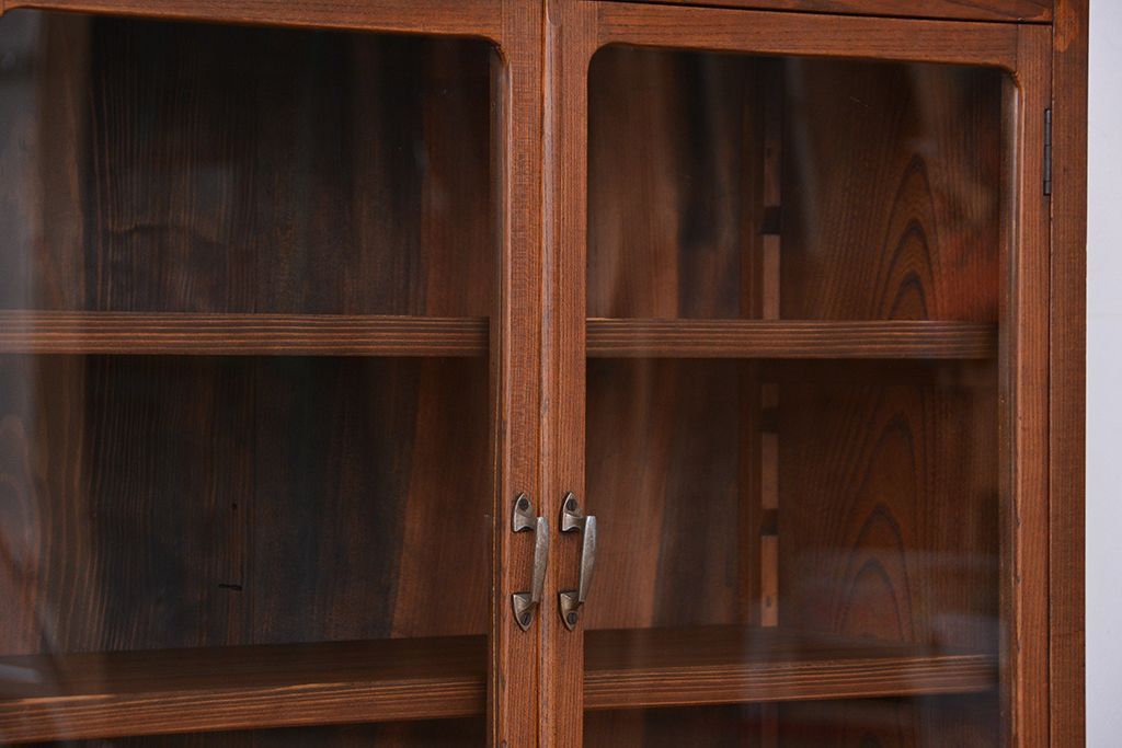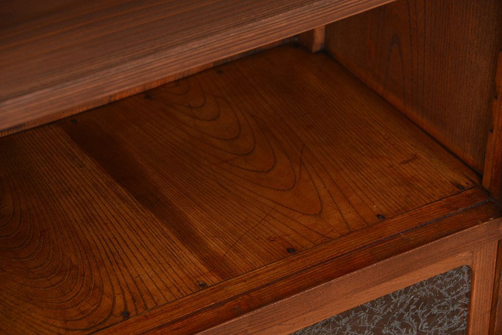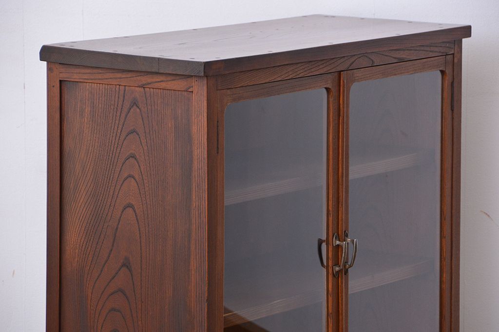 アンティーク家具 アンティーク 三方欅材の上質な収納棚(本箱、食器棚)