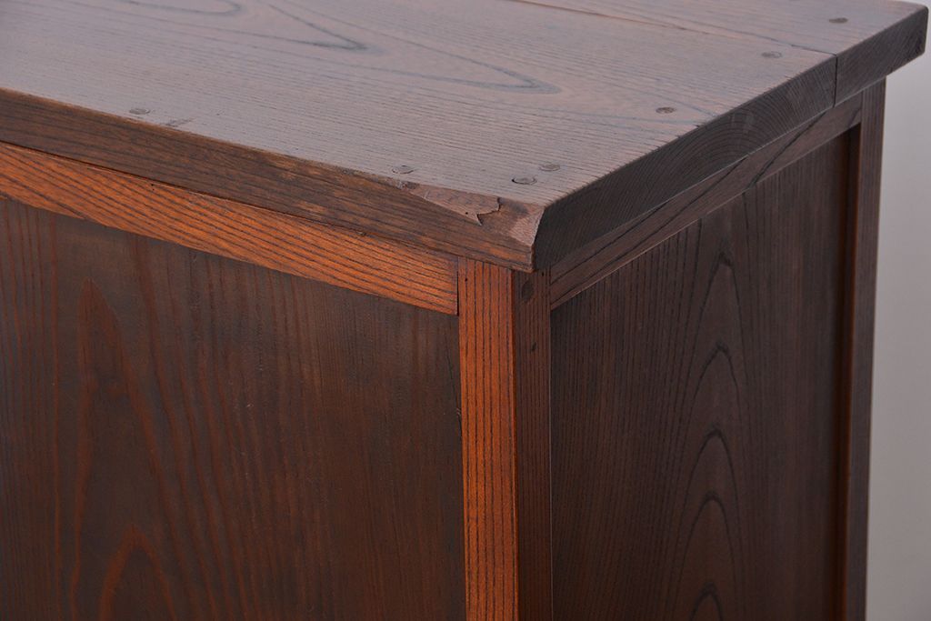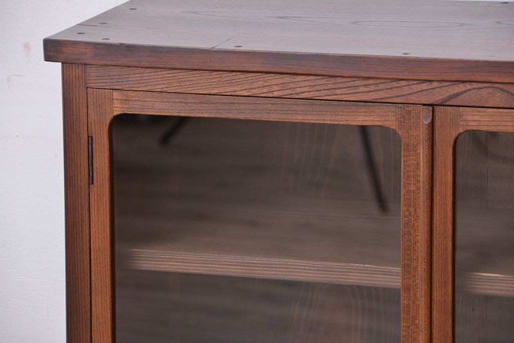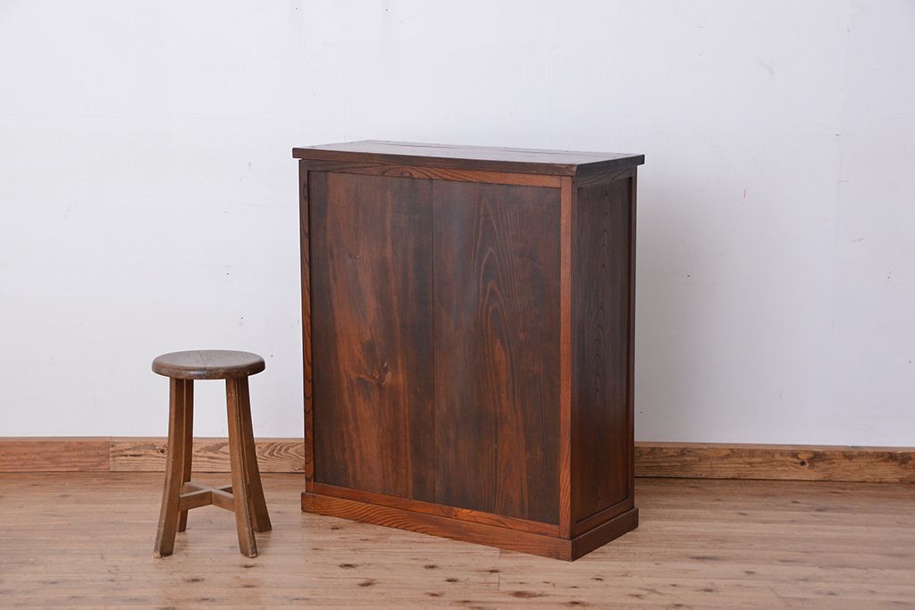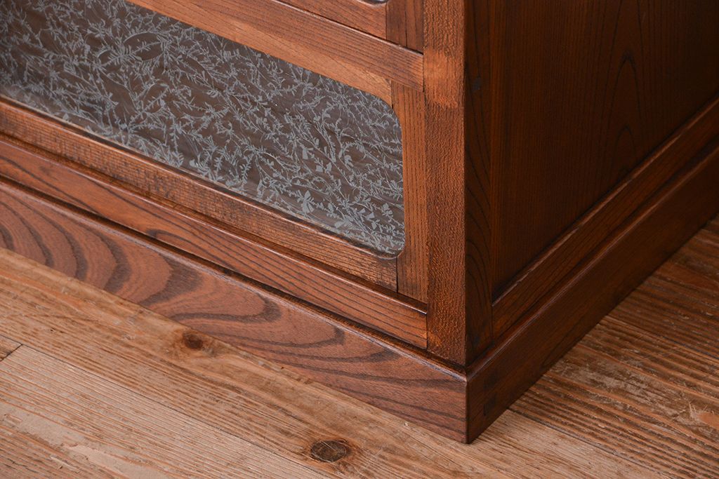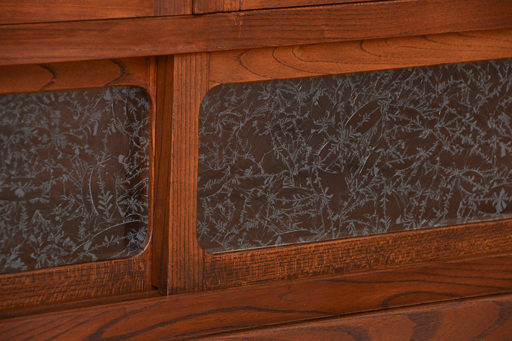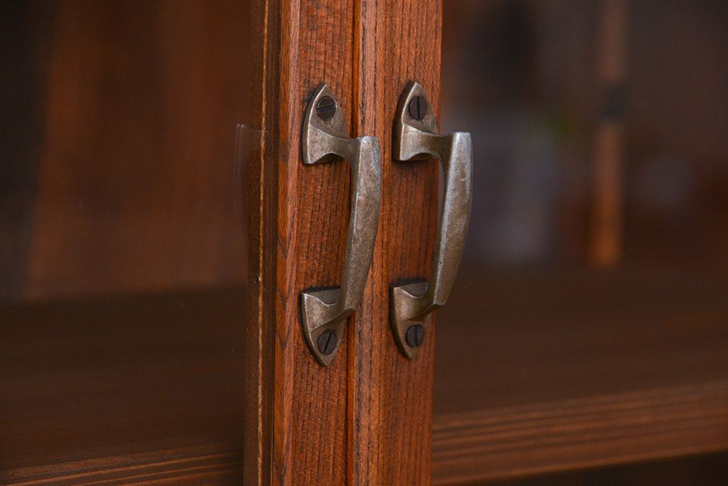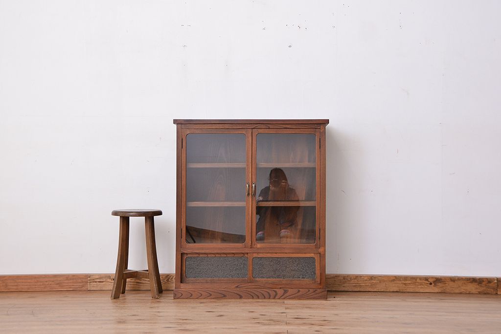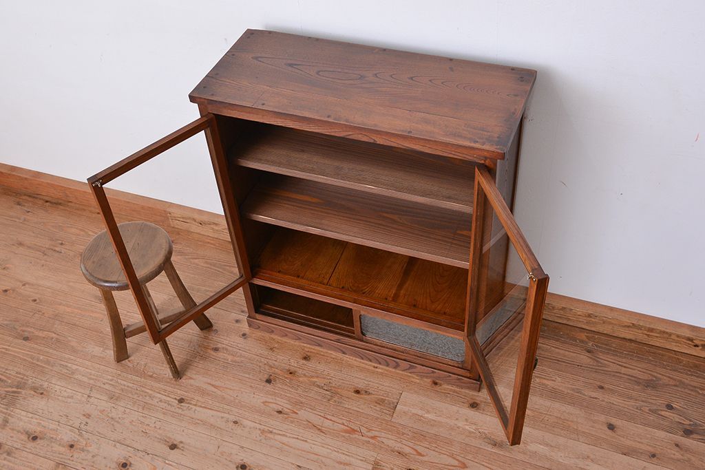 アンティーク家具 アンティーク 三方欅材の上質な収納棚(本箱、食器棚)