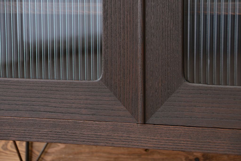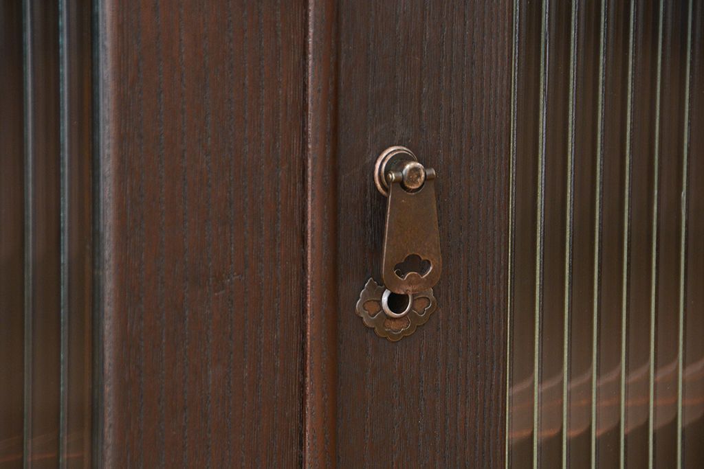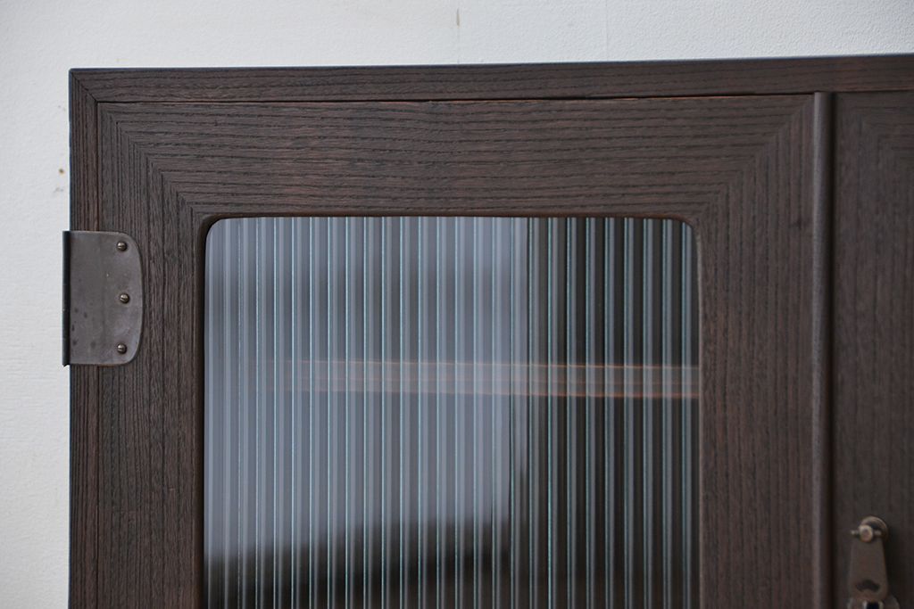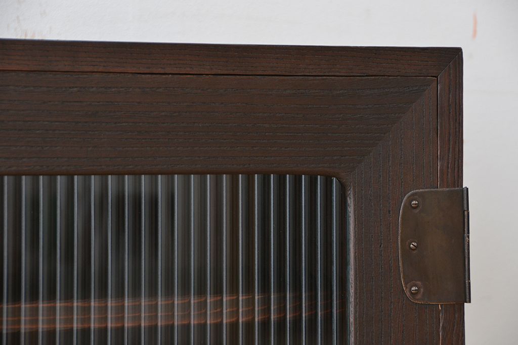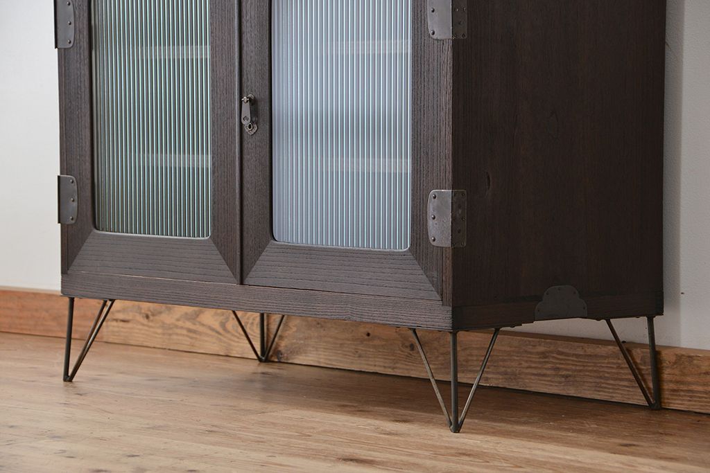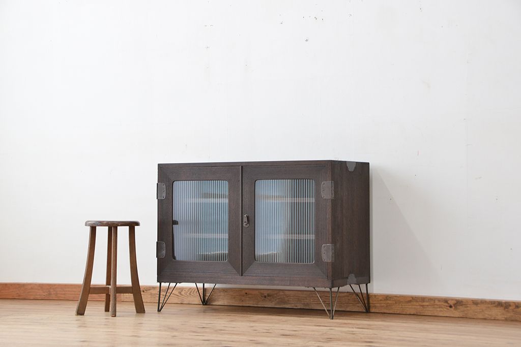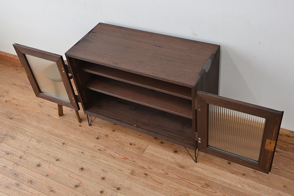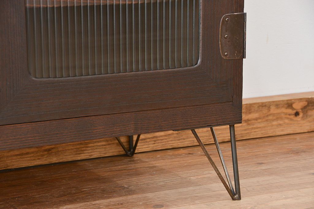 アンティーク家具 アンティーク 古い木の鉄脚付きモールガラス観音開き収納棚(ローボード)
