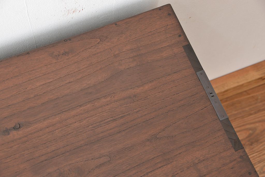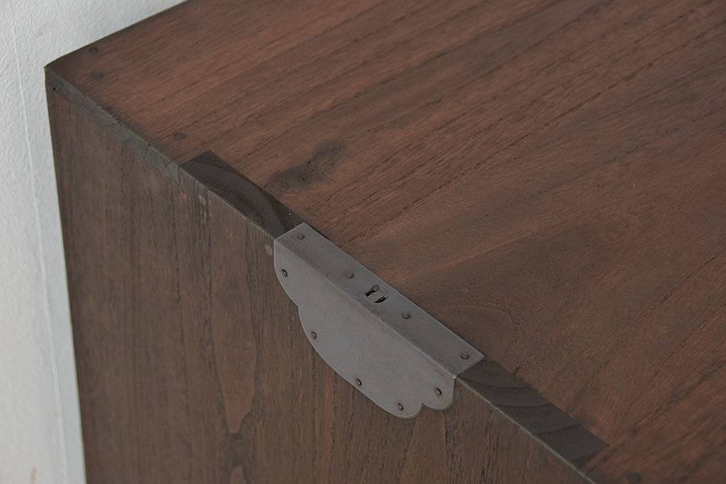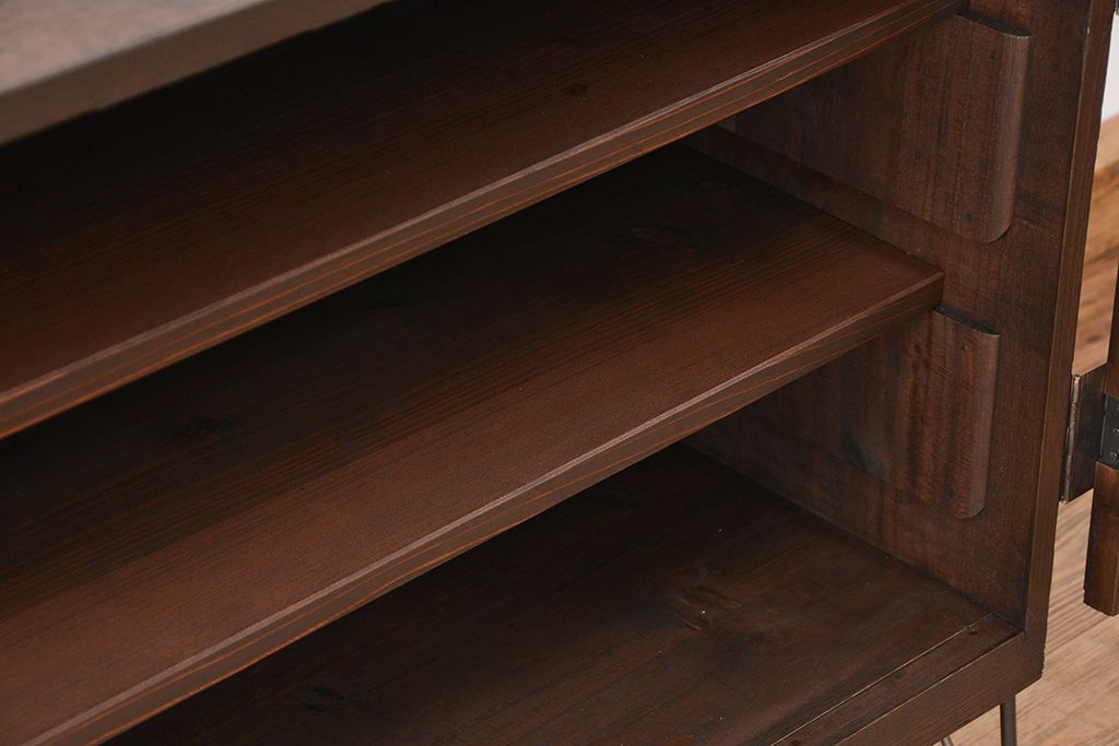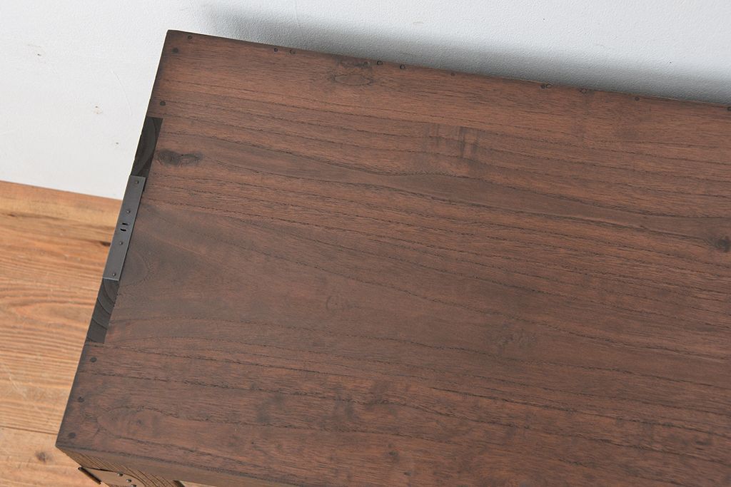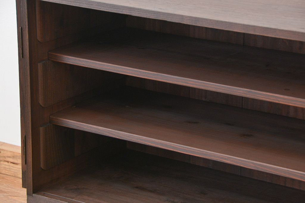 アンティーク 古い木の鉄脚付きモールガラス観音開き収納棚(ローボード)です。