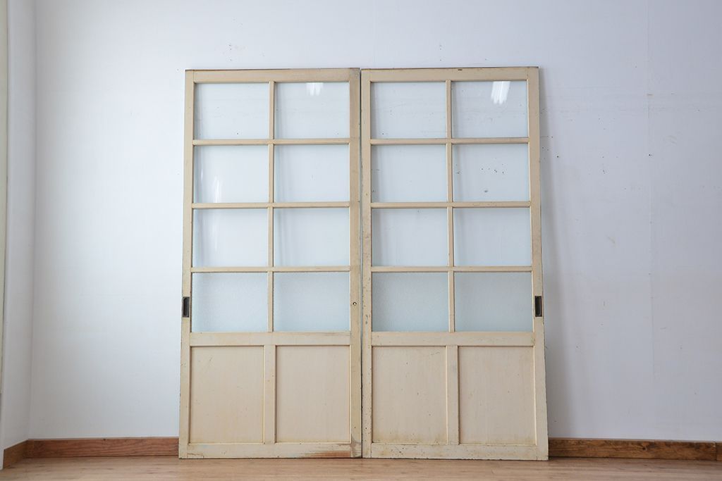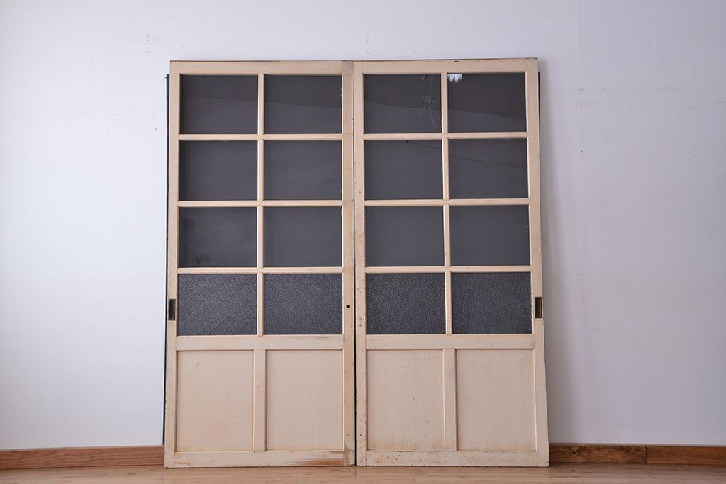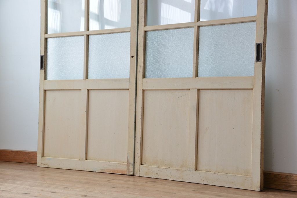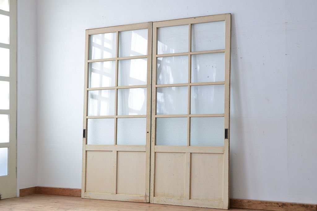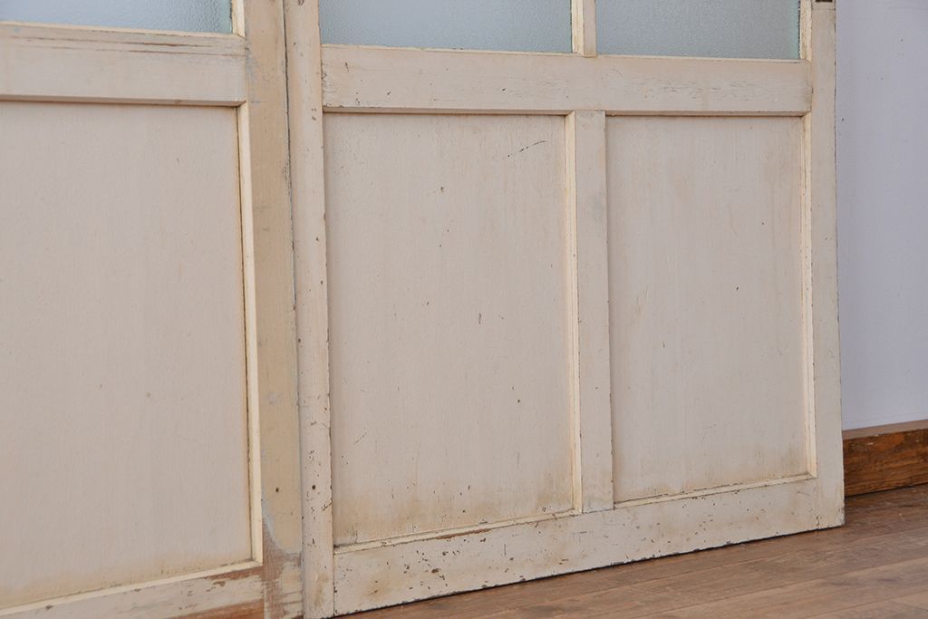 アンティーク ダイヤガラス入り!シャビーな背の高いガラス戸2枚セット(引き戸)
