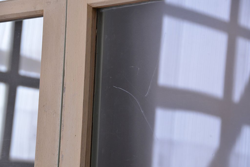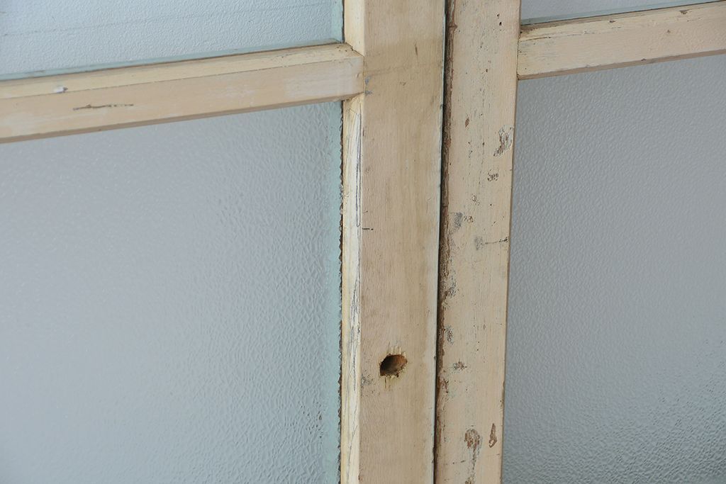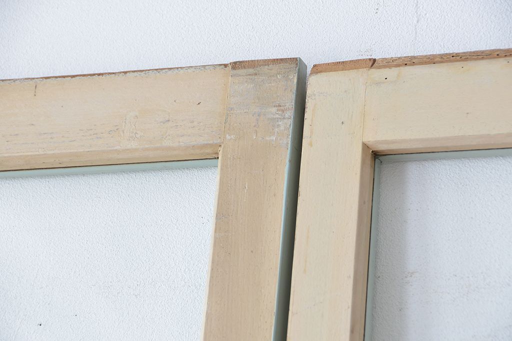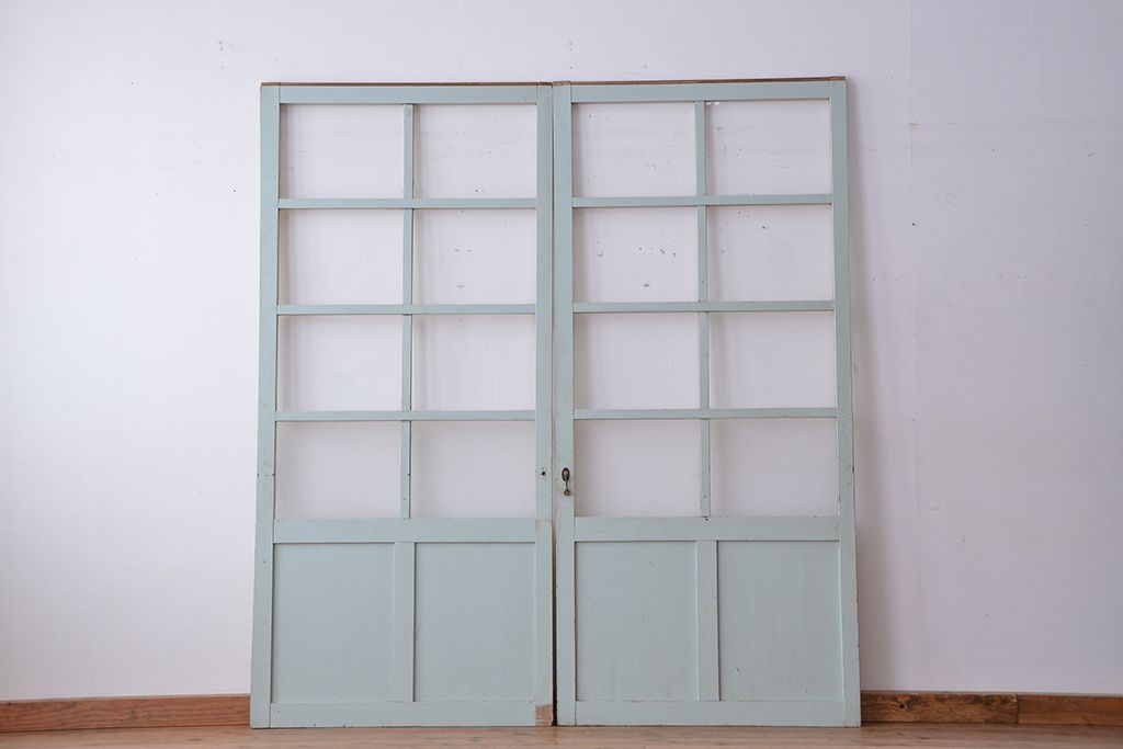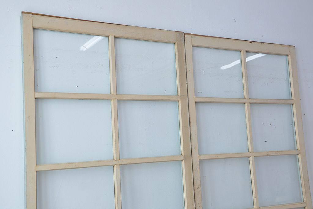 アンティーク ダイヤガラス入り!シャビーな背の高いガラス戸2枚セット(引き戸)