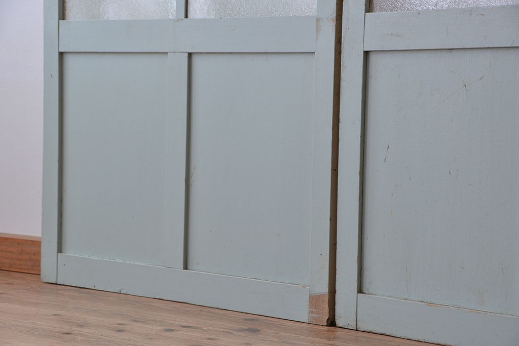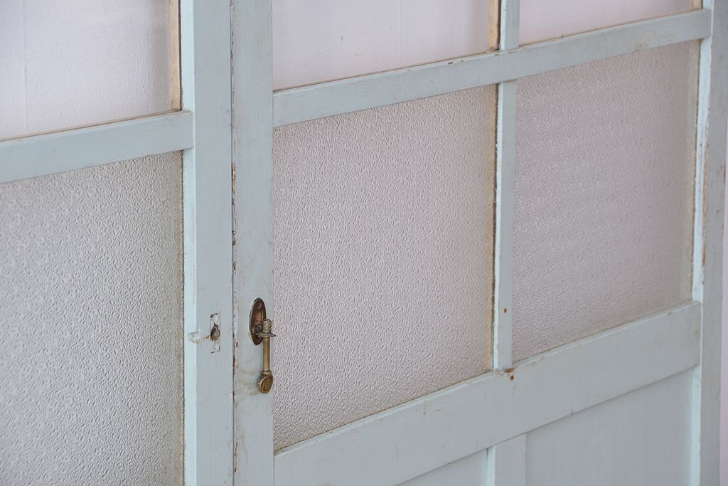 アンティーク ダイヤガラス入り!シャビーな背の高いガラス戸2枚セット(引き戸)です。