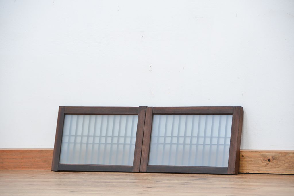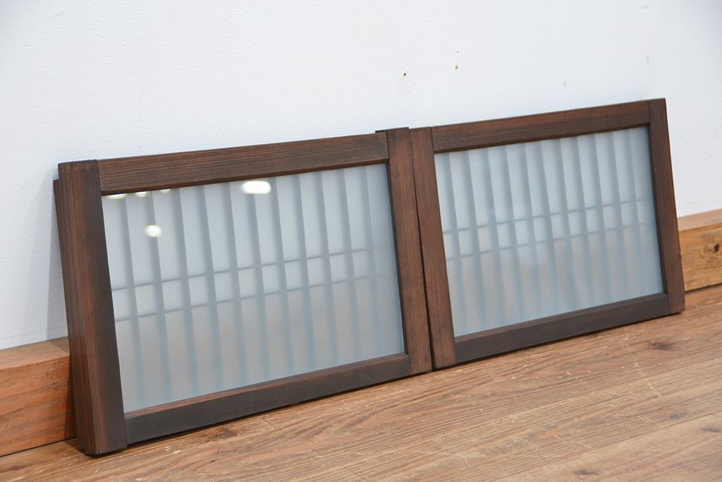 アンティーク 格子入り!小さなガラス戸2枚セット