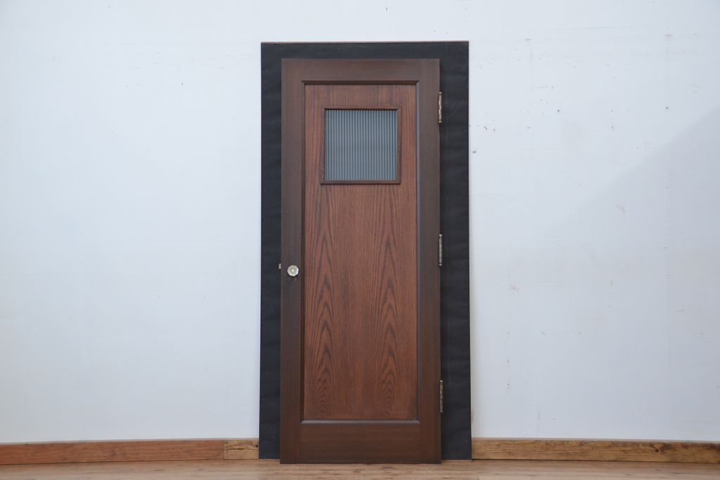 アンティーク 大正〜昭和初期 チーク材枠 モールガラスドア 1(扉)