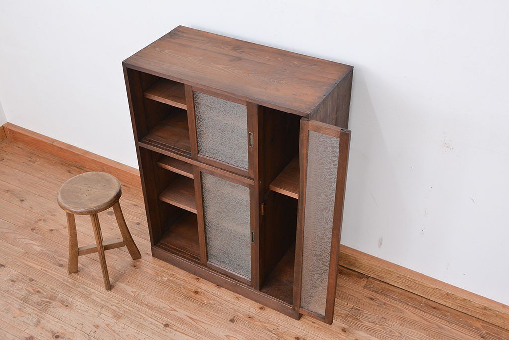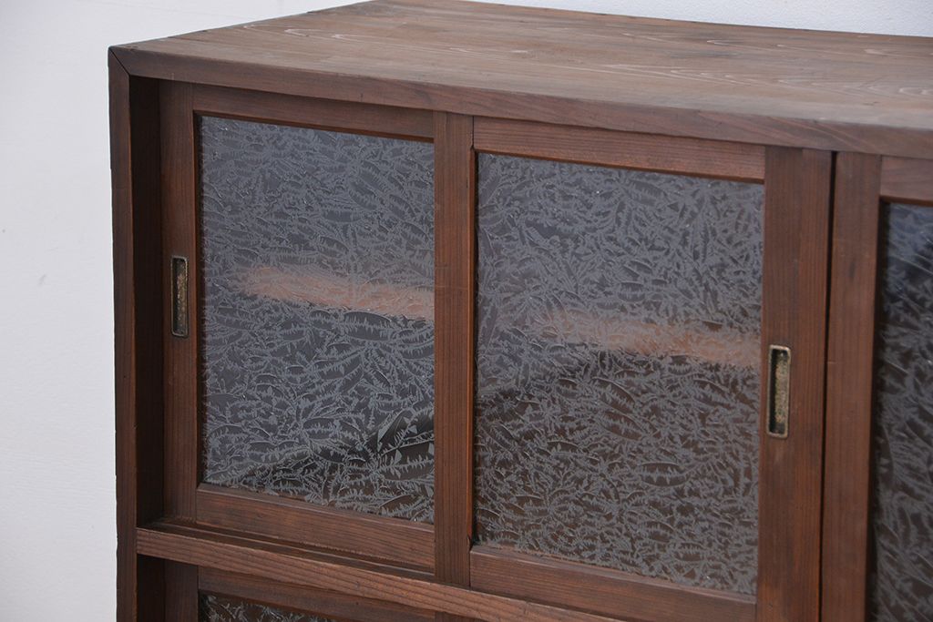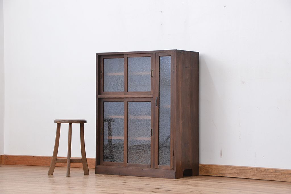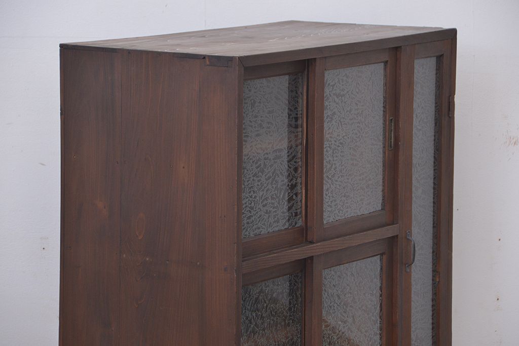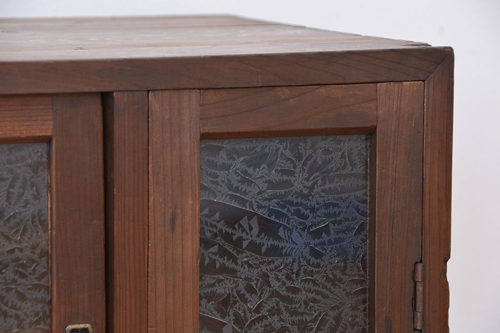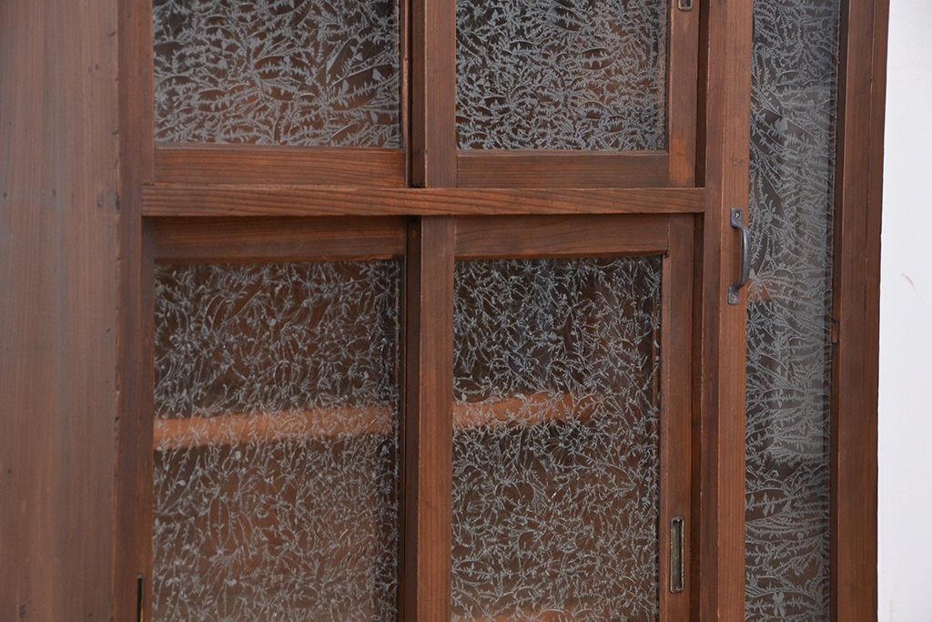 レトロ家具 アンティーク 結霜ガラス入りのレトロな収納棚(下駄箱)
