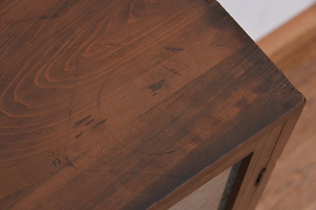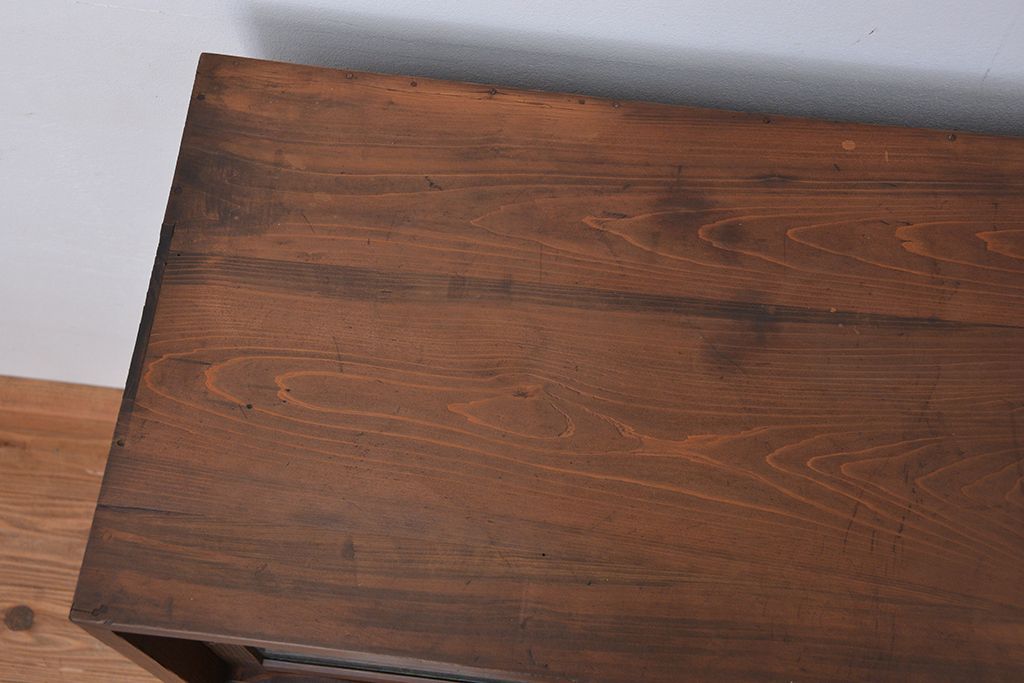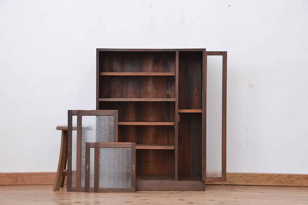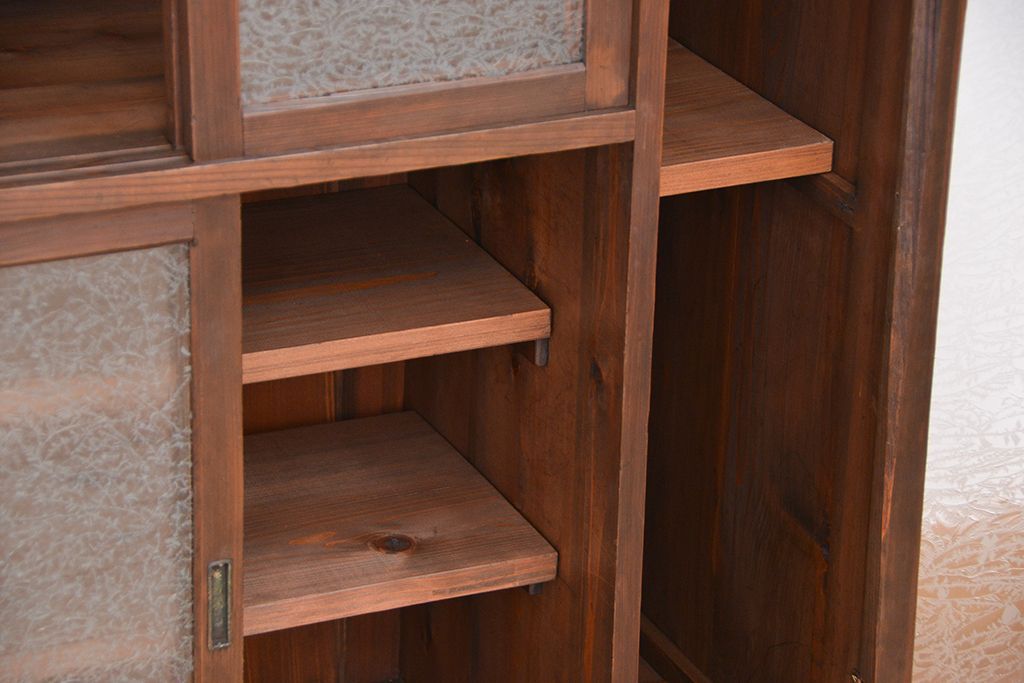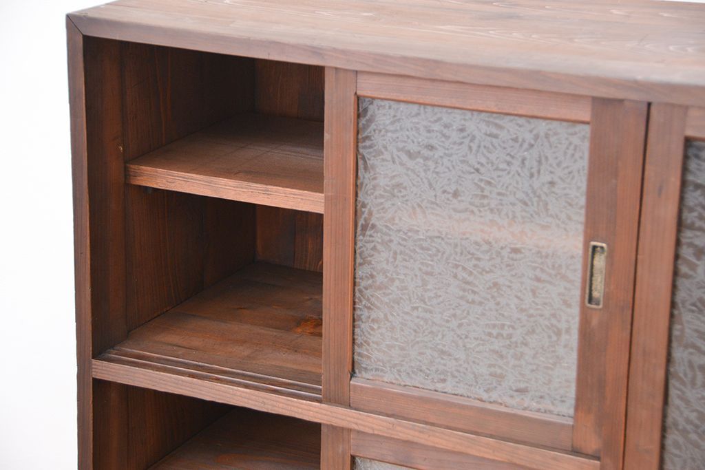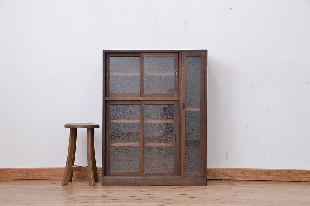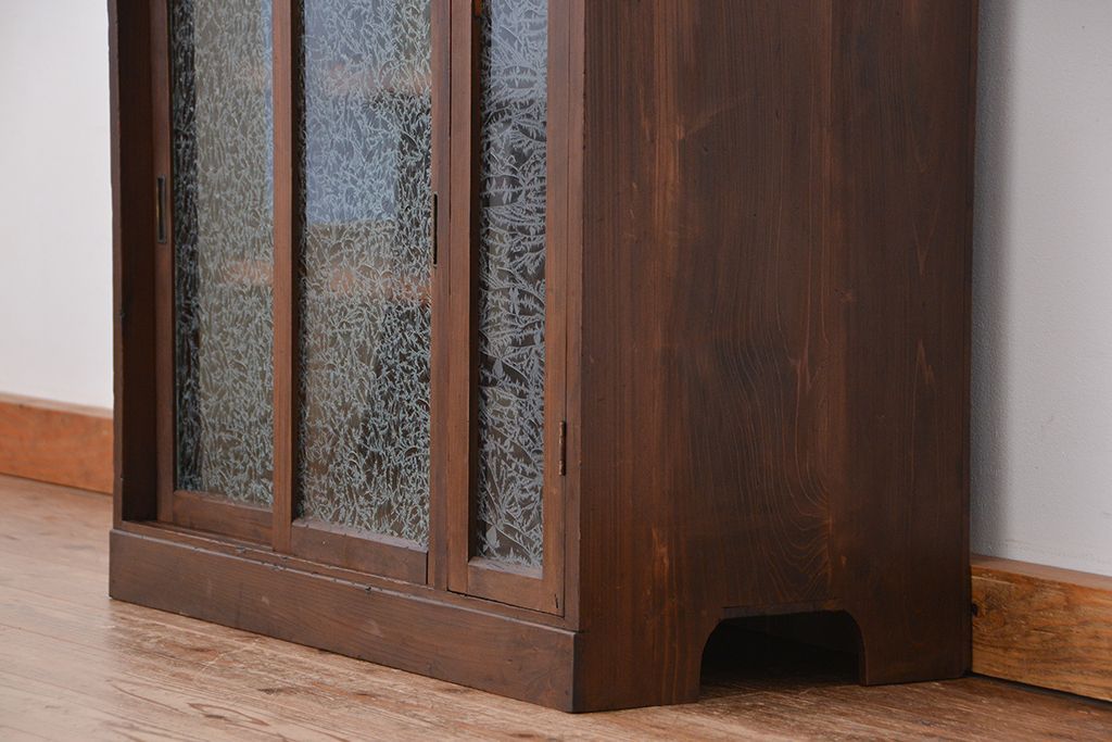 レトロ家具 アンティーク 結霜ガラス入りのレトロな収納棚(下駄箱)