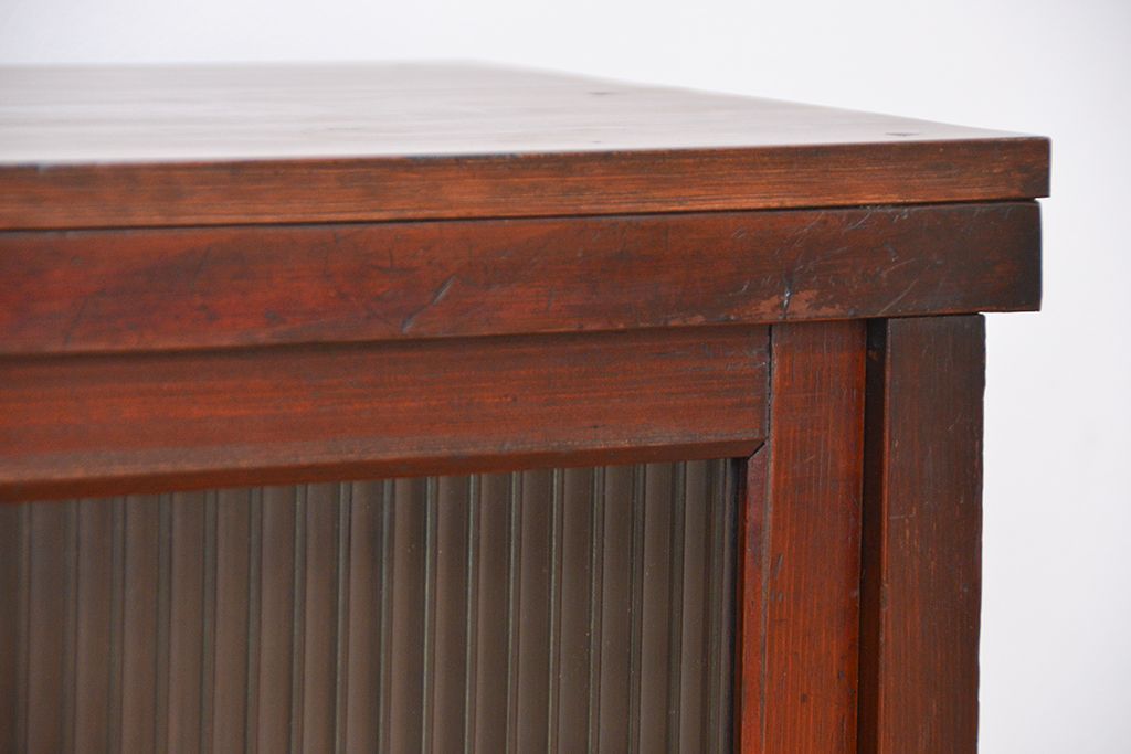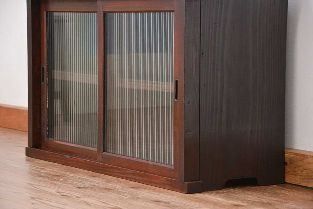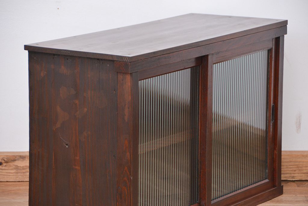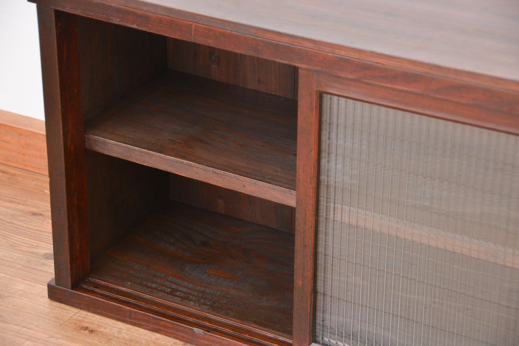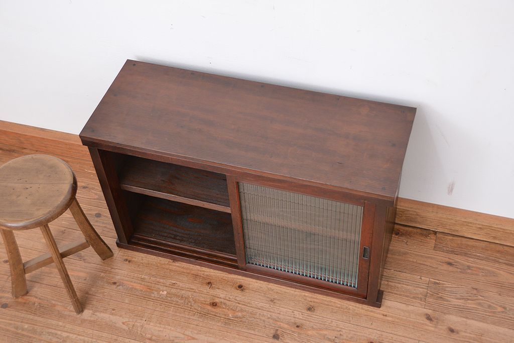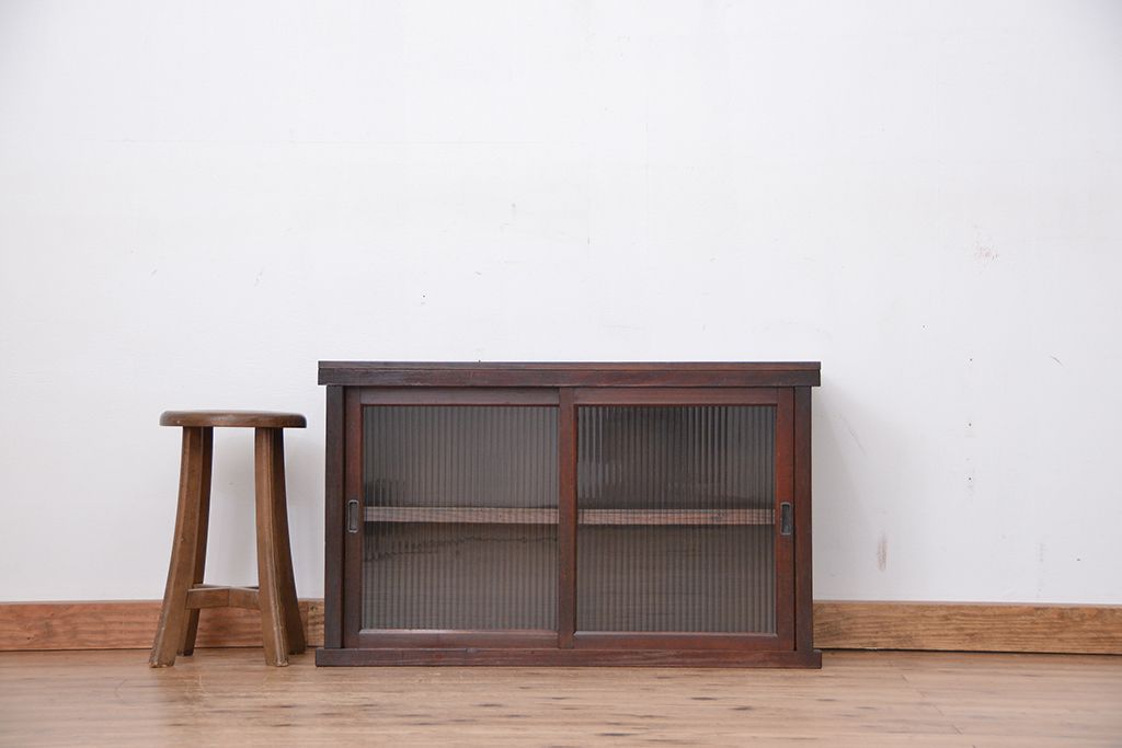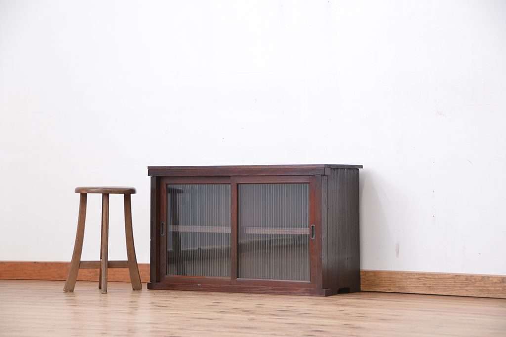 アンティーク 小振りなロータイプモールガラス収納棚(ローボード)です。