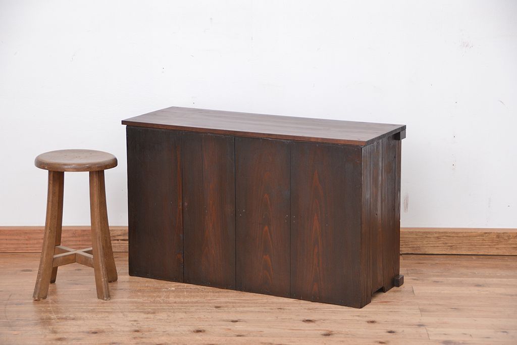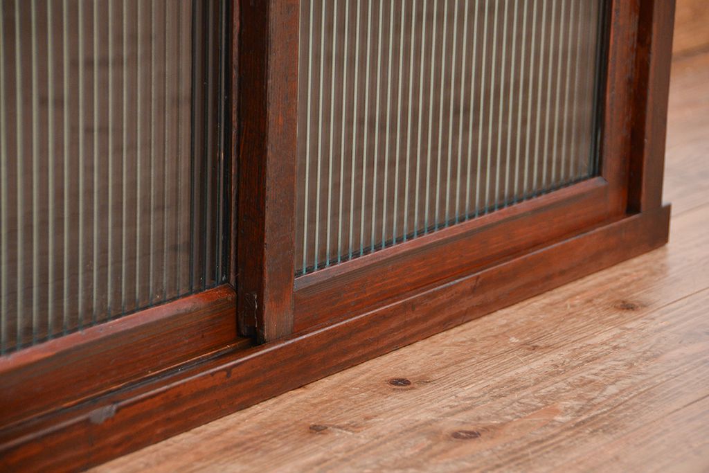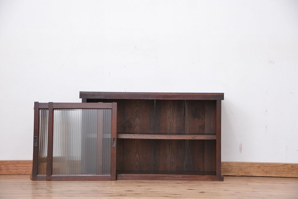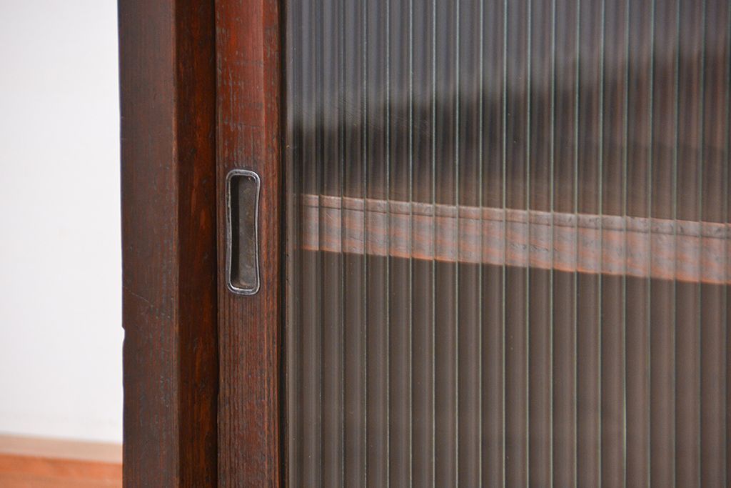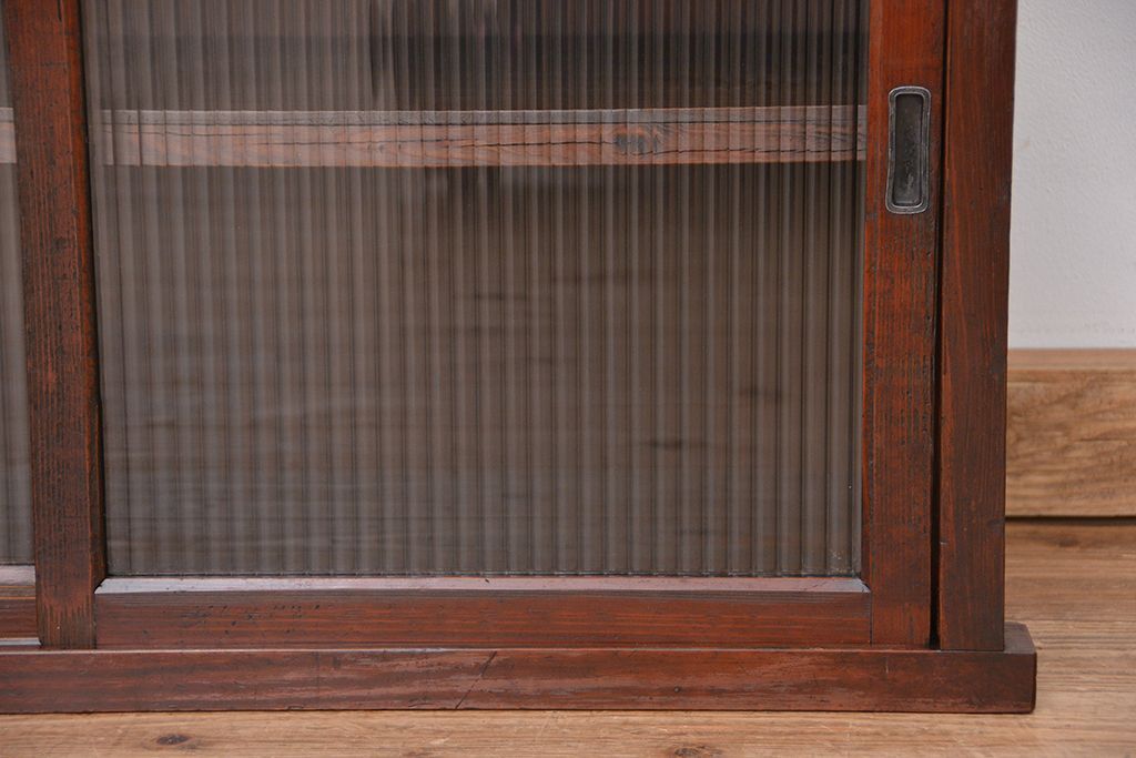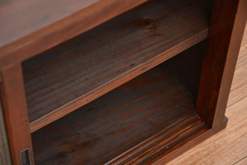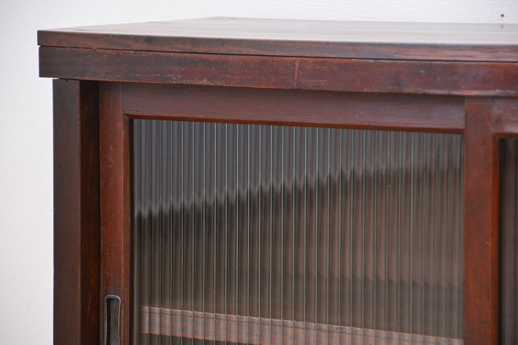 アンティーク 小振りなロータイプモールガラス収納棚(ローボード)です。