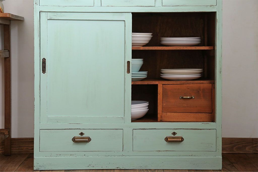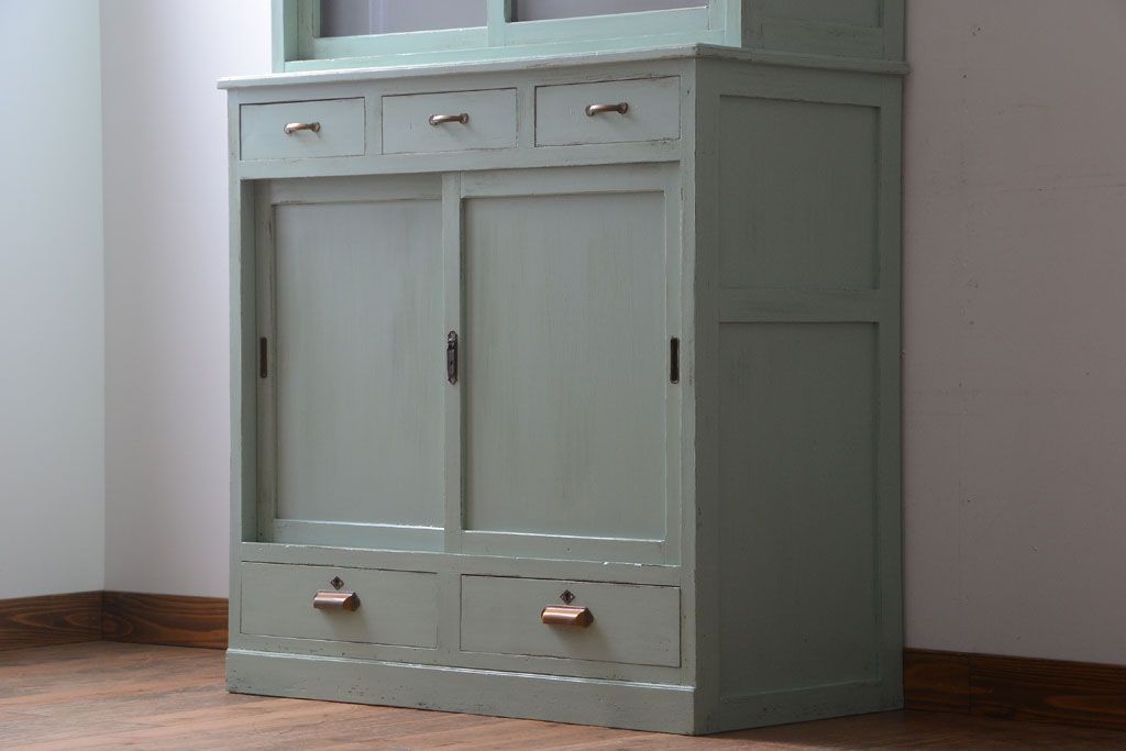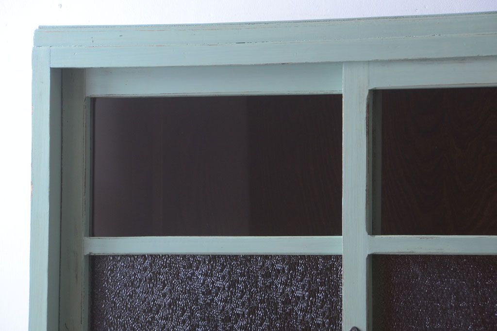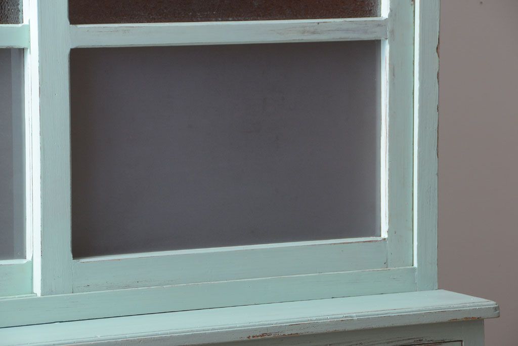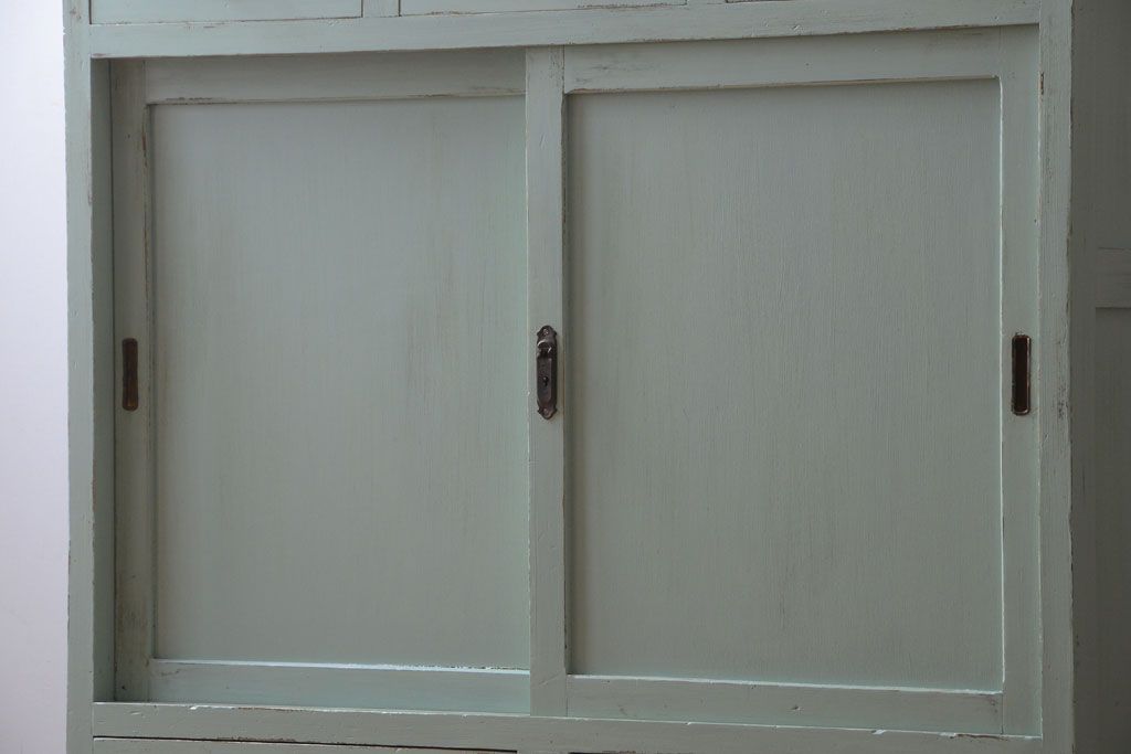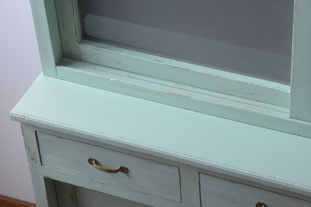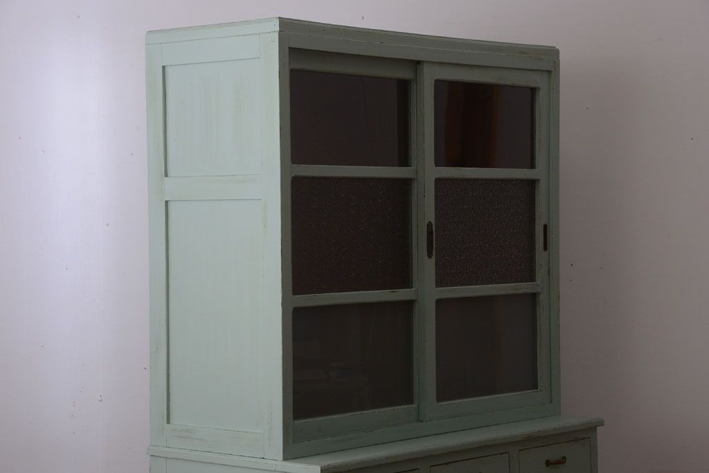 ラフジュ工房> キャビネット・戸棚> 食器棚・カップボード > レトロ家具 アンティークペイント かわいいミントグリーンのレトロな食器棚(カップボード)