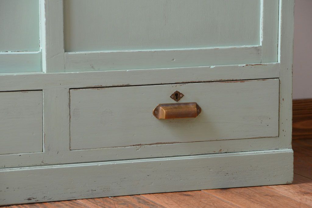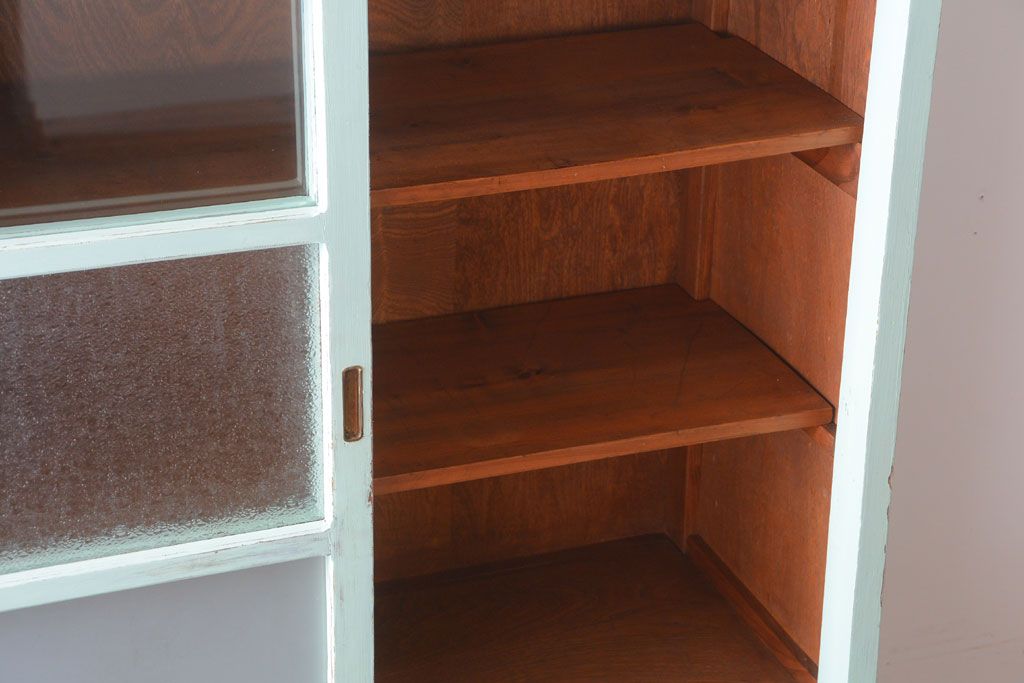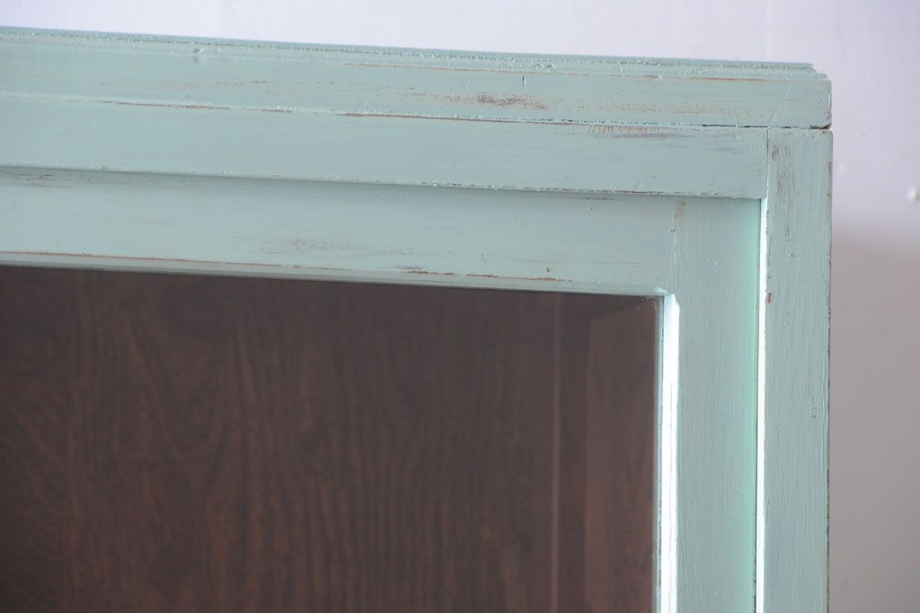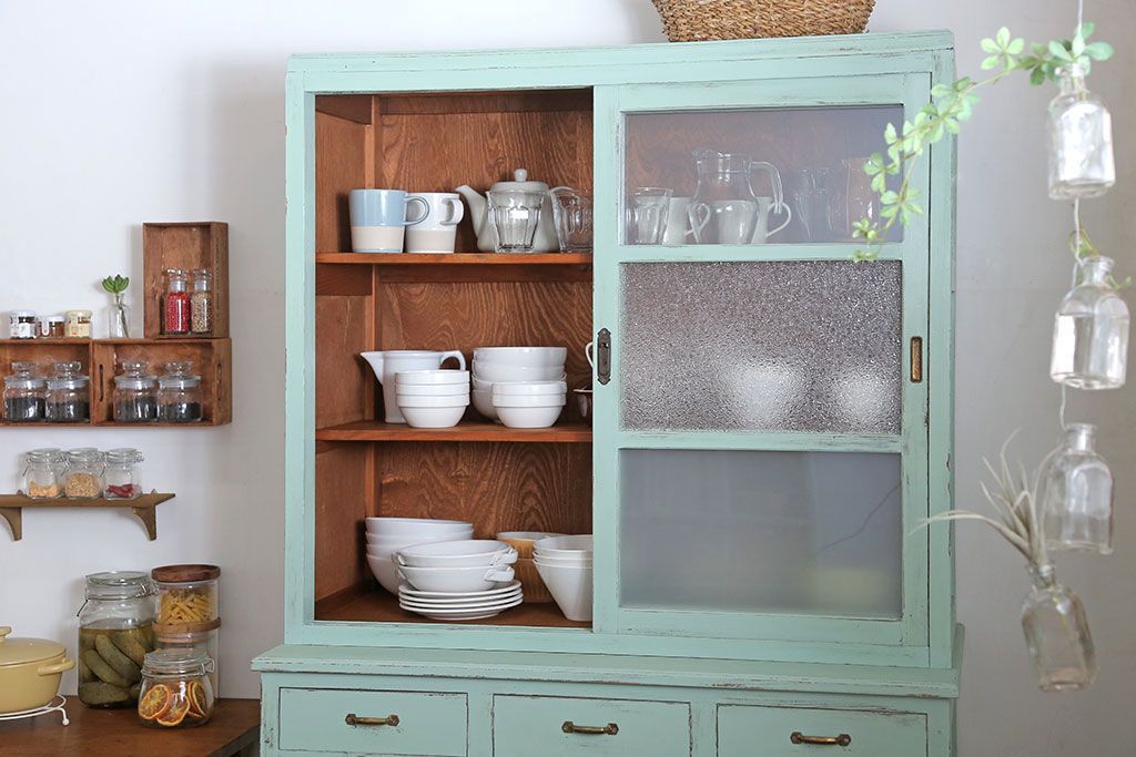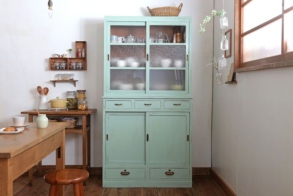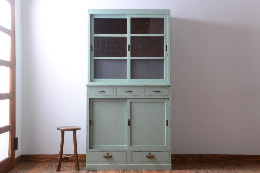 ラフジュ工房> キャビネット・戸棚> 食器棚・カップボード > レトロ家具 アンティークペイント かわいいミントグリーンのレトロな食器棚(カップボード)