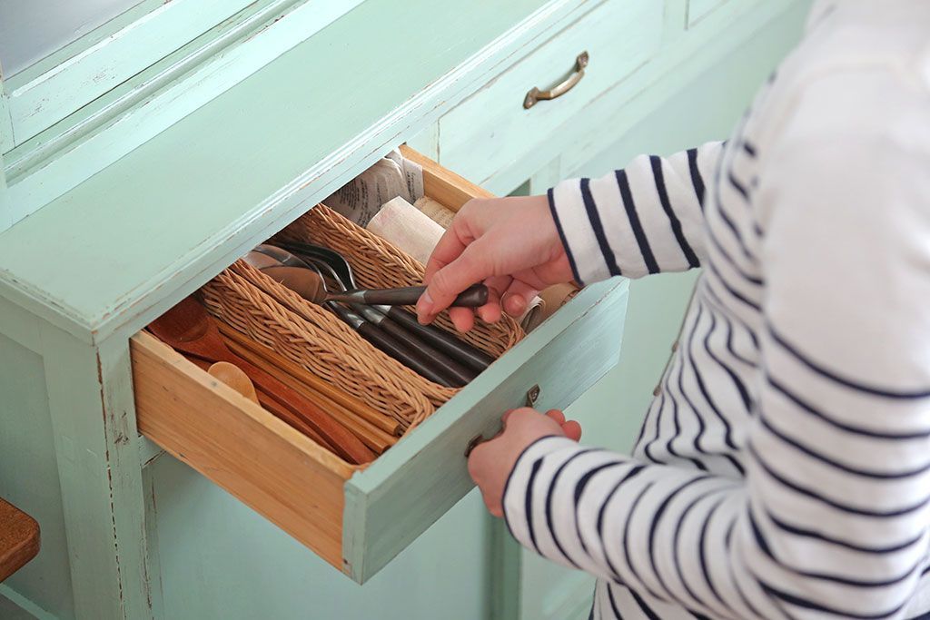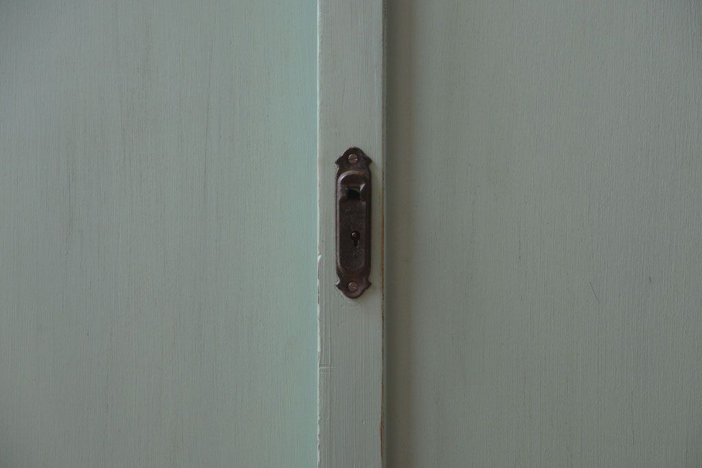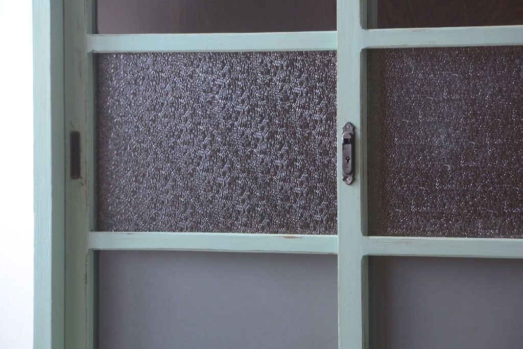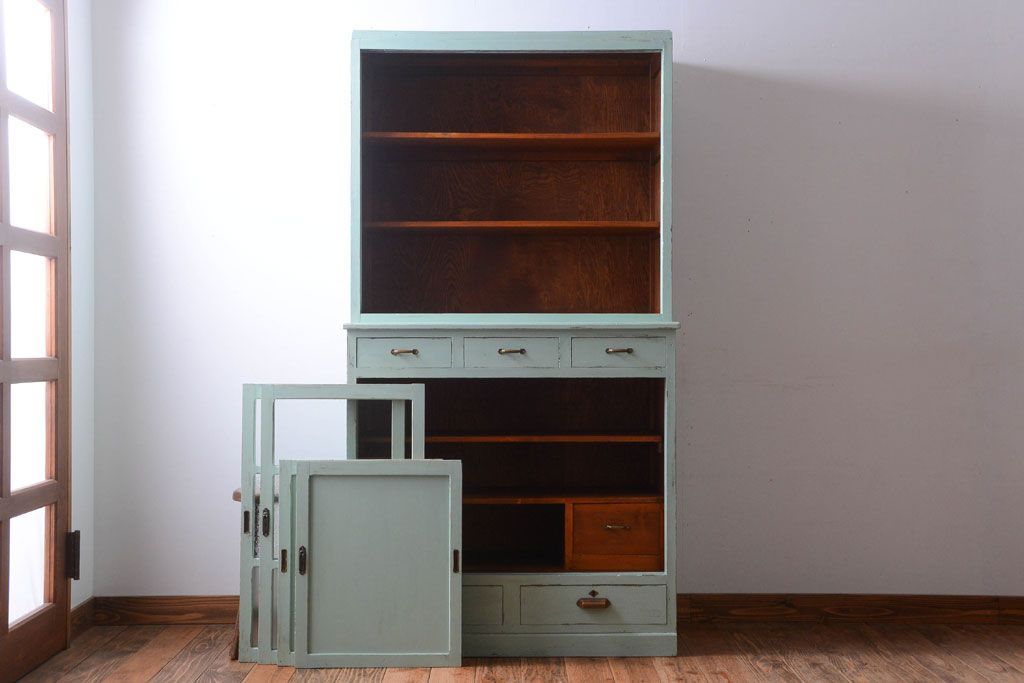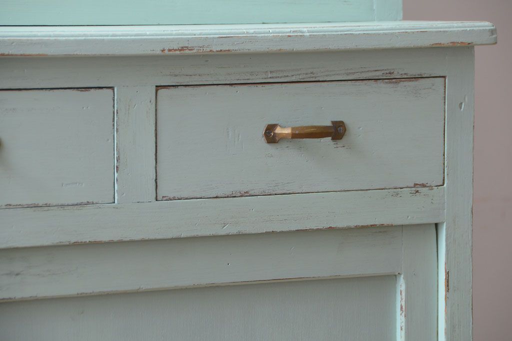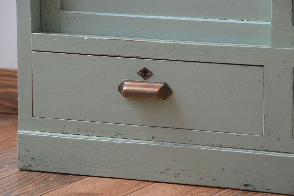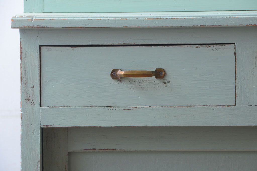 ラフジュ工房> キャビネット・戸棚> 食器棚・カップボード > レトロ家具 アンティークペイント かわいいミントグリーンのレトロな食器棚(カップボード)
