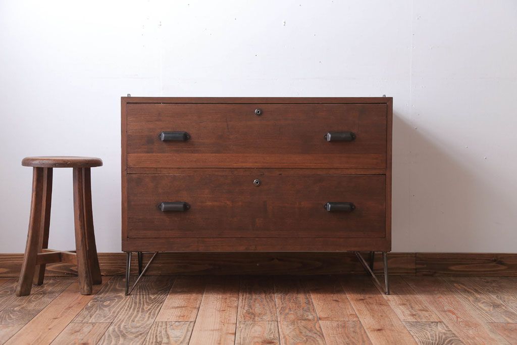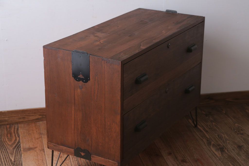 アンティーク家具 和製アンティーク 鉄脚付き!シンプルな桐箪笥ローボード(1、桐たんす)