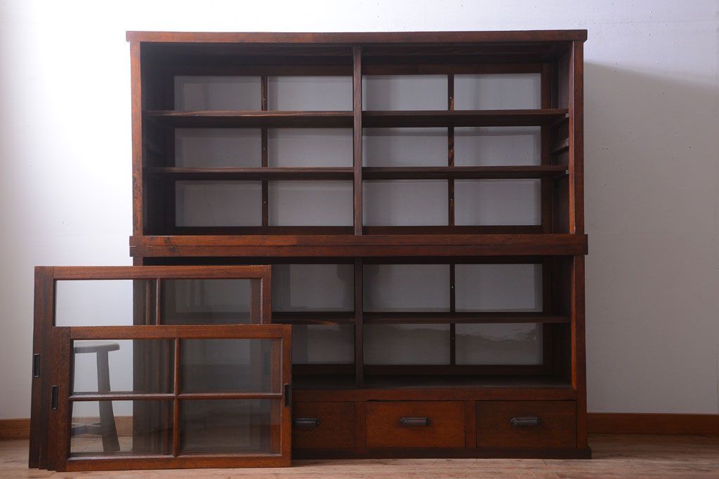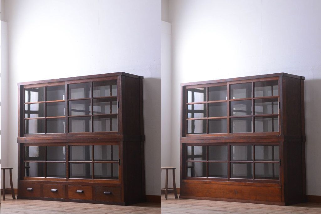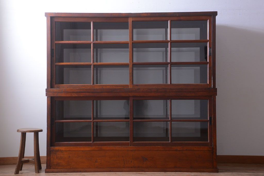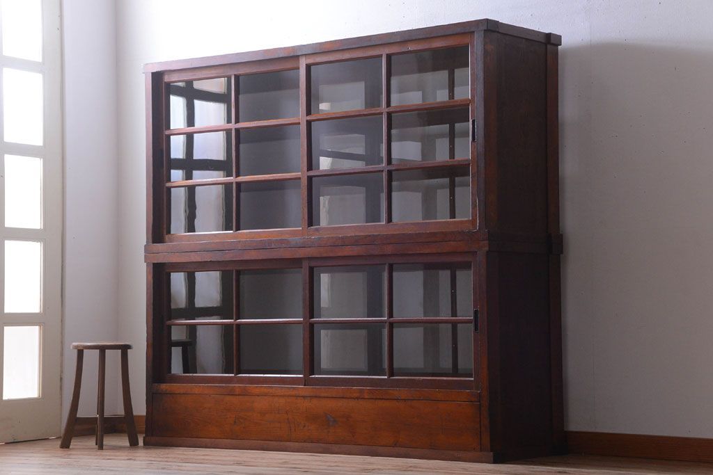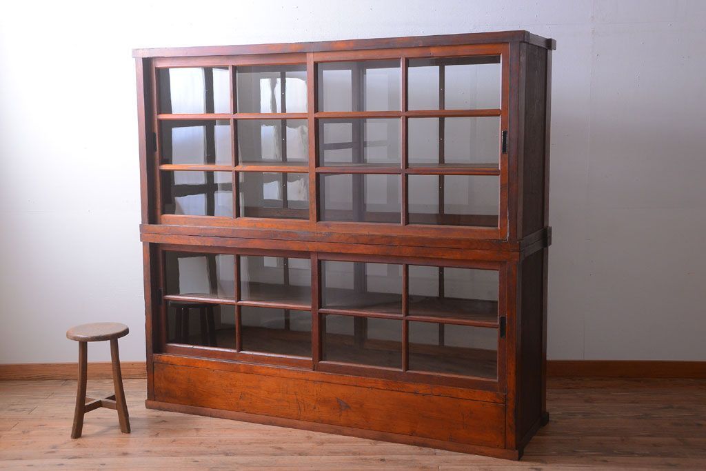 アンティーク家具 アンティーク 二段重ねの大きな両面戸棚