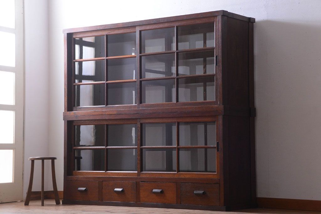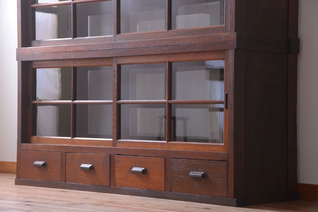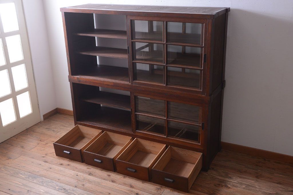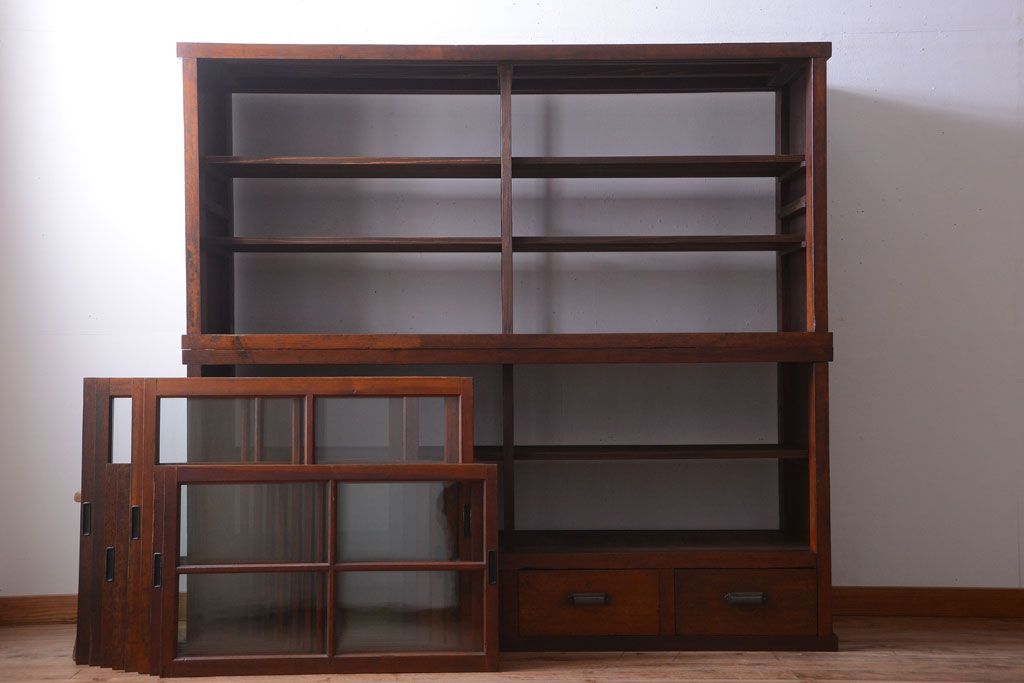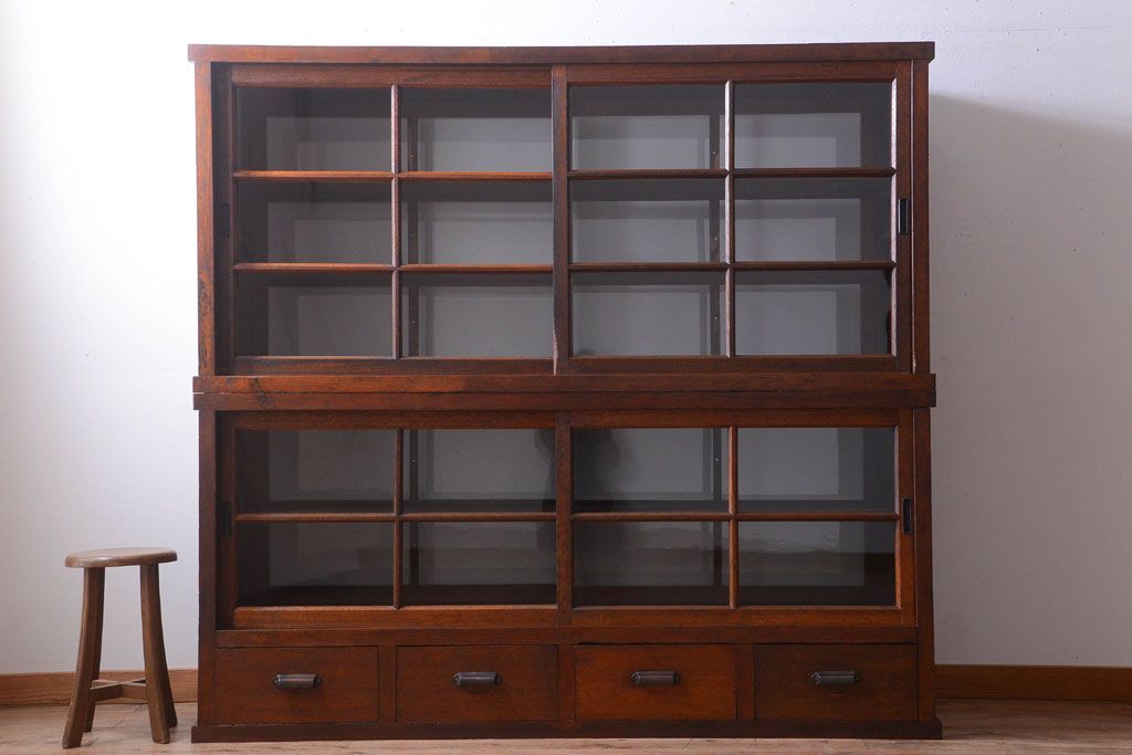 アンティーク家具 アンティーク 二段重ねの大きな両面戸棚