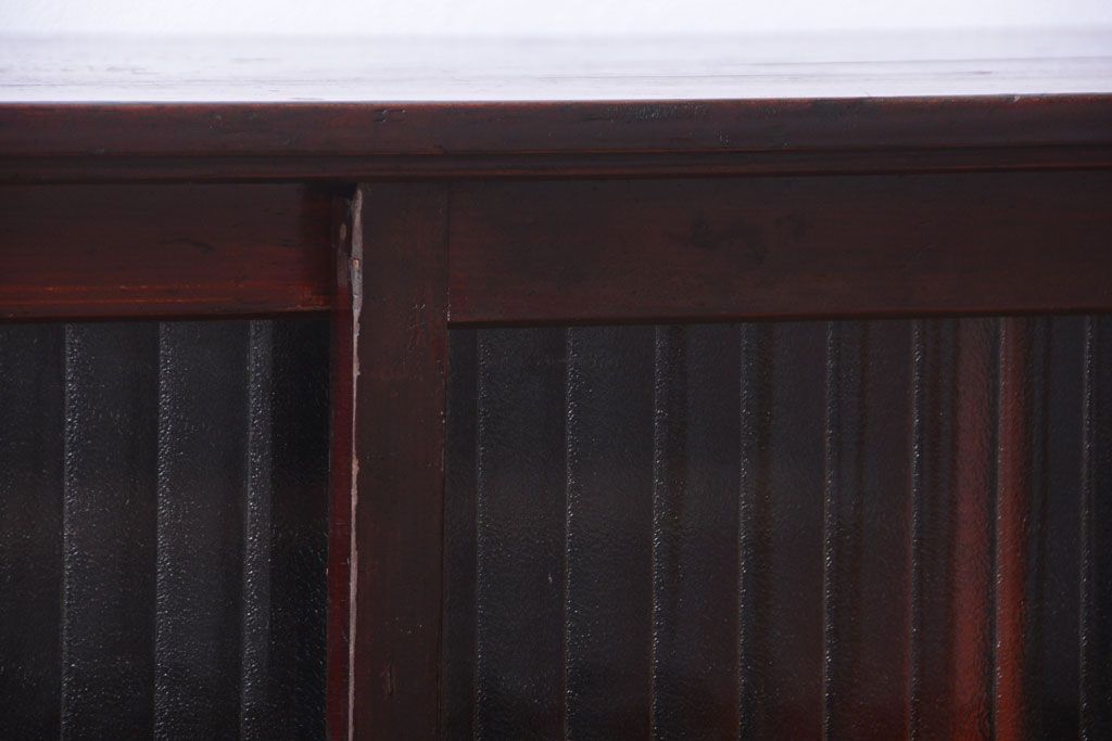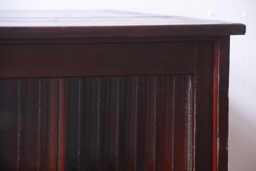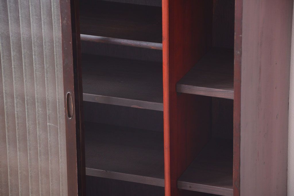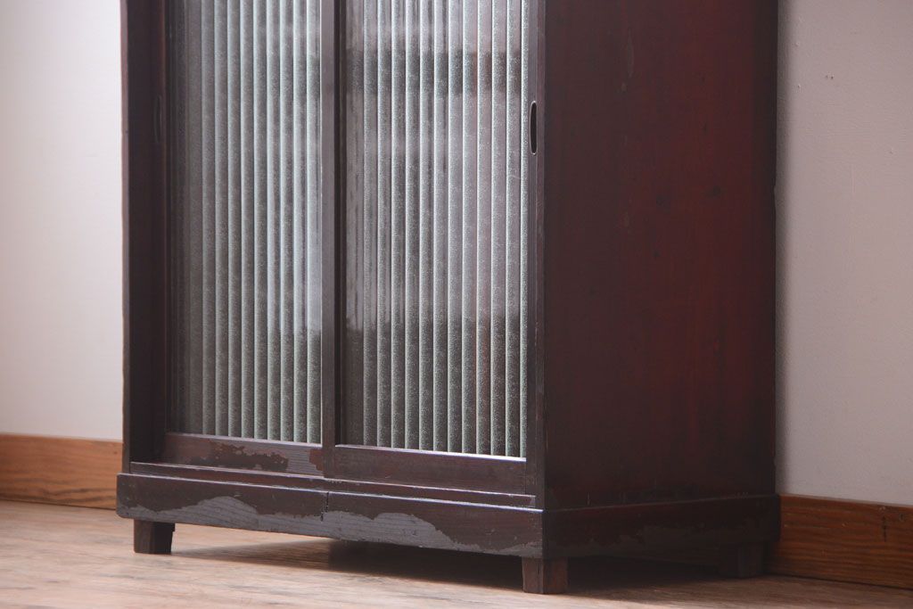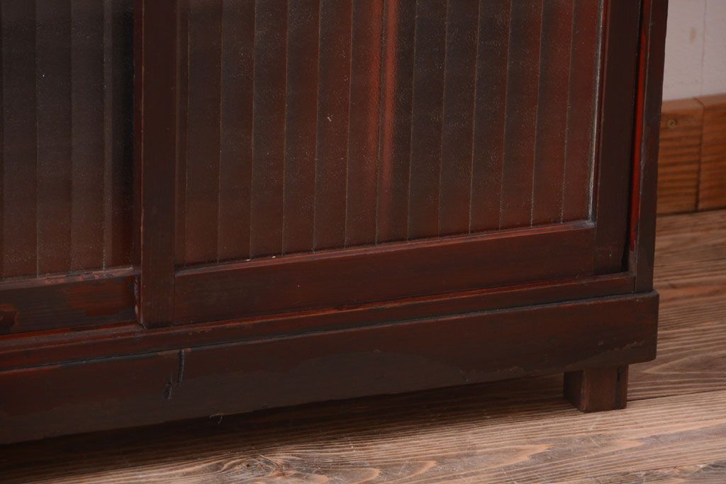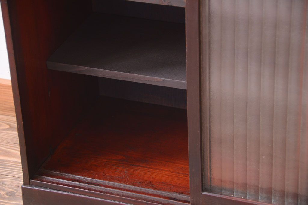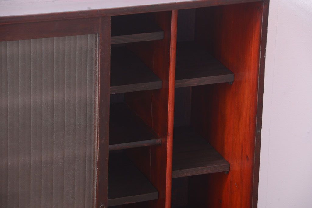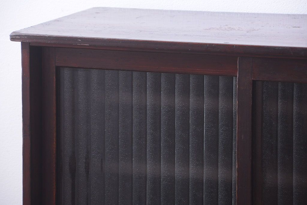 アンティーク家具 和製アンティーク 銀モールガラス入り!古い木製の引き戸収納棚(下駄箱)