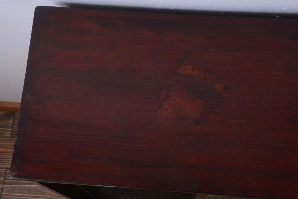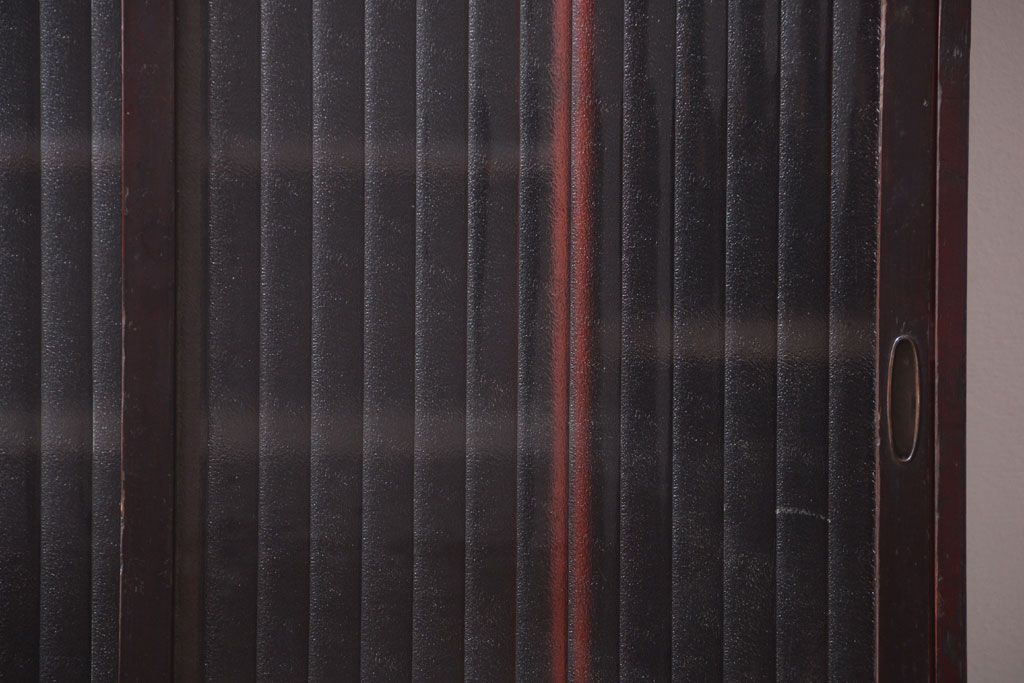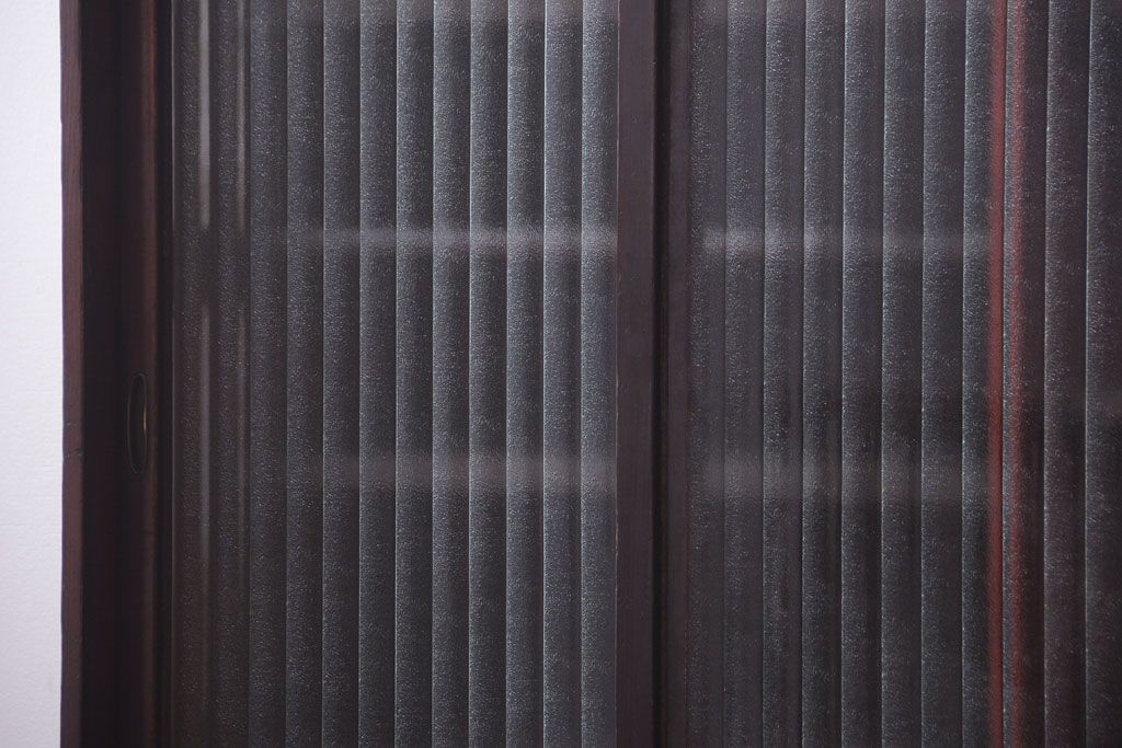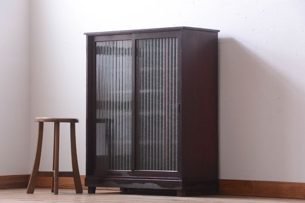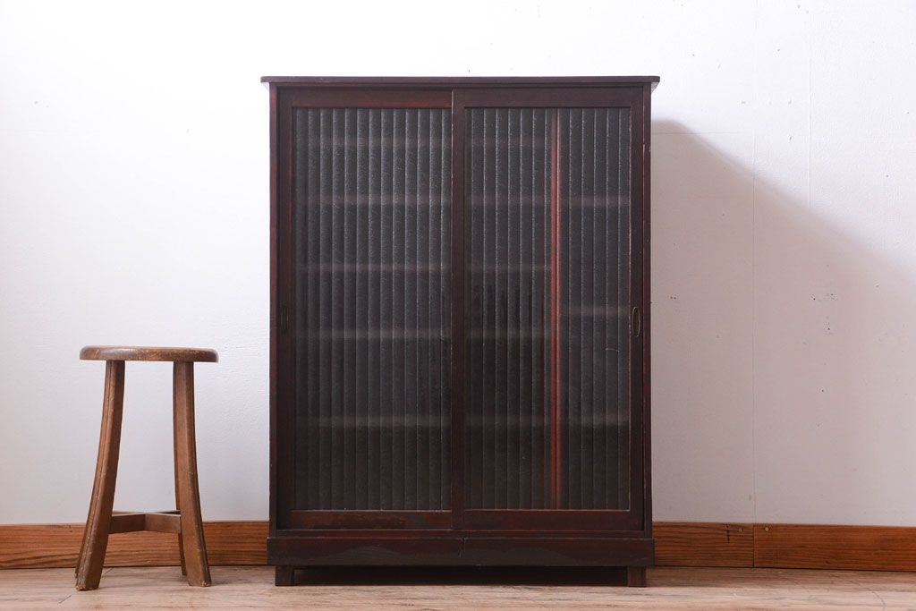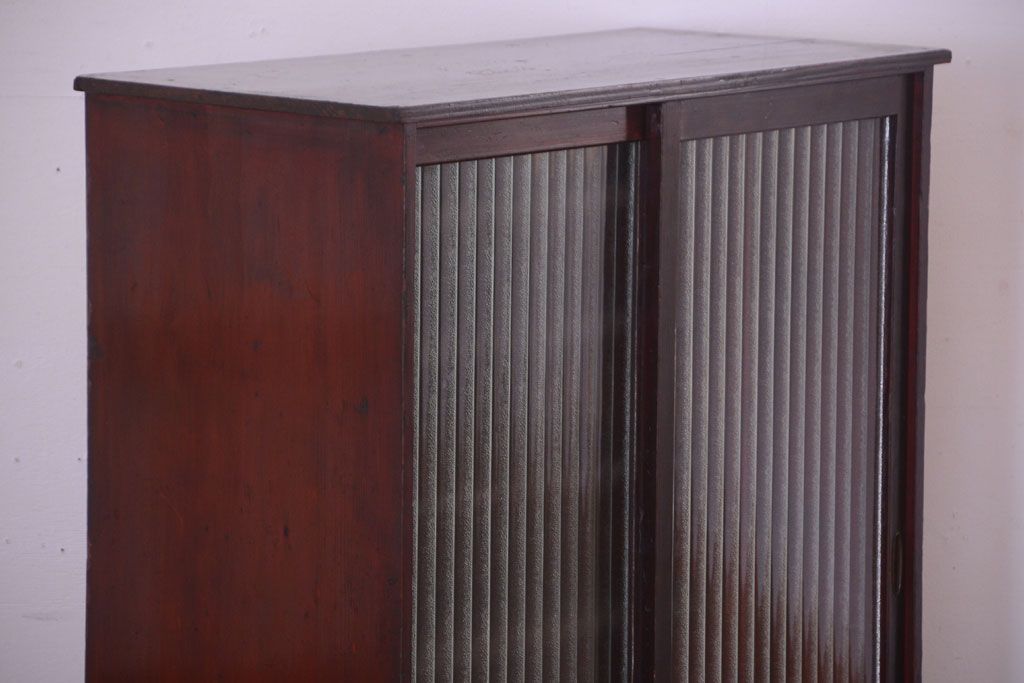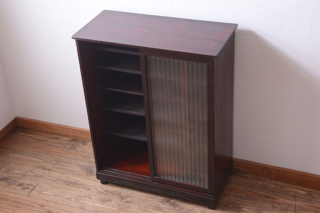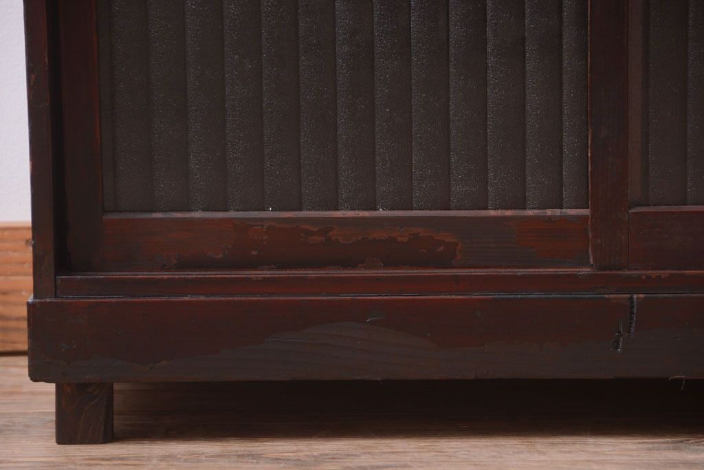 アンティーク家具 和製アンティーク 銀モールガラス入り!古い木製の引き戸収納棚(下駄箱)